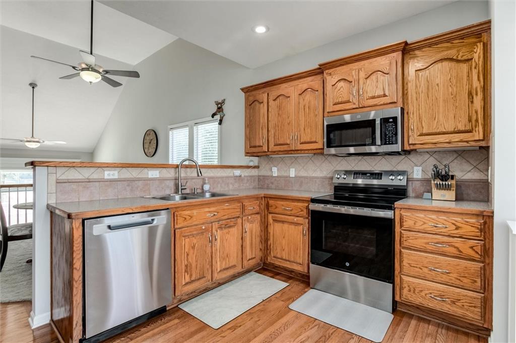 Welcome home to this beautifully maintained 4-bedroom, 3-bath residence in the heart of Quail Creek Estates, in Piper, Kansas. Built in 2003 and offering 2,061 square feet of comfortable living, this home checks all the boxes: Open & Inviting Layout — Vaulted ceilings, updated lighting, and a seamless flow from living area to kitchen make this home perfect for both everyday living and entertaining; Well-Appointed Kitchen — Ample oak cabinetry, full SS appliance package, convenient pantry, and a layout that’s functional and family-friendly; Luxurious Primary Suite — A private oasis featuring lighted tray ceiling, an en suite bath, double vanity, corner tub, and a roomy closet; Three Additional Bedrooms — Ideal for children, guests, or a home office; Spacious Fenced Yard — With a deck and covered patio, the outdoor area is perfect for pets, play, backyard BBQs or quiet evenings under the stars; Attached 2-Car Garage & Convenient Storage — Lots of built-in space to stay organized; Premium Location — Situated in the desirable Piper School District, with easy access to shopping, major roads, and community amenities; Lot & Utility Highlights — 0.35-acre corner lot, natural gas heat, electric cooling, and low maintenance exterior. With its thoughtful layout, prime location, and excellent condition, this home is ready to welcome its next owners.