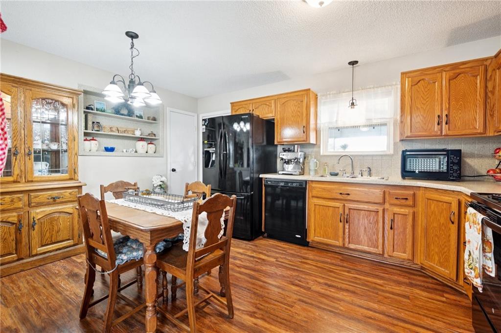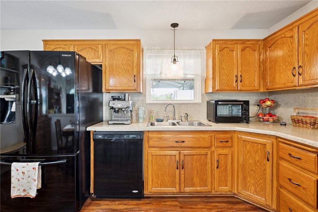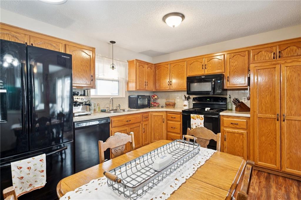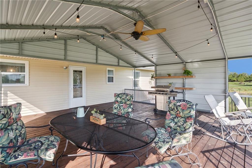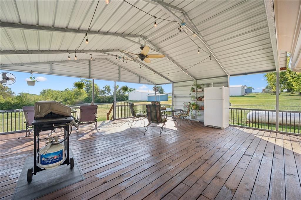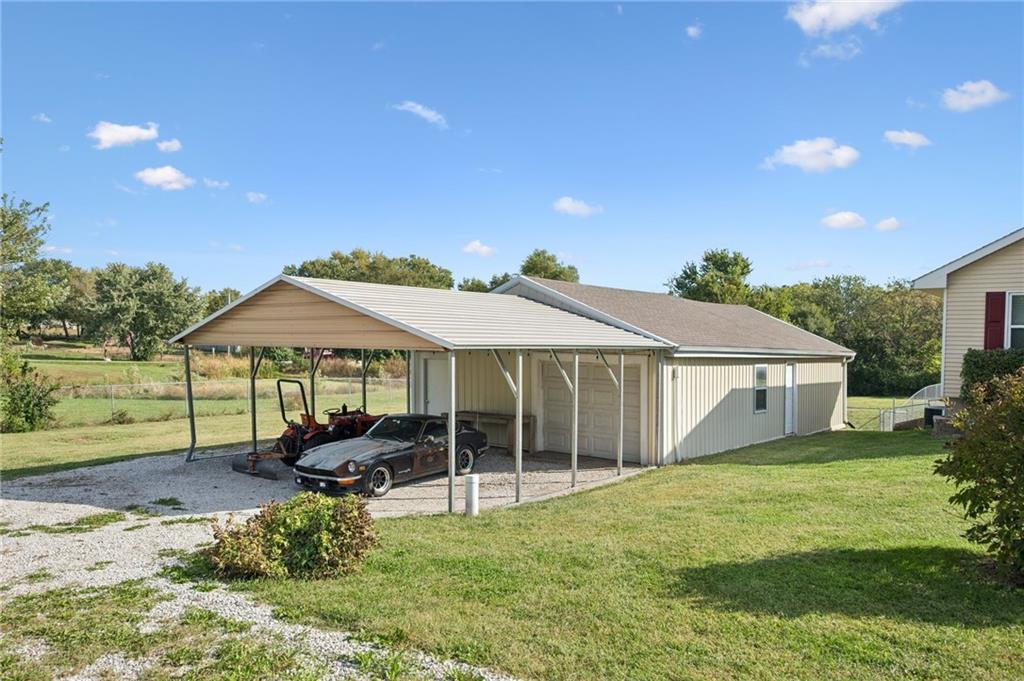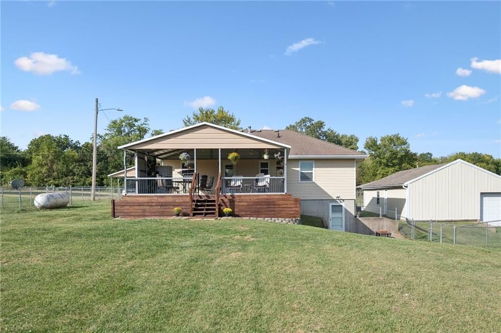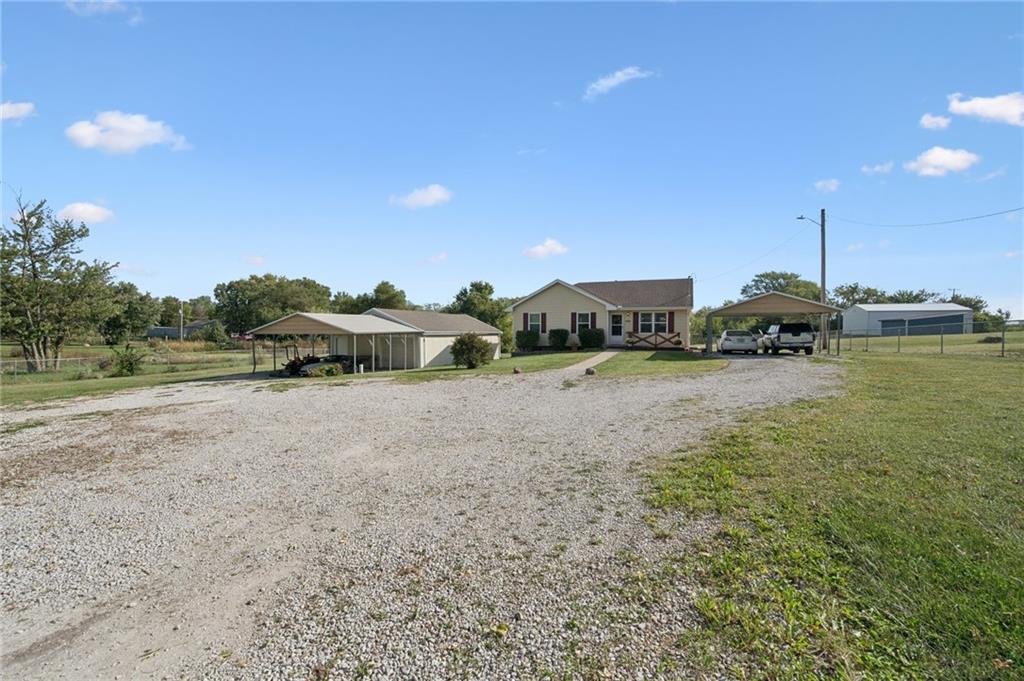 Calling all car and mechanic enthusiasts to this TRUE RANCH on right at 1 acre that's fully fenced and located on all paved roads! There's 1 door on the front but the front portion of the garage easily holds 3 cars, 1 side is tandem, and there's a smaller garage door on the back to allow for a 4th smaller car or your tractor and equipment! Concrete floor and electric with its own panel. It's also perfect if you're into woodworking or other hobbies needing a good amount of space! Double wide carport in front of the detached garage and another carport sides to the home. Updated thermal windows as well as maintenance free metal siding so no painting! Inside are 3 nice size bedrooms all on the main level. The partially finished walk out lower level can be a rec room, office or another bedroom. Large unfinished area awaiting your personal touches to make it your own. Spacious eat-in kitchen is open to the living room and has plenty of cabinets, including a pantry and corner cabinet with lazy susan. Kitchen opens onto HUGE covered deck overlooking large yard that's perfect for entertaining all your family and friends, a pool, for sports and any trampoline or play set any child, or adult for that matter, can desire. The way the neighbor's acreage is laid out nothing behind but more grass and privacy. HVAC in 2016, HWH in 2021 and insulation added to attic in 2017. All appliances including fridge, washer and dryer staying with home. Spectrum fiber provides for good internet service! Close to town for all the conveniences and services but still that nice country feel of wide open spaces!
