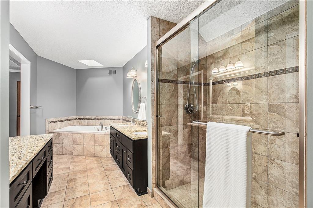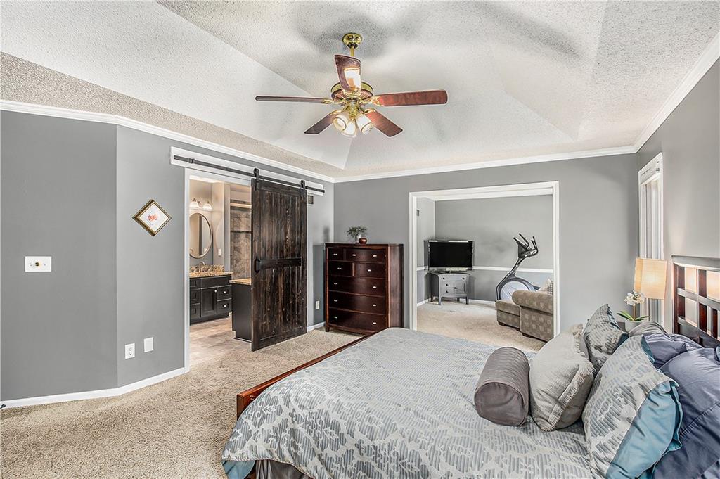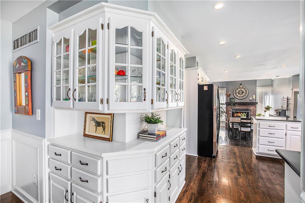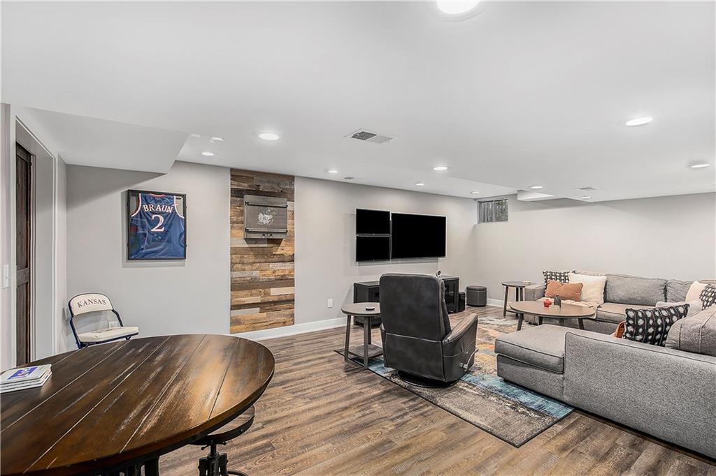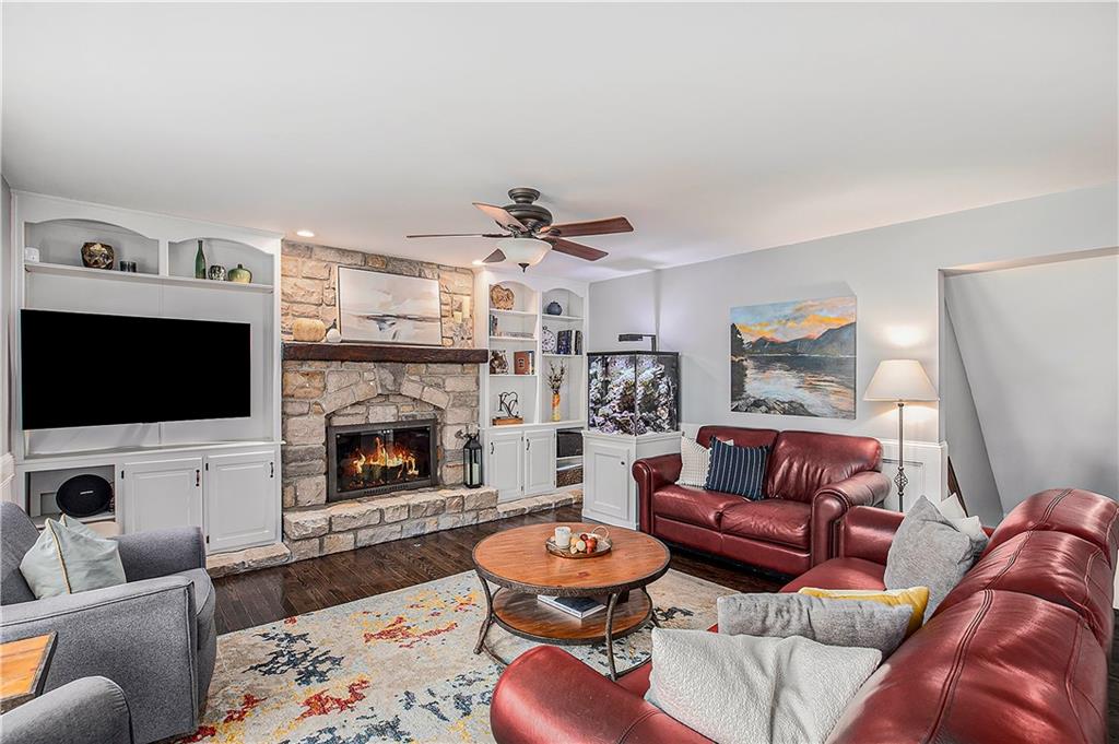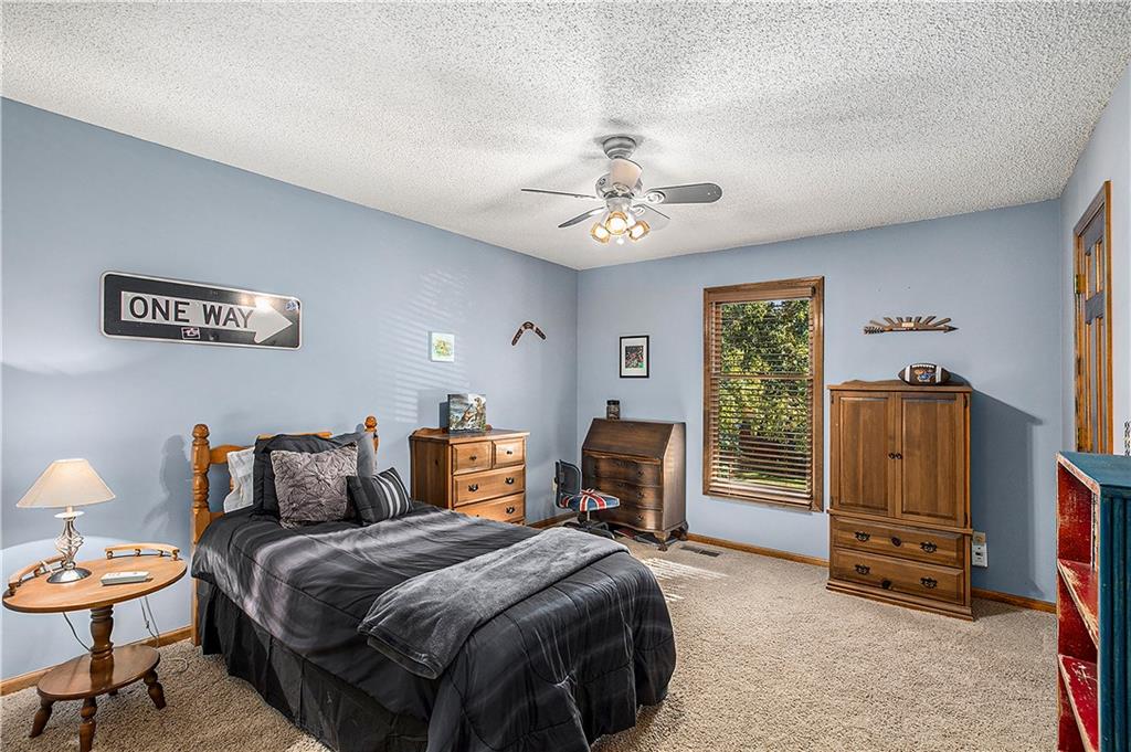Celebrate the Holidays in Oak Tree Meadows Move in before the end of the year and enjoy the seasons ahead in this beautifully-updated home on a stunning park-like lot. This 4-bedroom, 2 1/2 -bath home in the desirable Oak Tree Meadows community of Overland Park offers the perfect blend of comfort, charm, and thoughtful design. Pride of ownership shines throughout with consistent updates including an updated roof, fresh exterior paint, and an updated kitchen that opens to the hearth room, dining room, and living room—all overlooking a spectacular backyard. The kitchen features painted cabinetry, granite counters, stainless steel appliances, and an eat-in hearth area accented by a brick fireplace and a clever barn-door drop zone for everyday organization. The living room boasts a stone fireplace framed by built-ins and rich hardwood floors that bring warmth and character to the main level. Step outside to your own private oasis—a lush, level .39-acre treed lot with a stamped concrete patio, tranquil water feature, and ample space for entertaining or quiet evenings under the trees. Upstairs, the spacious primary suite includes a sitting area, updated ensuite bath with granite double vanity, walk-in shower, jacuzzi tub, and generous walk-in closet. Secondary bedrooms are equally spacious and share a hall bath with painted vanity and skylight. The finished lower level is designed for fun and function—featuring a family room, wet bar, exercise space, and a stylish barn door accent. Nestled in a quiet, established neighborhood with access to Stoll Park, a private neighborhood lake, and just minutes from shopping, dining, and major highways (I-35, 435, and 69)—this home perfectly balances comfort, convenience, and community.