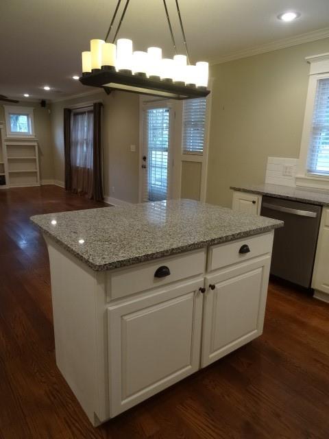 1575 sq. ft. remodeled to studs in 2013. 3 BR, 2 BA, wood floors in Great Room/Dining Area/Kitchen. Carpet in Bedrooms, Ceramic tile in laundry area and both baths. Kitchen was designed with the cook in mind with lots of cabinets and counter space. Granite counters, all stainless appliances, Island with eating bar on one side, white subway tile backsplash. Around the corner is a fun area that could be a Coffee Bar or Butler's pantry. Coming in the front from a covered concrete porch into a spacious living areas with built in book cases. Recessed lights throughout whole house. Master Suite includes a walk-in closet, pocket door from the hall to the spacious laundry area.(this area has above and below cabinets---lots of storage. Window in this room. Another pocket door into the bathroom with stained cabinetry, solid surface counter, walk-in ceramic shower, ceramic floor, window, another pocket door into the stool area with linen storage. Master BR has east and west windows, ceiling fans, and French doors out to a wood deck. Crown Molding in Master, Kitchen & Great Room. 2 other Bedrooms have carpet floors & ceiling fans. 2 Bedrooms share a full bath. Lots of storage cabinets, shower over tub, ceramic tile floor, window. Utility room has the 200 amp breaker box, door leading to crawl space under house, gas water heater and gas furnace. Very fancy carport with electric outlets & concrete floor, sidewalk to front door. Wood fence around the back yard. 14x18 (2) story lawn bld. It has its own 100 amp breaker box, pull down down stairs to 2nd floor. Siding on the house is Concrete Board, Thermal Windows, Take a look you will not be disappointed.
