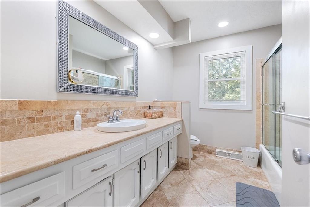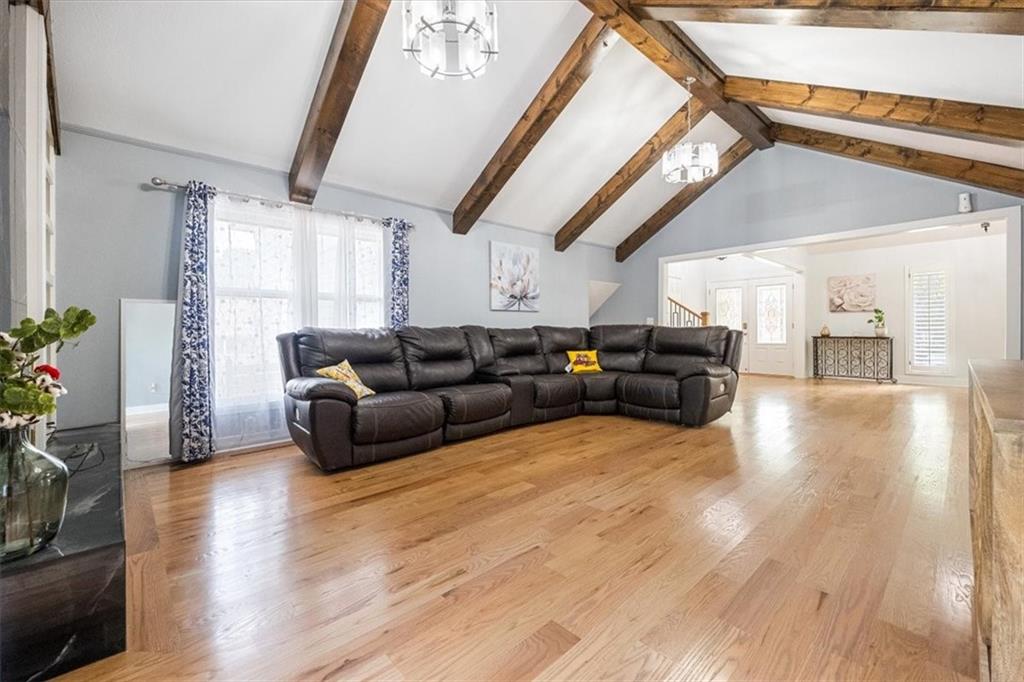 Completely updated & move-in ready in Country Club Gardens, just moments from Blue Springs Country Club Golf Course! Exterior upgrades include a 2-year-old roof, new lap & shake siding, Smart Trim windows, and fresh paint. Relax or entertain on the covered composite deck overlooking a stamped patio & fenced yard. Inside offers new hardwoods, vaulted ceilings with exposed beams, a remodeled kitchen with custom cabinets & granite island, designer tile fireplace, and a fully updated primary bath. Finished basement + brand new high-efficiency HVAC. Simply move in and enjoy!