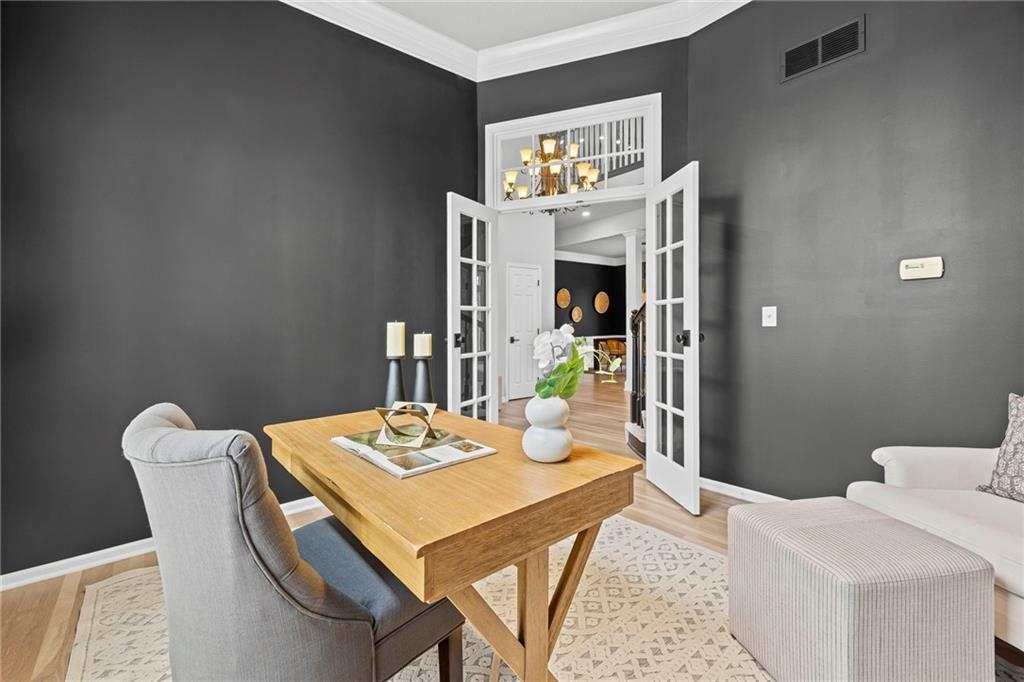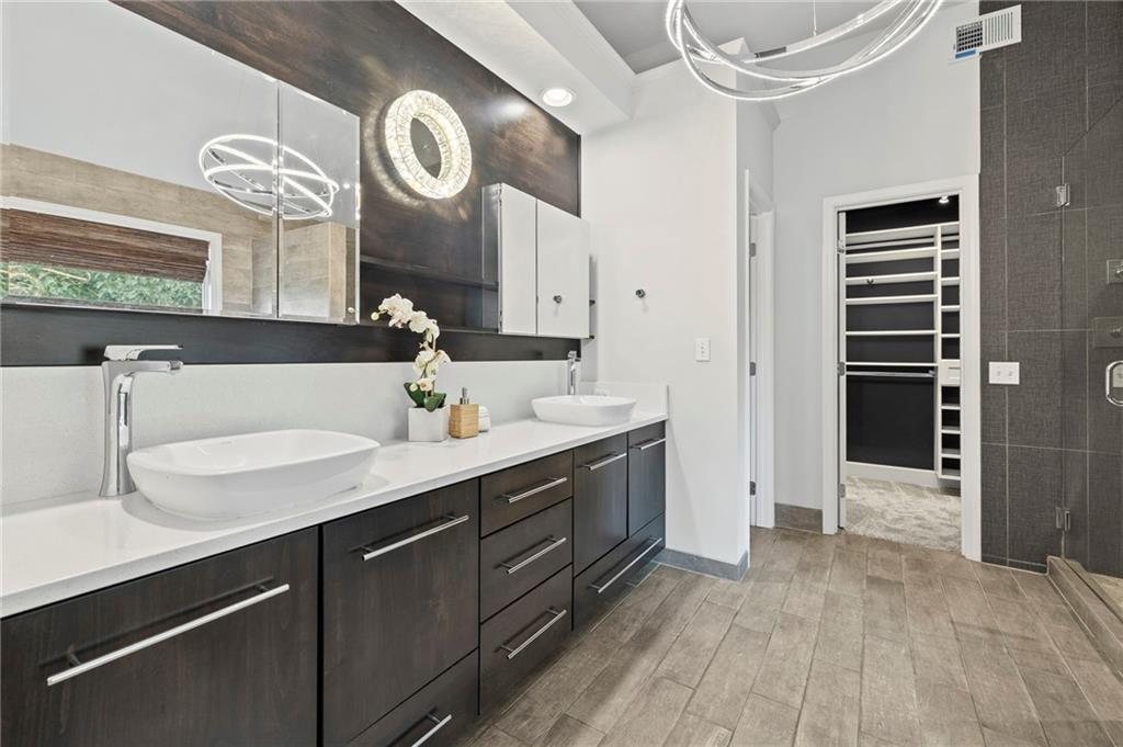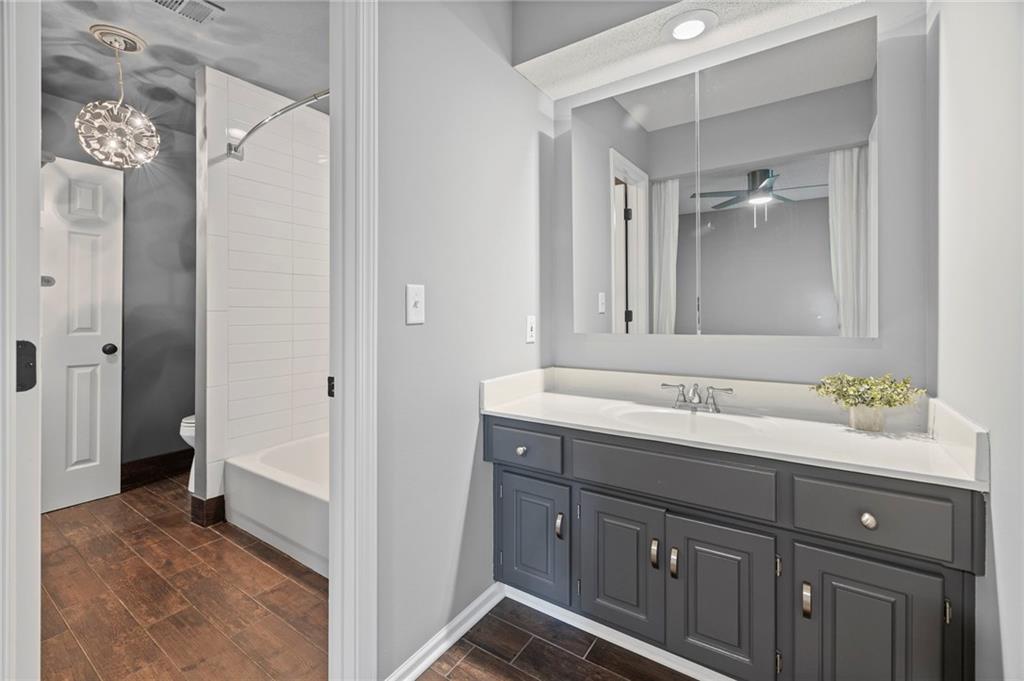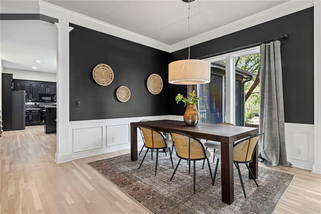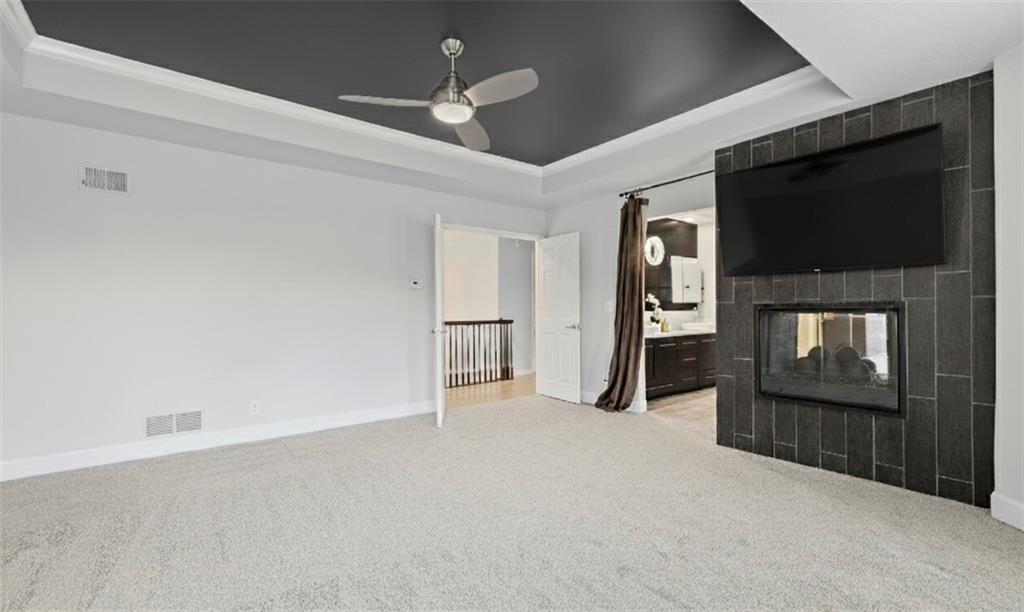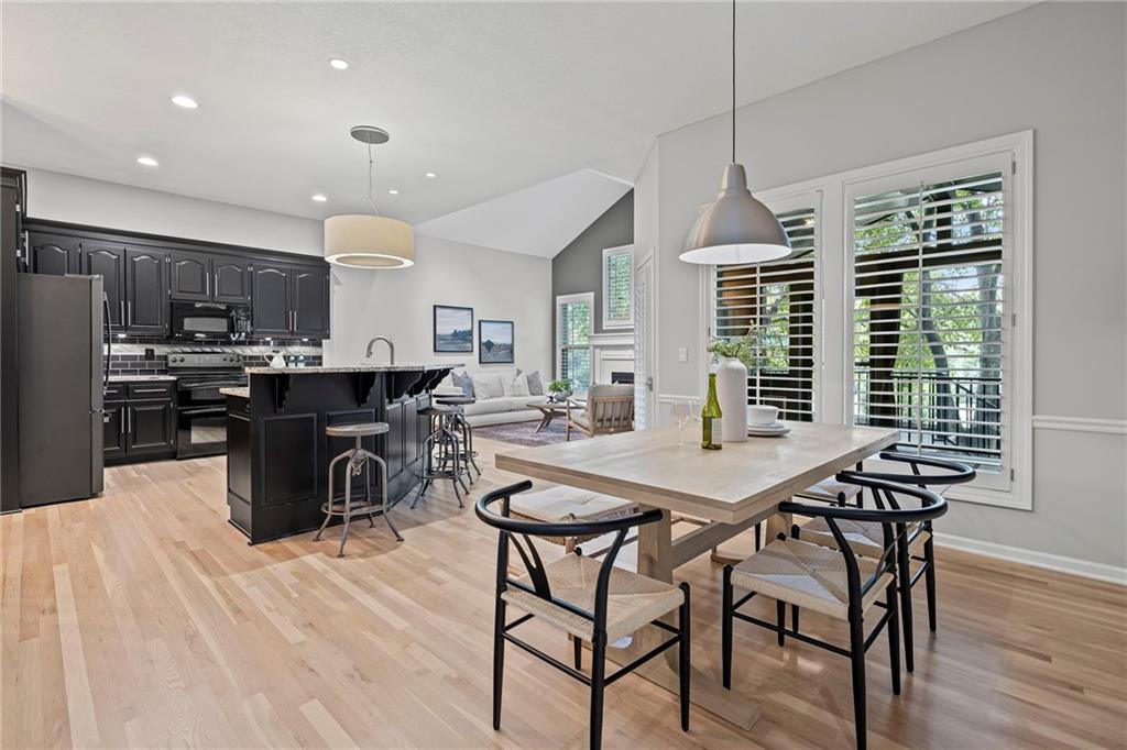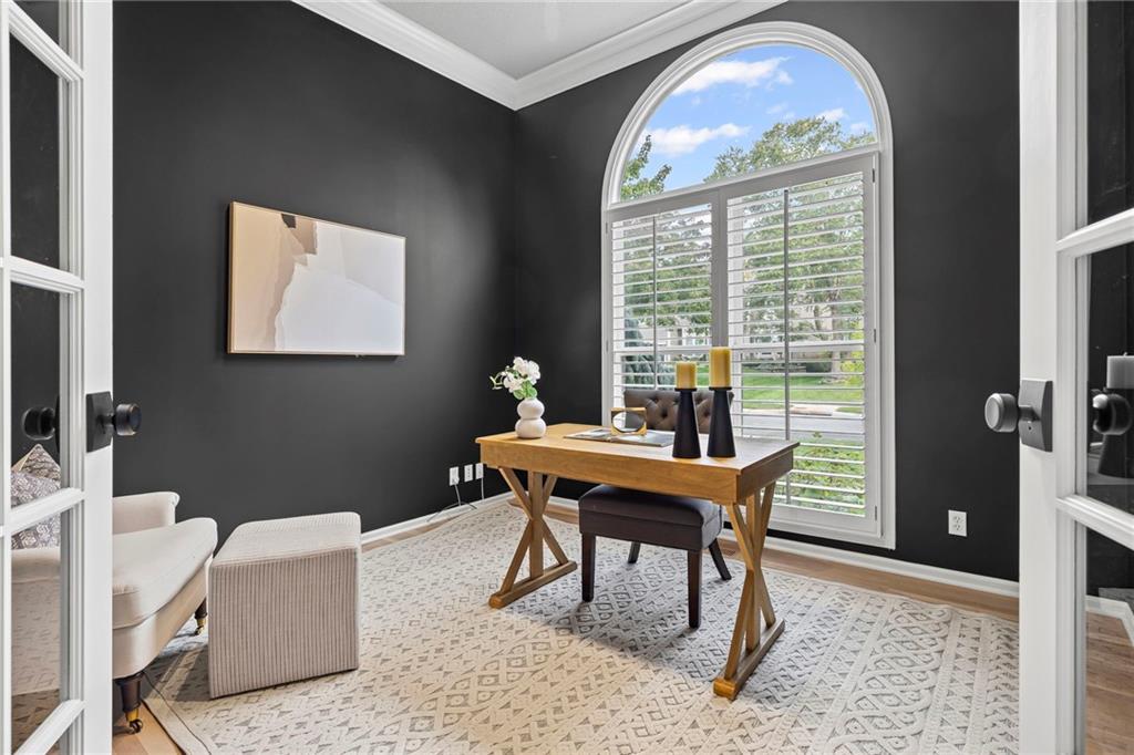 Welcome to this stylish, move-in ready 2-story home nestled in the heart of Overland Park. This generous residence offers 4 bedrooms, 3 full baths, and 2 half baths, ensuring plenty of space for comfortable living. As you enter, a vaulted entryway with a striking curved staircase captures your attention, enhanced by newly refinished hardwood floors. The freshly painted walls and trim, paired with elegant plantation shutters, create a pristine, inviting atmosphere. This home boasts an open floor plan designed for modern living and entertaining. Expansive living and dining areas welcome you with an abundance of natural light. The main level includes a dedicated home office along with a half bath. At the heart of the home, the eat-in kitchen stands as a true centerpiece, featuring a large island with ample bar seating. Adjacent to the kitchen, a cozy hearth room with a fireplace provides a warm and inviting retreat, perfect for relaxation. The spacious primary suite offers a beautifully updated bath, complete with heated floors, including the shower, for a spa-like retreat. It also features a custom closet and a cozy fireplace. Upstairs, you will find three additional large bedrooms, one with its own private bath and the other two sharing a convenient Jack and Jill bath. The second-floor laundry room adds to the home's functionality and convenience. The finished walk-out basement includes a large recreation room with a wet bar and a custom cherry wood bar top with 2 beverage refrigerators. A 5th non-conforming bedroom or office, plus ample unfinished storage, makes the lower level versatile and functional. The screened-in porch is an outdoor living haven complete with a heater and a ceiling fan. The beautifully landscaped, fully fenced backyard features a large patio for a second outdoor living area. Don't miss your opportunity to own this exquisite home in a sought-after location.