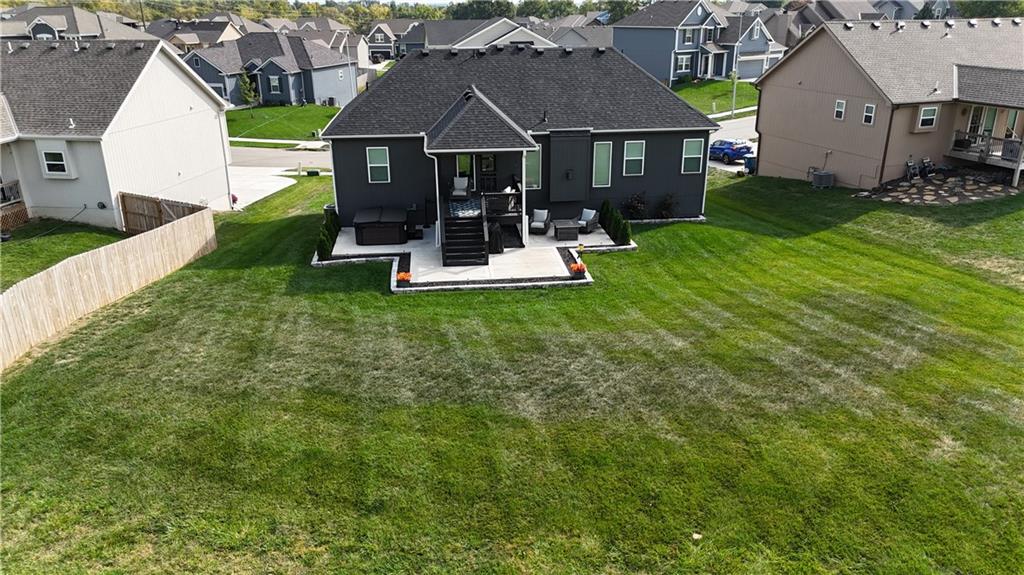 Step inside this nearly new Liberty home where thoughtful design and everyday comfort come together. The main level greets you with a spacious, light-filled living room anchored by a cozy gas fireplace and plush carpet that invites you to kick off your shoes and stay awhile. Just beyond, warm hardwood floors carry through the kitchen and dining area—an open, seamless space perfect for gatherings. The kitchen shines with quartz countertops, stainless steel appliances, ample cabinetry, and a pantry, while the conveniently located laundry room just off the kitchen keeps everything practical and within reach. The primary suite is privately tucked away, offering a peaceful retreat with a large walk-in closet and a spa-inspired bath complete with dual sinks, soaking tub, and separate shower. Two additional bedrooms and a full bath round out the main level. Downstairs, the finished lower level expands your living space with a generous family room ideal for movie nights, game days, or a cozy hangout spot. You’ll also find a fourth bedroom and third full bath—perfect for guests or a home office. Out back, unwind on the covered deck or entertain on the extended patio overlooking the beautifully maintained yard. With an oversized three-car garage and access to Clay Meadows’ neighborhood pool, this home blends small-town Liberty charm with modern style and convenience.