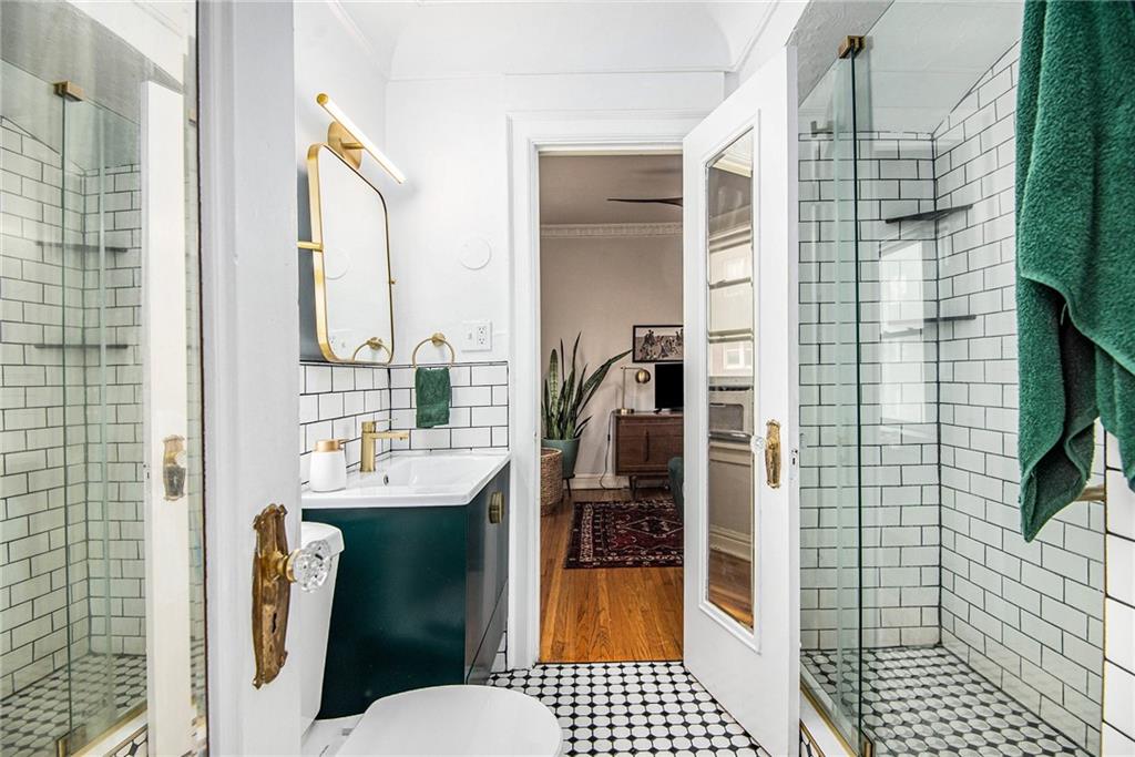 Charming with an abundance of character, this 2 bed/1 bath condo is just steps away from the Country Club Plaza, Nelson Atkins Museum and UMKC! Seller has recently invested over $40K perfectly updating the kitchen with quartz counters, new backsplash and stainless steel appliances, bathroom boasts new tile, fixtures and vanity, and new laundry (washer/dryer stays)! Exquisite crown molding, hardwoods and generous natural light throughout. A bonus room with new flooring and outstanding views is perfect for a home office. Additional highlights include a covered and secure parking space and privately operated security system. This beautiful condo is easy living in an amazing location.....you don't want to miss!