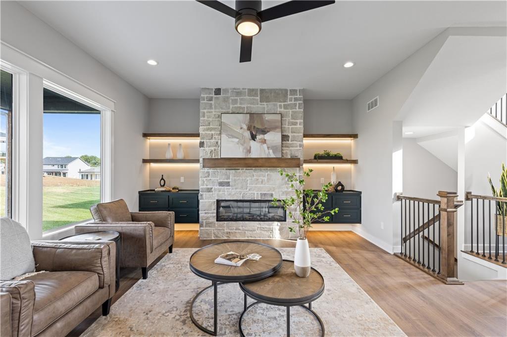 Welcome to The Delano — where modern elegance meets timeless comfort. This stunning home showcases a modern Euro elevation package and an exceptionally thoughtful design that redefines luxury living. Featuring five spacious bedrooms and four full baths, The Delano offers both functionality and sophistication at every turn. The main level impresses with a versatile pocket office or an additional flex room accompanied by a full bath—perfect for guests or a private workspace. The gourmet kitchen is a showpiece, adorned with beautiful quartz countertops, stunning cabinetry, and a beverage center complete with a built-in refrigerator, extra storage, and subtle under-shelf lighting that exudes refined ambiance. In the great room, a floating base cabinet with shelving and accent lighting creates a striking focal point, blending form and function seamlessly. Upstairs, the primary suite is a private retreat featuring an oversized walk-in closet and a bonus flex space—ideal for a home office, fitness area, or reading nook. Additional highlights include a well-appointed laundry room with cabinetry and sink, an irrigation system with lush landscaping, and a custom lighting package that elevates the home’s warmth and style. The lower level is thoughtfully stubbed for a future bath and wet bar, offering endless possibilities for expansion. The Delano is more than a home—it’s a statement of modern sophistication designed for effortless living.