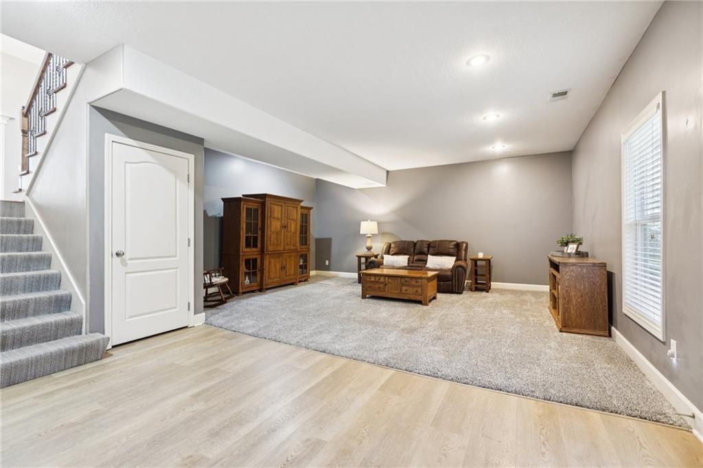 This spacious 2,700+ sq. ft. California split floor-plan offers the flexibility and room today’s buyers are looking for! Featuring 4 bedrooms, 3 full baths, two living areas, and a 3-car garage, there’s space for everyone to spread out and enjoy. Recent updates include an HVAC system less than 3 years old, roof is 4 years old, and tinted windows on the front and back for added energy efficiency and privacy. Step inside to a vaulted living room with hardwood floors, fireplace, and built-ins. The kitchen boasts newer stainless appliances (refrigerator stays), an eat-in dining area, and access to the deck with covered gazebo—perfect for outdoor entertaining. First and second floors include two bedrooms, a full bath, and a primary suite with vaulted ceiling, dual vanity, walk-in closet, jetted tub, and separate shower. Laundry is conveniently located on this level, with washer and dryer included. The walkout basement provides even more living space with a family room, full bath, and additional bedroom—plus a sub-basement offering ample storage. Enjoy the flat, fenced backyard complete with shed, patio and fire pit. Car enthusiasts will love the 3-car garage, finished with epoxy floors, sink, refrigerator, storage area, and a heating unit for year-round comfort. Located in a highly rated Kearney School District, the neighborhood includes a community pool and nearby elementary school, with quick access to groceries, restaurants, and highways. This home checks all the boxes—space, location, and value! Don’t wait to make 904 Crestridge Drive your new home.