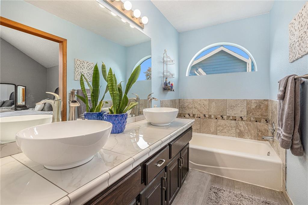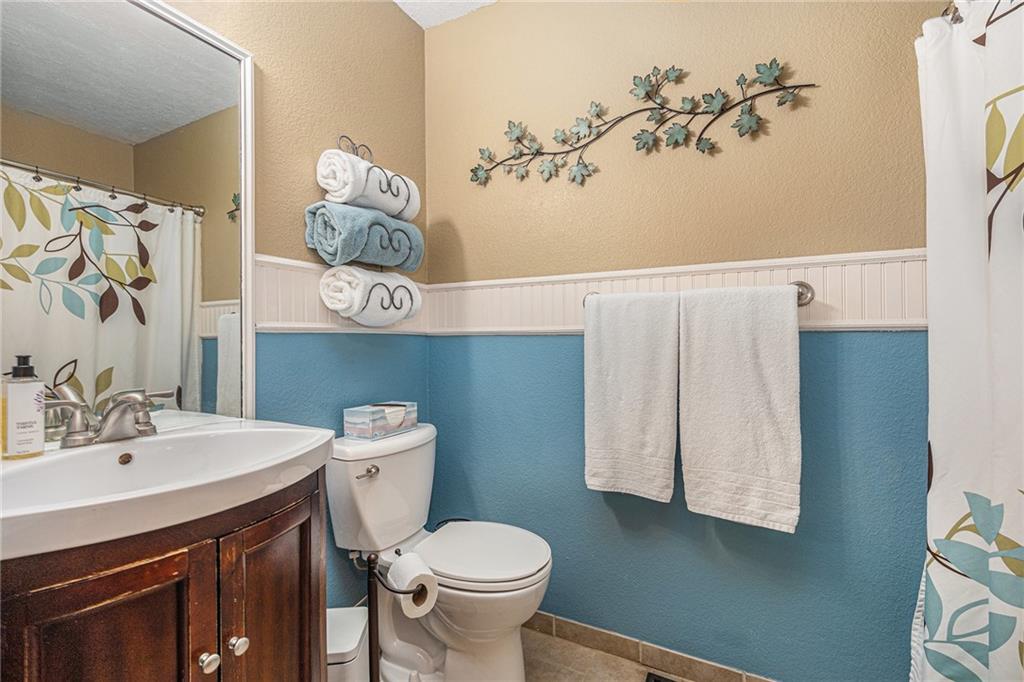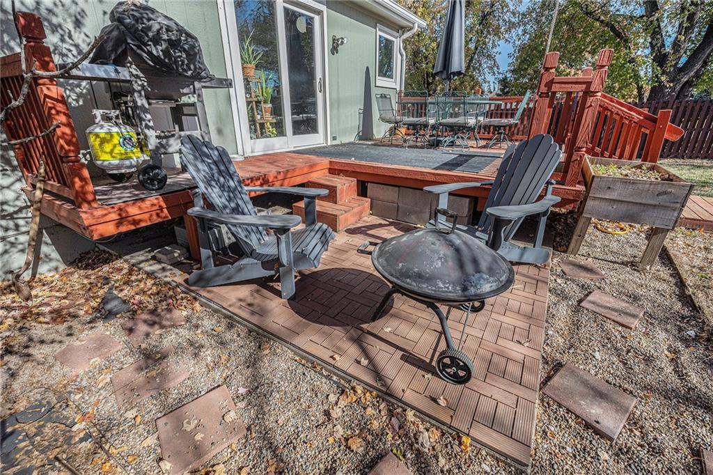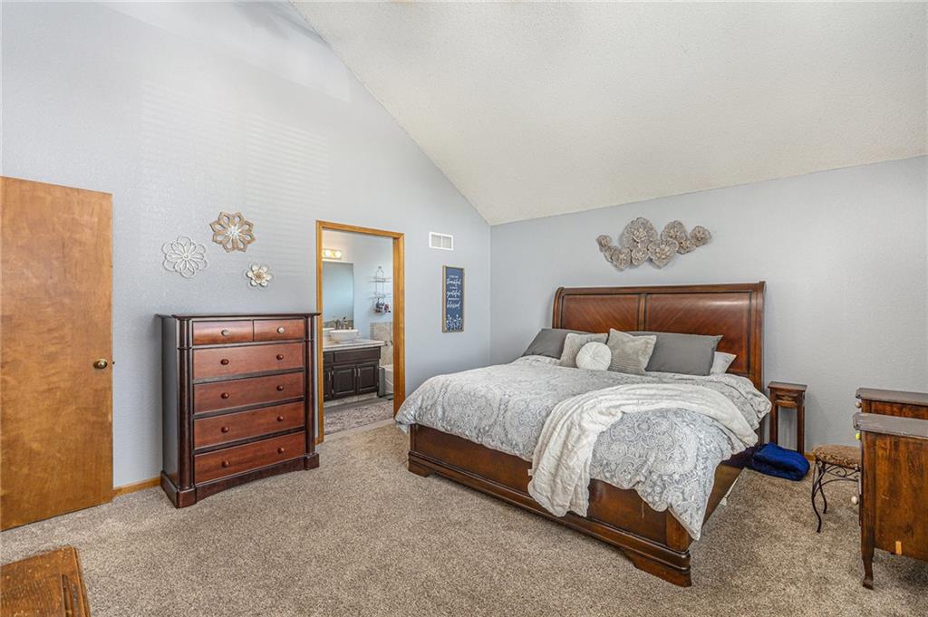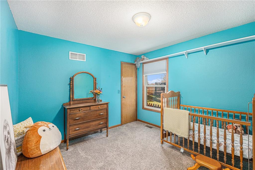 This beautiful home in the Blue Valley School District is close to award winning schools, parks, shopping, and more! Outside you are greeted by mature trees and landscaping and a welcoming front porch. Walk in to a spacious living room with soaring ceilings, a ceiling fan, a cozy fireplace with gas logs, an adorable accent wall, and brand-new carpet. The second level has hardwood floors throughout. A spacious dining room has room for your large table, is convenient to the kitchen, and overlooks the living room. The eat-in kitchen boasts granite counters, a tile backsplash, and handy bar seating. Also on the second level are two large bedrooms with carpet and walk-in closets, a laundry area, and a tiled bathroom with a shower/tub combo. Up a short set of stairs is an amazing primary suite with huge, gorgeous windows, double closets, soaring ceilings, and a ceiling fan. The updated primary bathroom features beautiful tile work, a separate tub and shower, and a double vanity. The basement level has a non-conforming 4th bedroom with a built-in desk, a walk-in closet, and a third full bathroom with tile and shower. The downstairs family room is huge! It is light and bright and boasts brand-new paint and carpet! The two-car garage has a handy work bench area and newer floor utility tiles. Walk out of the kitchen to a deck and a large, fully fenced backyard! The home features so many newer big-ticket items - a brand-new composite roof, durable cement board siding on the front and newer siding on the sides, newer Anderson windows, a newer hot water heater, and more! Don't miss out on this incredible opportunity!