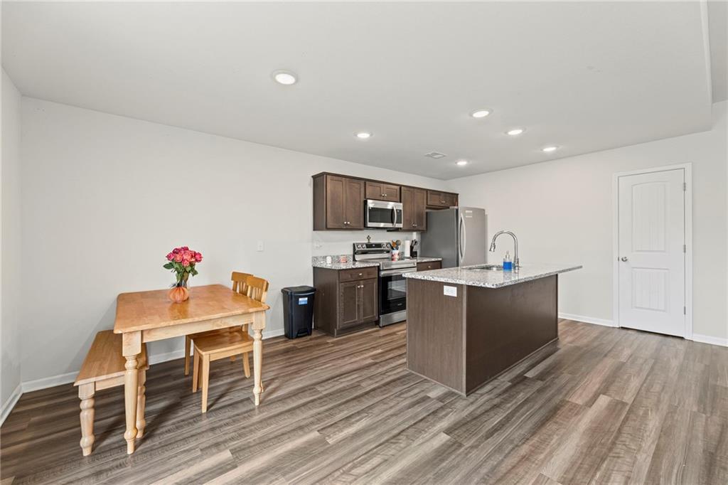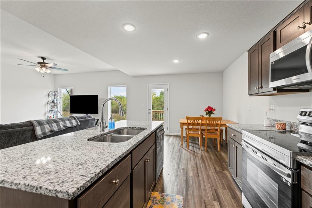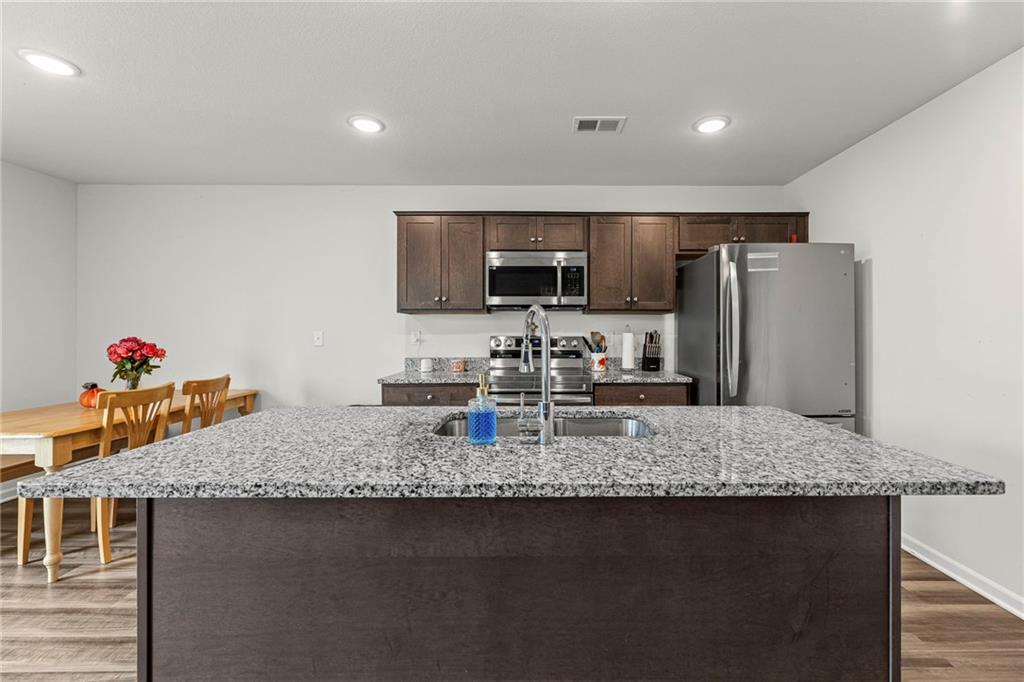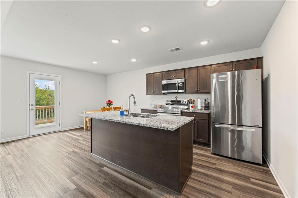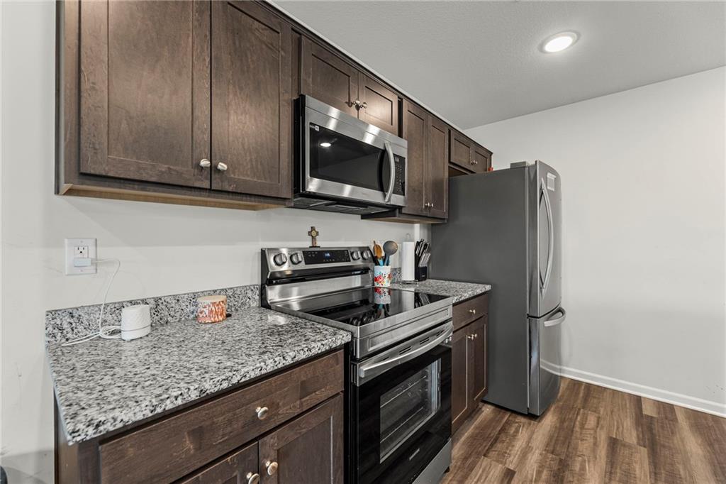 Why wait to build when you can have nearly new for less? This beautiful Marapi reverse 1.5-story is just over a year old and priced below reproduction cost, offering incredible value compared to new builds. With 4 bedrooms, 3 full baths, and a finished walkout basement, you’ll enjoy more space and upgrades than similar homes priced around $380K. The open-concept main level features a bright great room and a gorgeous kitchen with granite countertops, stainless appliances, pantry, and durable LVP flooring throughout all main living and wet areas. The primary suite includes a double vanity with granite, a walk-in closet, and a spa-like feel. The finished lower level offers a spacious family room, two additional bedrooms, a full bath, and plenty of storage, perfect for guests, kids, or a home office. Step out back to enjoy peaceful green space views with no homes directly behind you. Move-in ready, modern, and better than new, this one won’t last long