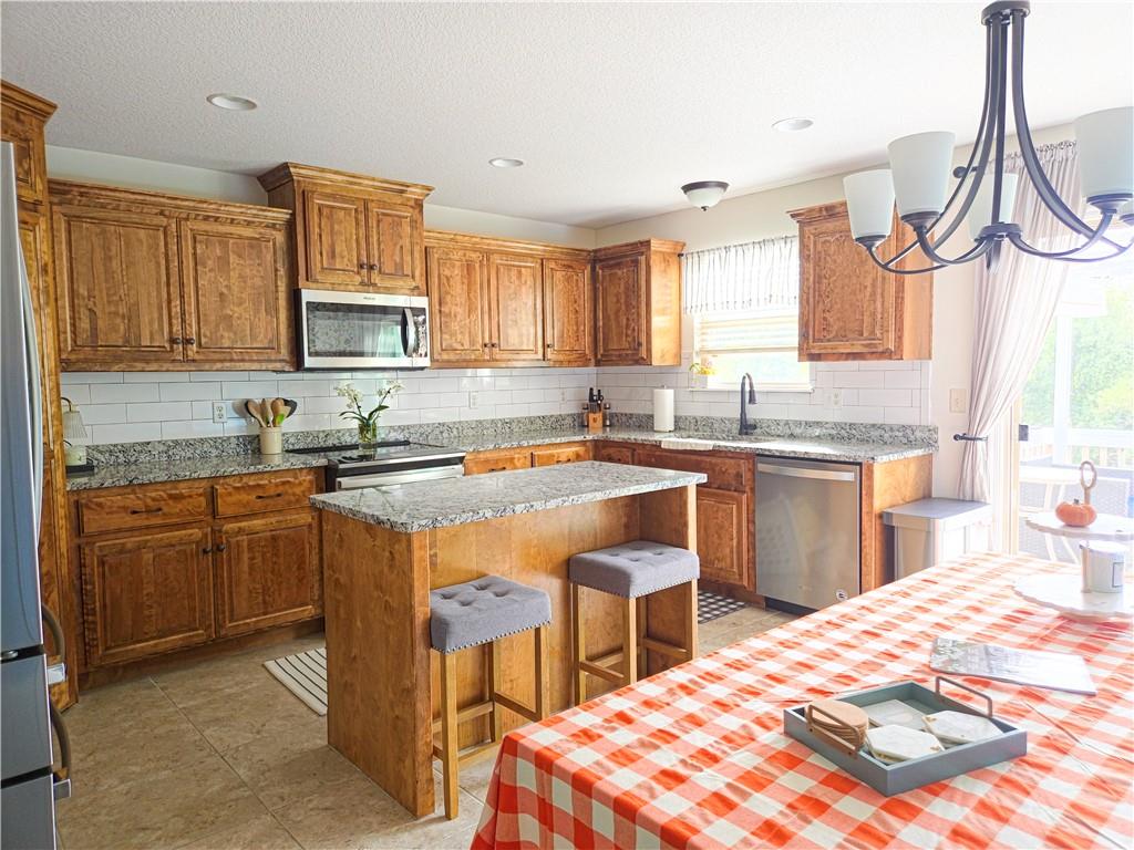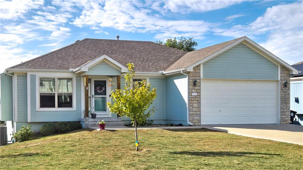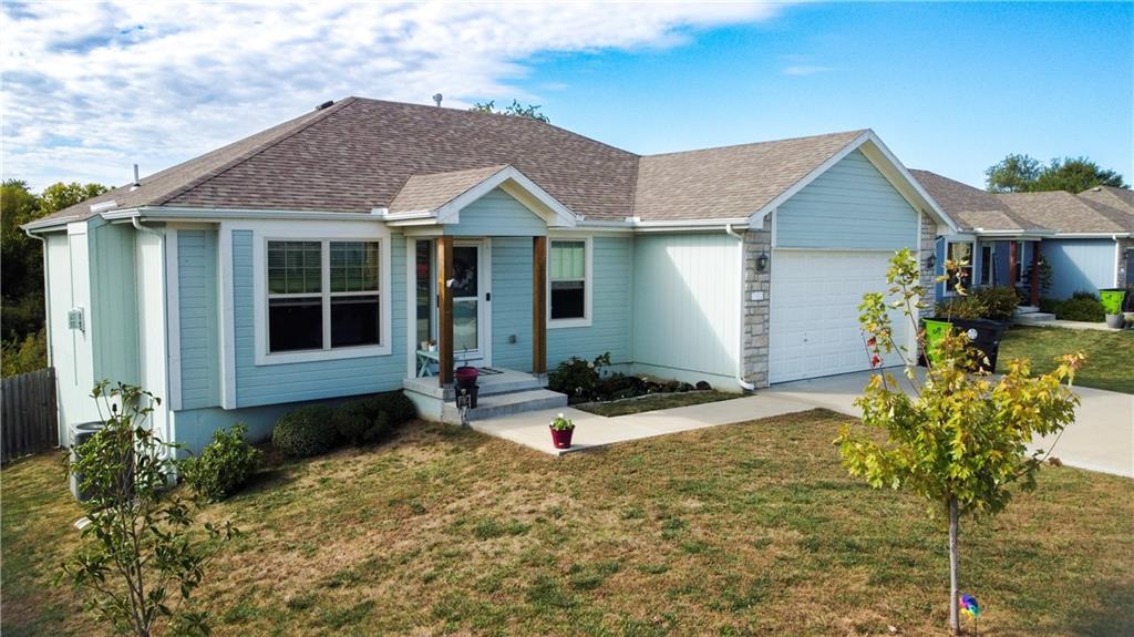 Welcome to Emerson Park, where modern design meets timeless comfort. Built in 2020, this 4-bedroom, 3-bath home offers over 2,200 sq ft of beautifully finished space with custom upgrades that go well beyond builder-grade. The kitchen features GE Profile appliances with air-fry oven, a tiled backsplash, and a walk-in pantry. Main-level living includes a large laundry room, tiled bathrooms, and designer paint and wallpaper accents that add warmth and personality. Oversized windows fill the home with natural light, while the deck and pergola offer stunning west-facing views of Cass County sunsets. All major systems are under five years old, and a one-year home warranty is included for peace of mind. Located within walking distance to Historic Main Street and Wallace Park, with easy highway access and Belton School District attendance, this home blends style, quality, and convenience—the perfect mix of new construction and curated living.