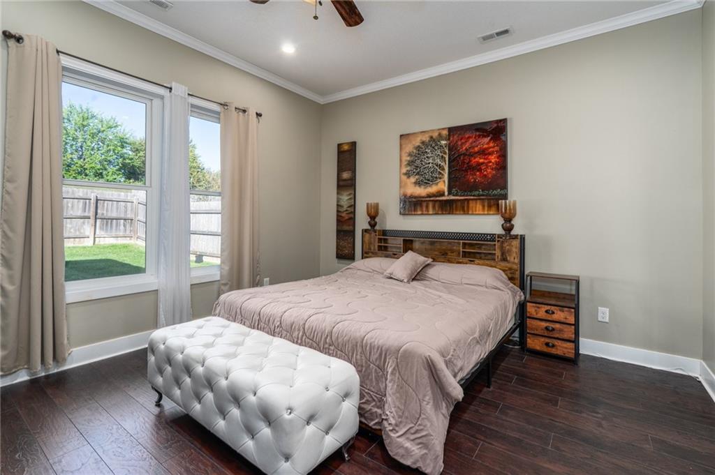 One level ranch with high ceilings and zero entry access. Beautiful master suite with expansive master closet and custom shower. Granite kitchen countertops and ample pantry and high end appliance package. Fenced yard with large covered patio and sprinkler system. Great one level living with no HOA with easy access to walking/biking trails and close proximity to KU and major highways.
