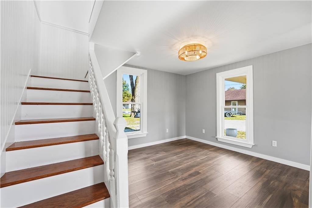 Welcome home to this beautifully updated 2-bedroom, 1-bath gem in the highly sought-after Kearney School District! Sitting on a 0.26-acre lot, this charming home perfectly blends modern updates with small-town charm. Step inside to a bright and welcoming living room that flows seamlessly into the dining area—ideal for entertaining or cozy family dinners. The gorgeous kitchen features stylish tile backsplash, a farmhouse sink, custom cabinetry, a pantry, and a convenient attached mudroom with access to the driveway. The main floor also includes the laundry room and bathroom. Upstairs, you’ll find two comfortable bedrooms offering peaceful retreats. Outside, enjoy a country feel with plenty of space for a garden, yet just minutes from the highway for easy commuting and access to nearby amenities. This move-in-ready home combines comfort, style, and convenience—all in one perfect package! Be sure to also check out MLS #2581130 at 610 Water Street, located right next door—an incredible opportunity to purchase two neighboring properties. Buy one and make the other an investment property, start your rental portfolio, or create a perfect setup for multigenerational living or a mother-in-law quarters arrangement.