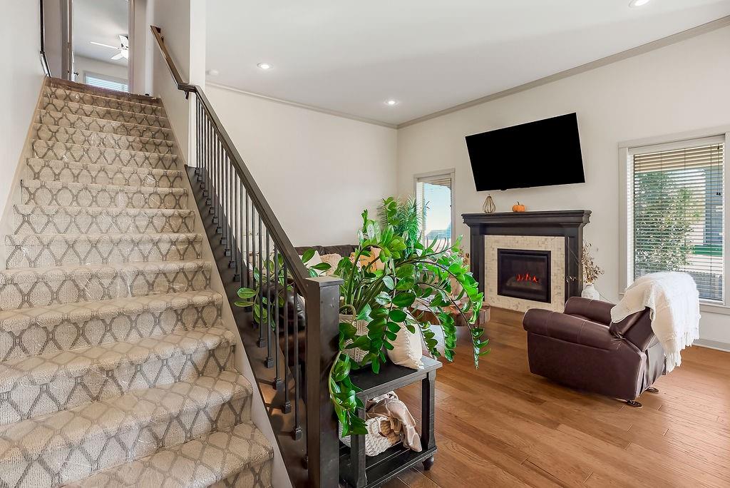 Welcome to this beautifully cared for Cherry Creek II 1.5 story home, tucked within the highly sought after Ridgewood Place at Chapman Farms community. From the moment you arrive, you can feel how much pride and attention has gone into maintaining this home. Step inside and you’re greeted by soaring vaulted ceilings and rich wood flooring that give the great room an inviting, open feel. The main level offers a seamless flow, connecting the living space to a bright kitchen and cozy breakfast area where morning coffee feels just a little sweeter. The dining room, which can easily serve as a home office, adds versatility to the layout.The main level master suite offers the perfect retreat, complete with a luxurious bath featuring a soaking tub and walk in shower. Upstairs, you’ll find three more spacious bedrooms, one with its own private bath and two sharing a convenient Jack and Jill setup, ideal for family or guests. Step outside to a covered 19x10 patio overlooking a well kept yard, perfect for relaxing evenings or weekend gatherings. The backyard also features a fenced area, an L shaped vegetable and fruit garden (approximately 12x7), and several planted fruit trees you’ll enjoy for years to come. Enjoy the large unfinished basement that can be used for storage, a rec room, or easily finished later with the already set up plumbing for a full bath, kitchenette, and bedroom, giving you plenty of options to expand your living space. The home has been professionally power washed, refreshed with new mulch and interior paint, had the carpets professionally cleaned, and is truly move in ready. With an irrigation system, security system, and a 10 year builder warranty, every detail has been thoughtfully cared for. This isn’t just a house, it’s a home that’s been loved, maintained, and ready to welcome its next chapter. You won’t want to miss how beautifully this home has been maintained inside and out.