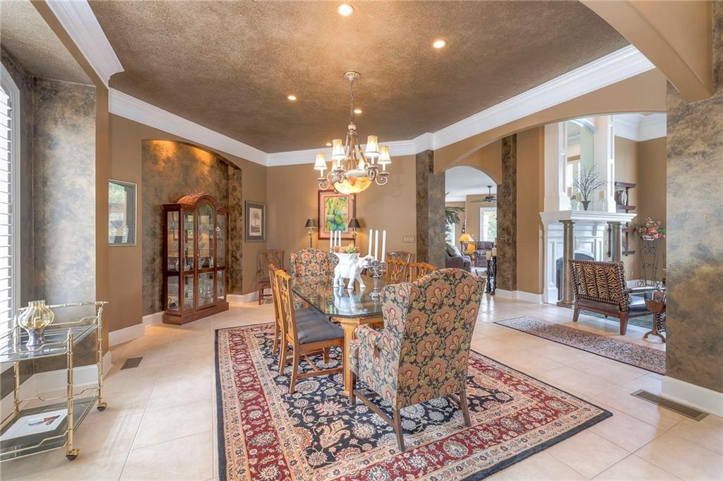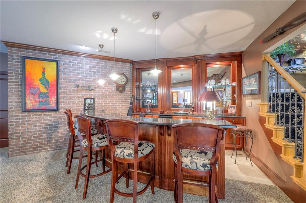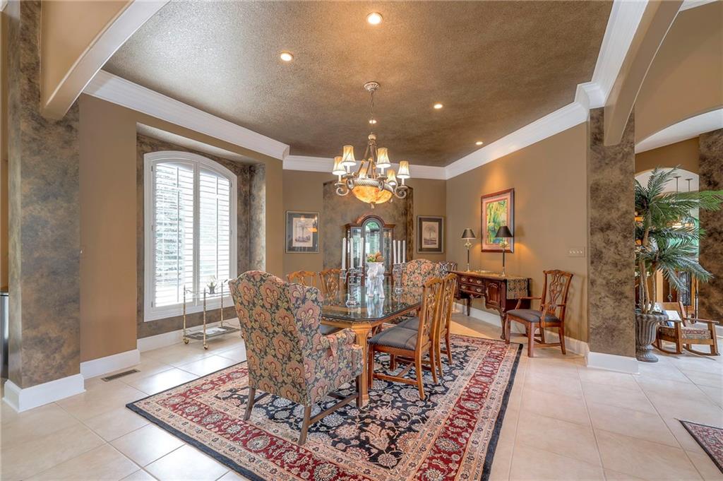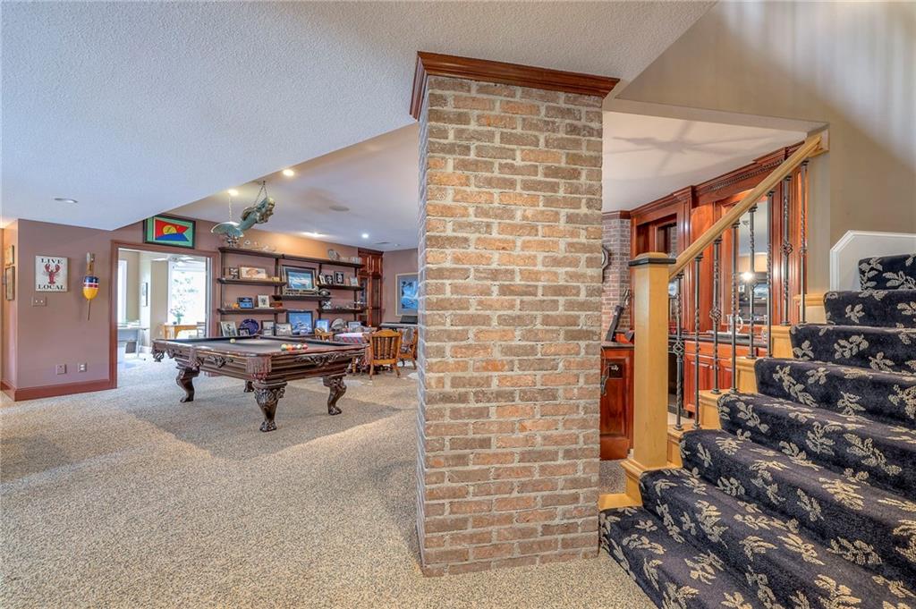 This stunning one-of-a-kind custom builder’s home sits on a private, beautifully landscaped lot surrounded by mature trees and natural views with a creek. Designed and built by the owner as a personal showpiece, every detail reflects craftsmanship and quality. Grand entryway with beautiful custom doors and built-ins. The formal dining and living rooms impress with 14- and 10-foot ceilings, faux-finished walls, and a fireplace with gas logs. The updated kitchen features custom curved cabinetry, quartz countertops, and high-end appliances including a Bosch dishwasher, double convection oven, warming drawer, Franke sink, and induction cooktop. A spacious laundry and hobby room just off the kitchen includes a sink and ample work area. Step out onto the deck to enjoy peaceful outdoor living and a private, wooded backdrop. The owners’ suite feels like you’re sleeping in a treehouse, offering tranquility and luxury with its grand ensuite bathroom. Enjoy the double vanity, walk-in shower with dual showerheads, whirlpool tub, and a large walk-in closet complete with a custom island and built-in dressers. The lower level is perfect for entertaining with a solid mahogany bar topped in granite, brick accents, and a game area with built-in pool table storage. Enjoy the cozy great room with surround sound and a brick fireplace with gas logs. Two spacious bedrooms each have private baths, and a fourth room—currently used as an office—has private exterior access, ideal for a home business. Walk out to the slate patio and firepit surrounded by professional landscaping, complete with irrigation, 21 mature pine trees, and 9 hardwoods. Additional features include custom plantation shutters, a grand circle driveway with cut stone front porch, and an oversized three-car garage with sink and epoxy flooring. This exceptional property perfectly blends craftsmanship, privacy, and comfort in a truly one-of-a-kind setting.