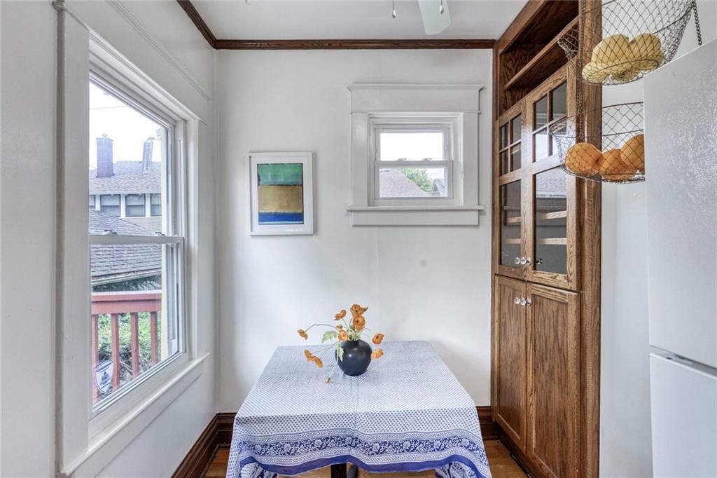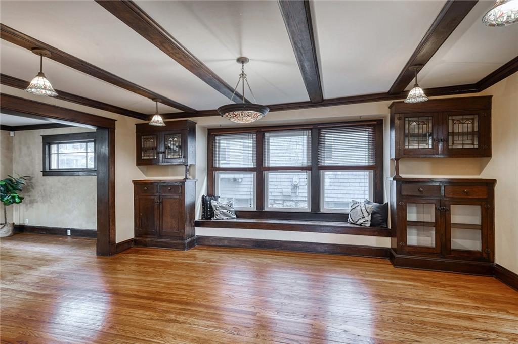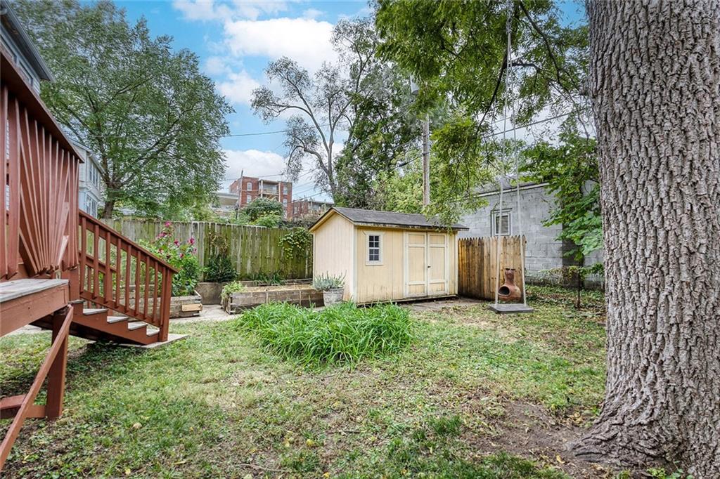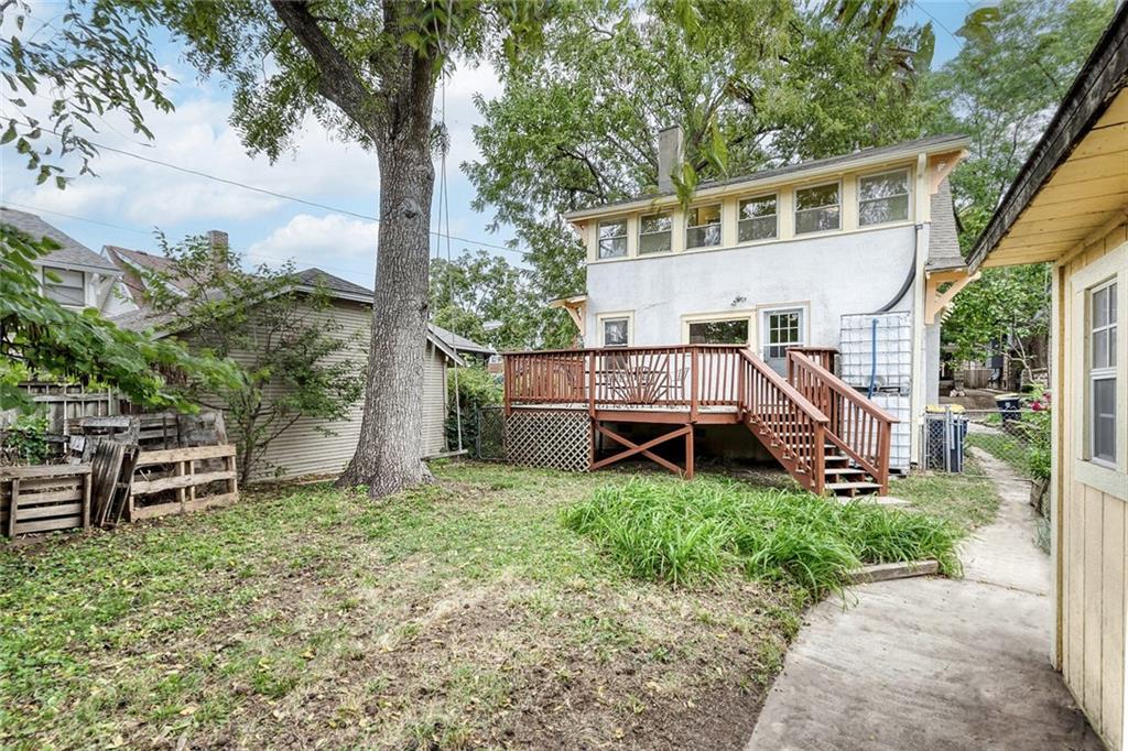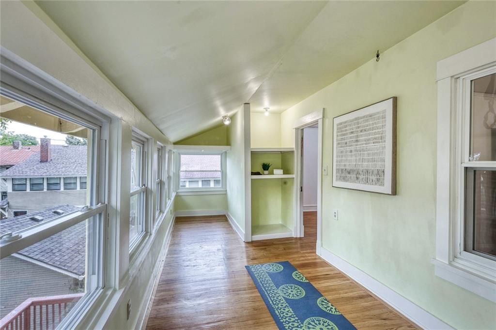 3BR/1.5 BATH RIGHT NEXT TO THE EMERALD JEWEL OF KANSAS CITY, ROANOKE PARK. Tucked at the end of a one way street in Volker sits a sweet craftsman bungalow, waiting for it's next loving owner(s). The large living room has shiny hardwood floors & beautiful original wood moldings as well as a fireplace to make a frigid evening cozy. The dining room has a window seat flanked by a gorgeous pair of original built ins that have stained glass doors. These set off the stained glass of the dining room light fixtures and the very special box beam ceiling. The bright kitchen has lots of cabinets, a small eating area and a great window over the sink to watch the goings on on the deck which overlooks the yard and swing area. There is also a bonus first floor room that presents as a den, office OR MUSIC ROOM with built in bookshelves and dreamy window seat. The convenient first floor half bath comes complete with washer, dryer and the rare laundry chute! Large, 2nd floor master has lots of windows and a decorative fireplace and mantle. Large 2nd floor bath has a great clawfoot soaking tub and pedestal sink. Two more bedrooms adjoin a sunporch that is a flexible space for hobbies, playing, sewing or just enjoying nature. Owners have made several energy improvements with new windows and doors, high efficiency furnace and blown insulation into walls, soffits and attic to a rating of R-40. AVERAGE GAS/ELEC. BILL $116.11/MO!!!.Yard planted with natives and two valuable cachement tanks save rain water for your garden. Great savings. DON'T OVERLOOK being just across the street from the Roanoke Park, with tennis courts, playground equipment, labeled walking trails, sand volleyball court, community center and explorations to be had. Up the street are the fun shops and restaurants of 39th Street, ever interesting and evolving. Close to everything and lots of fun!