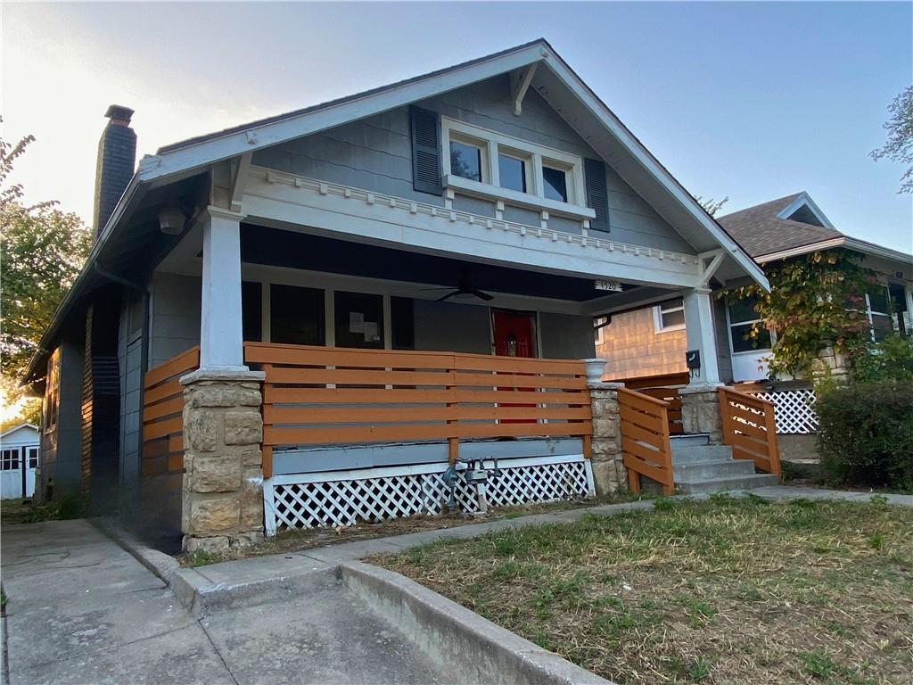 Charming 3-bed, 1-bath bungalow in Kansas City, MO, beautifully updated and move-in ready! Featuring stunning solid surface counters, gorgeous flooring, and a converted upstairs loft now serving as a spacious third bedroom. Enjoy the large covered front porch and expansive backyard, perfect for relaxing or entertaining. There is a small detached garage and off street parking. Don’t miss this delightful home full of modern upgrades and classic appeal!