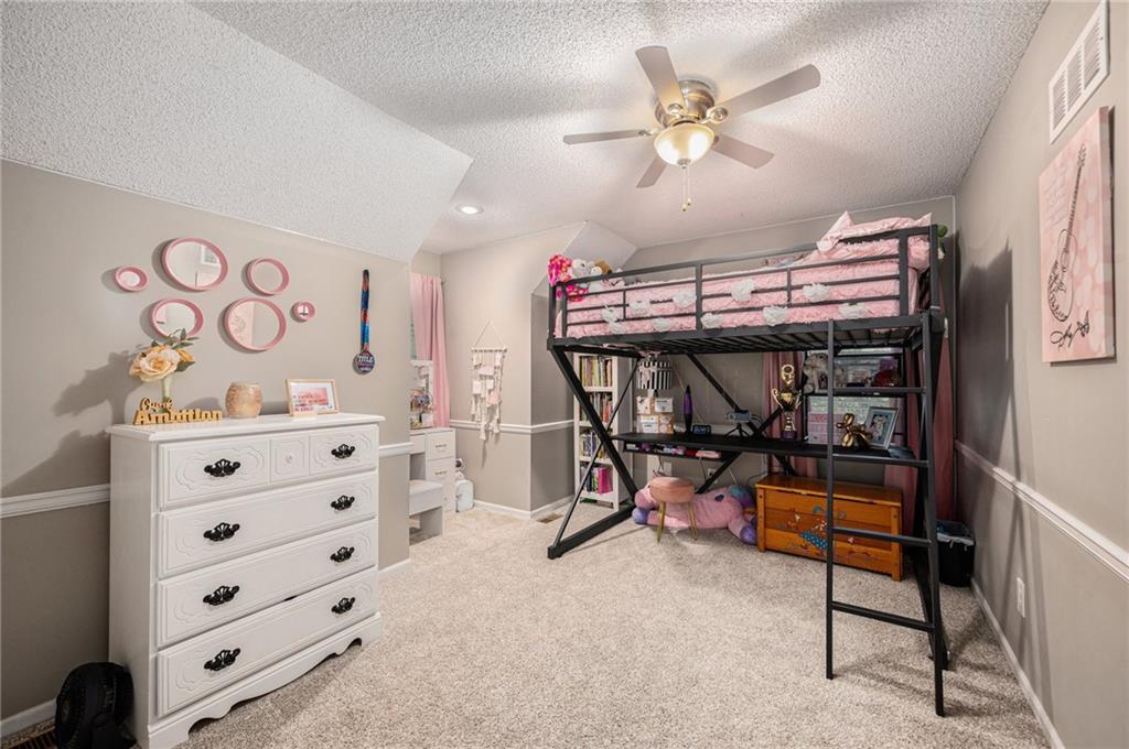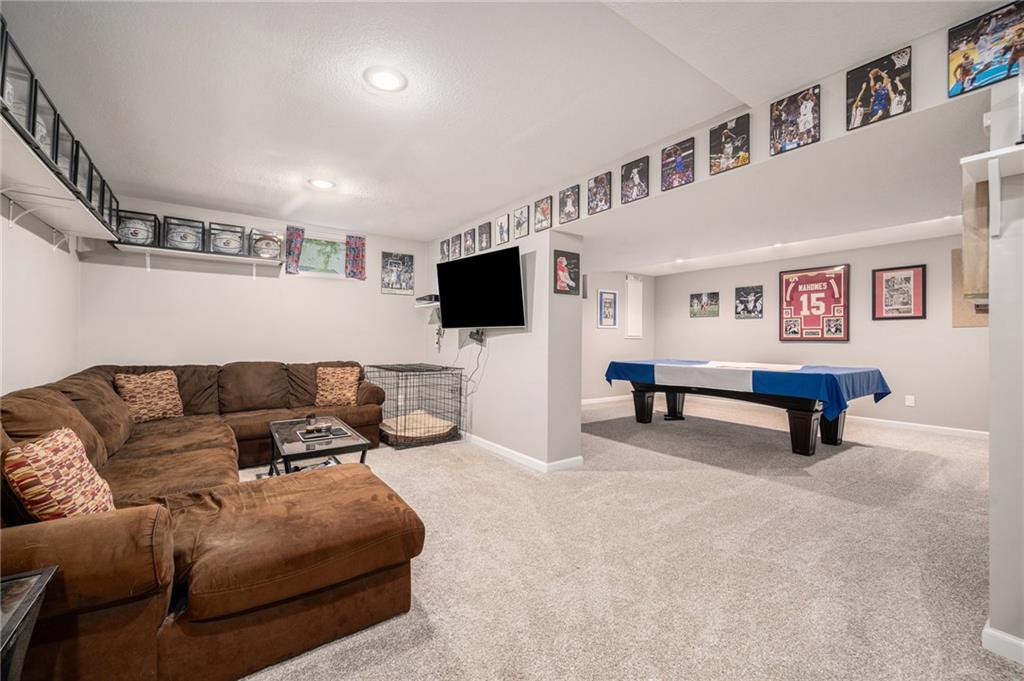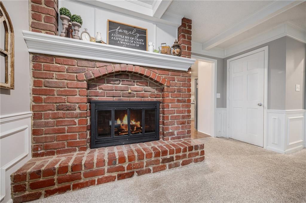 Step inside and you’re greeted by a welcoming foyer that leads you to a bright and inviting living room, complete with built-in storage and plenty of natural light. Down the hall, you’ll find an oversized family room. Perfect for large gatherings or cozy nights in, featuring a beautiful fireplace and a sliding glass door that opens to your back porch and private backyard oasis. The freshly updated kitchen is full of character, offering ample cabinetry, a breakfast nook with access to a peaceful balcony, and plenty of charm throughout. Flowing from the kitchen, the dining room boasts stunning bay windows that fill the space with natural light an ideal setting for family dinners or entertaining guests. Conveniently located off the kitchen is a small hallway with a coat closet, a half bath, and a spacious laundry room that connects directly to the two-car garage. Upstairs, the primary suite is a true retreat featuring its own private balcony and fireplace. The beautifully updated ensuite bath offers dual sinks, a walk-in shower, a generous walk-in closet, and an additional closet for extra storage. Two more spacious bedrooms. Each with walk-in closets and plenty of natural light, along with a full hall bath, complete the upper level. Downstairs, the finished basement is designed for entertaining whether it’s football watch parties, family movie nights, or hosting friends. Enjoy a large recreation area with a built-in bar, a full bathroom, and a non-conforming 4th bedroom (currently being finished). You’ll also find two additional storage rooms and a utility space to keep everything organized. Step outside to your spacious backyard, perfect for relaxing or entertaining. Enjoy peaceful nights under the stars by the charming fire pit or on the back deck. This home is filled with warmth, character, and modern updates throughout. Don’t miss your chance to make it yours!