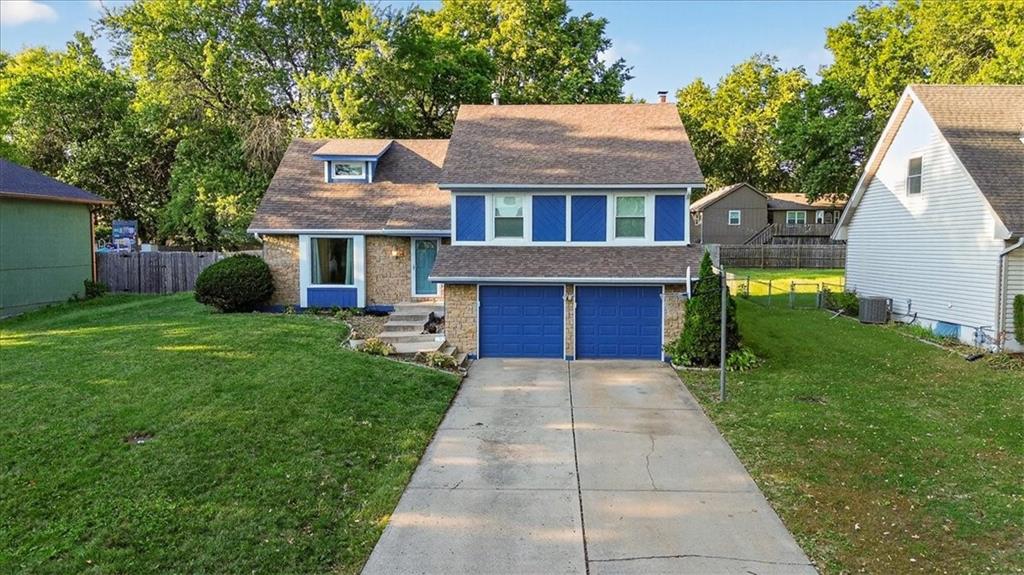 Welcome to this turn key home. HONEY, stop the car. This is the home that never ends!!! The exterior’s cheerful blue accents and stone detail create great curb appeal, while inside you’ll find fresh flooring, modern lighting, and an open layout perfect for everyday living with 5 levels of finished living space! The kitchen offers plenty of cabinet and counter space, stainless steel appliances, and a built-in desk area—ideal for meal prep or homework. A spacious dining room flows into the bright living area with vaulted ceilings, adding to the home’s airy feel. Upstairs, generous bedrooms and an oversized bonus room provide flexible options for a home office, playroom, or guest space. The lower-level family room features a cozy stone fireplace—just right for movie nights or relaxing weekends. Step out back to enjoy the fenced yard, complete with a new composite deck and storage shed. Conveniently located near schools, shopping, and highway access, this home blends comfort, character, and function in one great package.