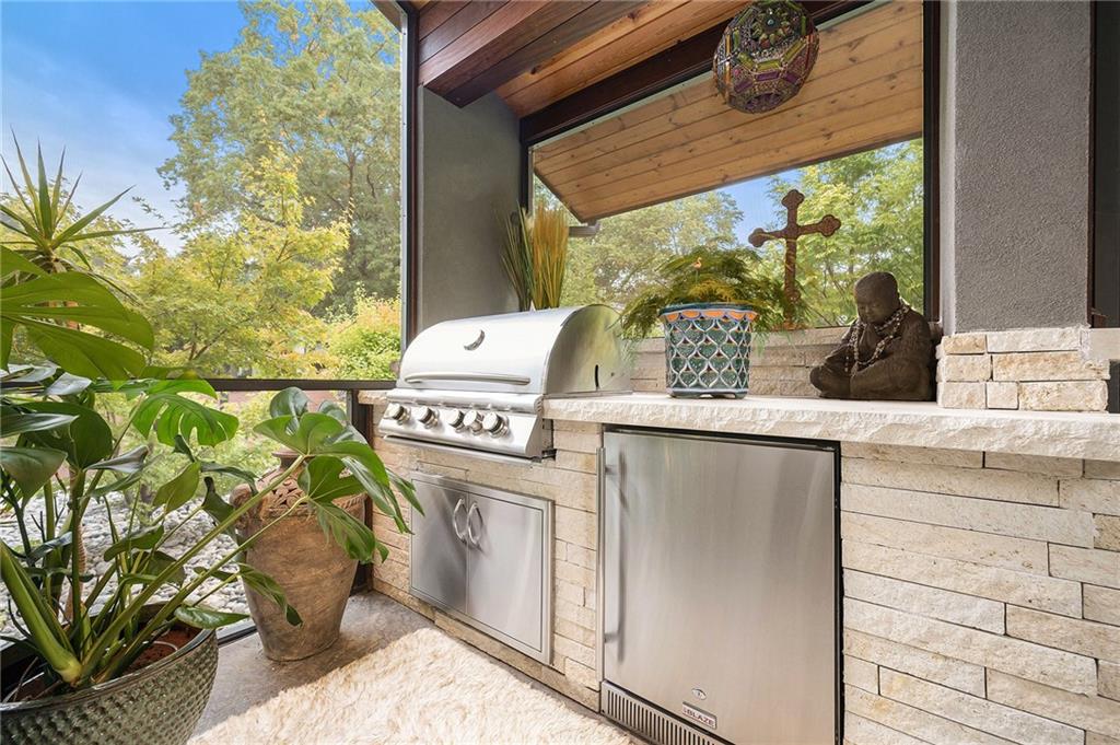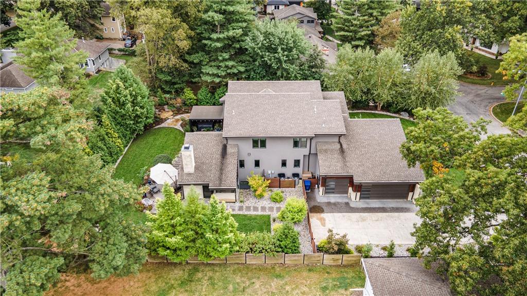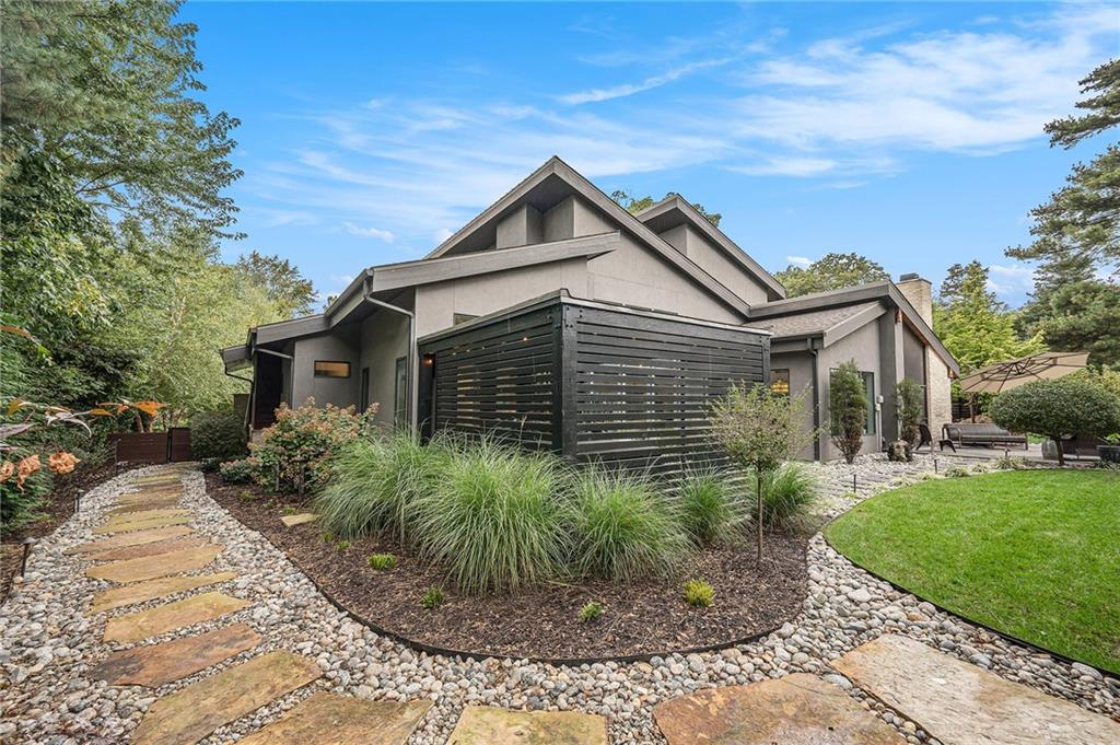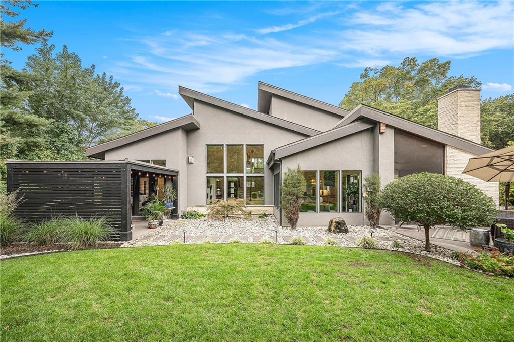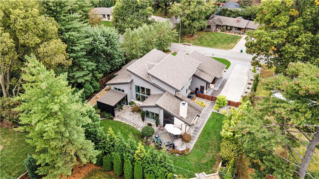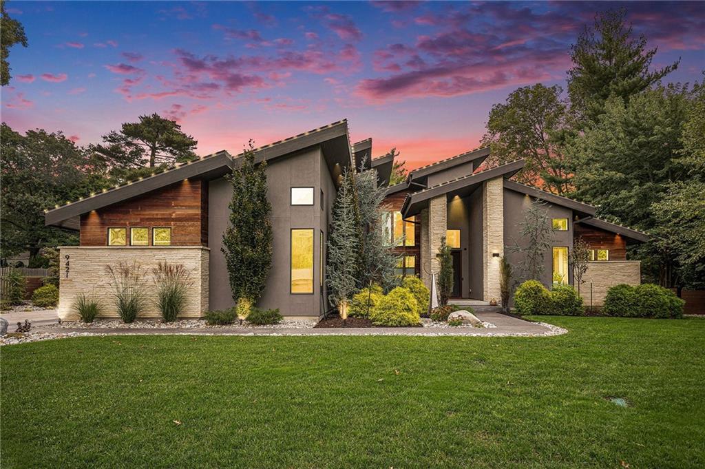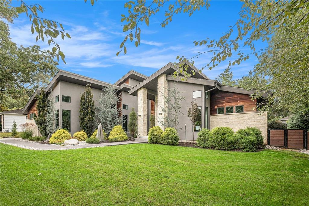 Experience the epitome of luxury living in this must-see, award-winning contemporary masterpiece meticulously crafted by Starr Builders. This extraordinary residence captivates with its striking architectural design, featuring rich IPE wood accents and elegant natural stacked stone that elevate its sophisticated curb appeal. Artfully landscaped front and back gardens create private, serene retreat environments, perfectly complementing the home's opulent exterior. Step into a breathtaking two-story entryway that welcomes you into an expansive great room flooded with natural light through soaring floor-to-ceiling windows, offering panoramic views of the meticulously designed surroundings. The great room is a true highlight, with a dramatic two-story modern gas fireplace adorned with exquisite white stacked stone, custom built-in shelving, and remote control shades. The gourmet kitchen is a culinary sanctuary, boasting top-of-the-line appliances, a state-of-the-art built-in refrigerator, and an expansive butler’s pantry complete with a wine chiller and ice machine. Double sliding doors lead to a screened porch, designed for seamless outdoor living, featuring a built-in gas grill, mini fridge, and a warming wood-burning fireplace. Primary suite is located on the main level featuring spa like bath and large custom closet. Step outside primary to a pergola that offers privacy for hot tub. Spacious dedicated office on main level, two ensuite bedrooms upstairs with generous walk-in closets, and a fully finished lower level with a media room, stylish bar with ice maker, mini fridge, dishwasher, and 4th bed and bath complete this masterpiece. Heated three-car garage with expansive windows. Located in the heart of Old Leawood, this residence is within walking distance of premier shops, grocery stores, upscale dining, and renowned schools—presenting an unrivaled opportunity to enjoy luxurious, effortless living in a highly coveted neighborhood. Endless upgrades!