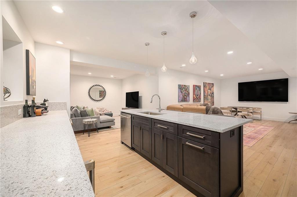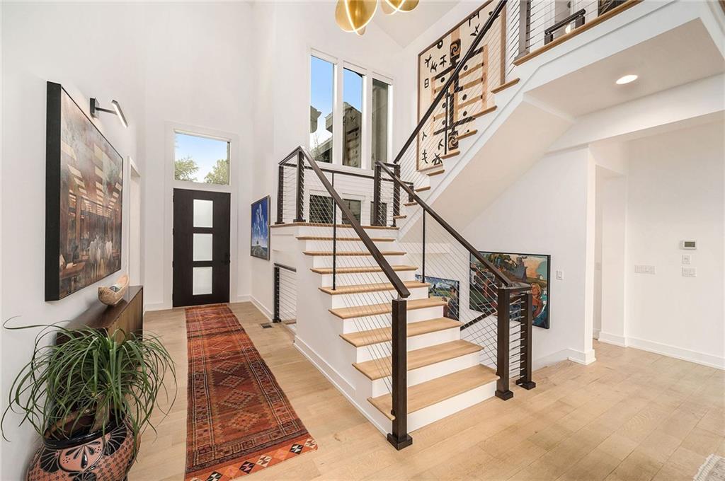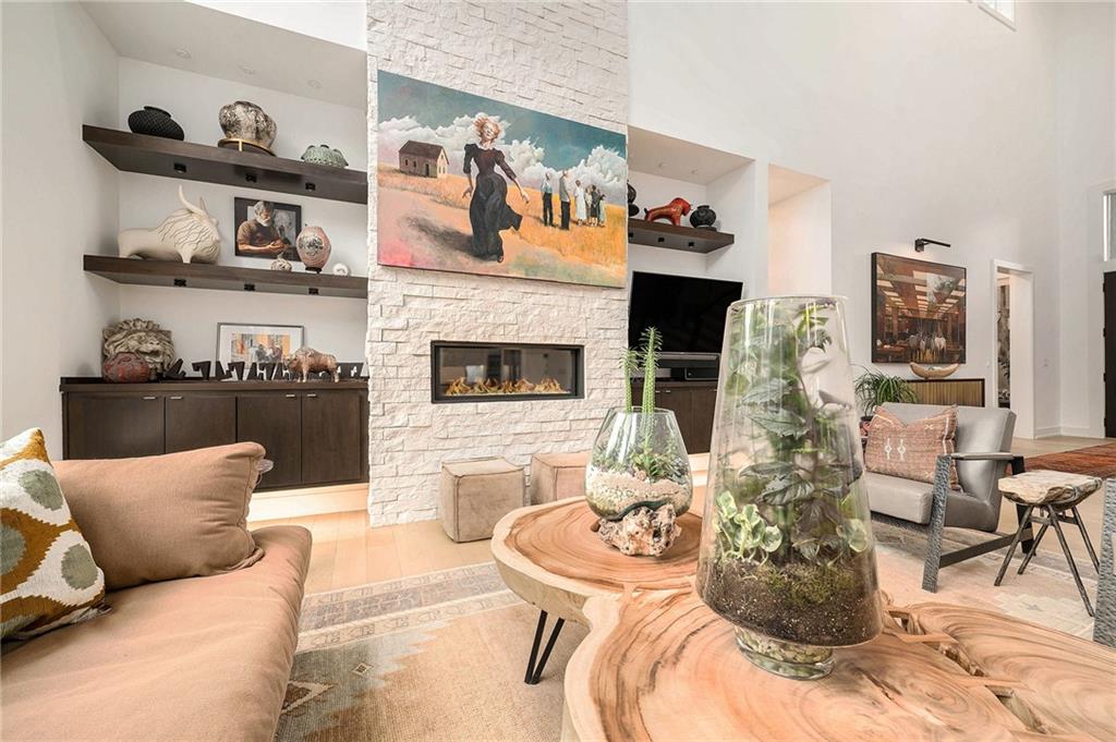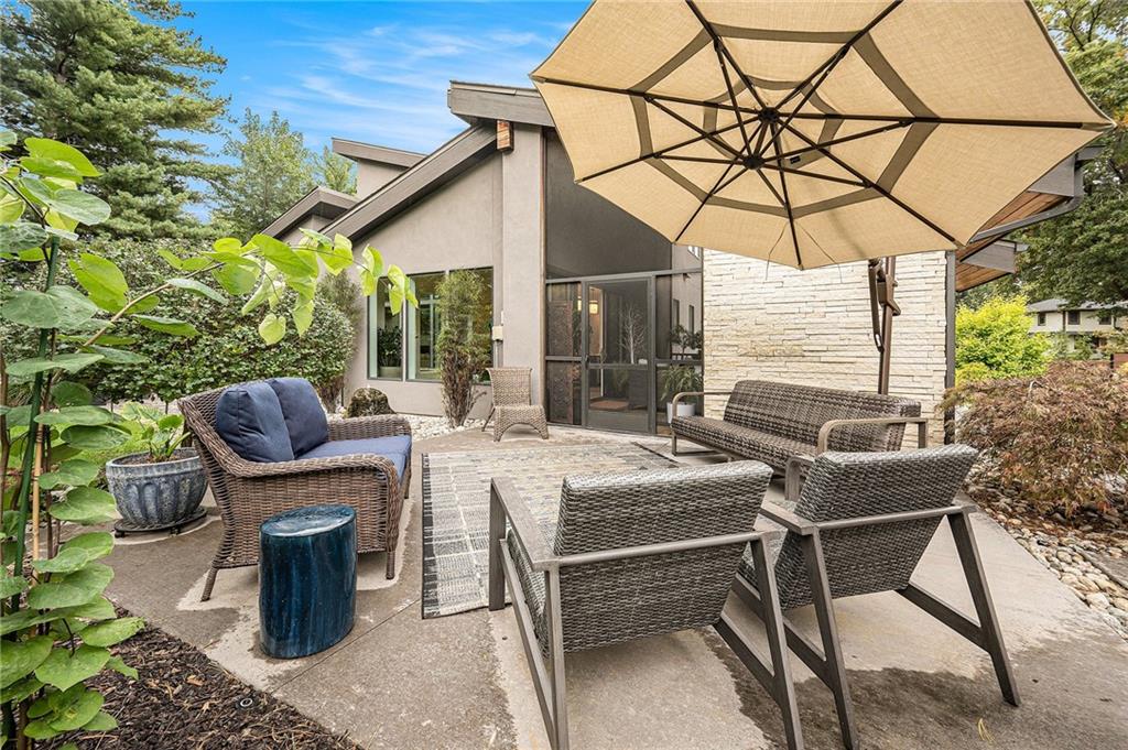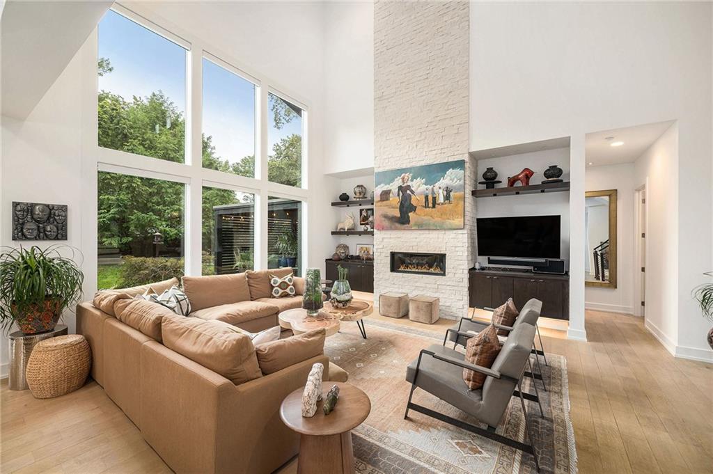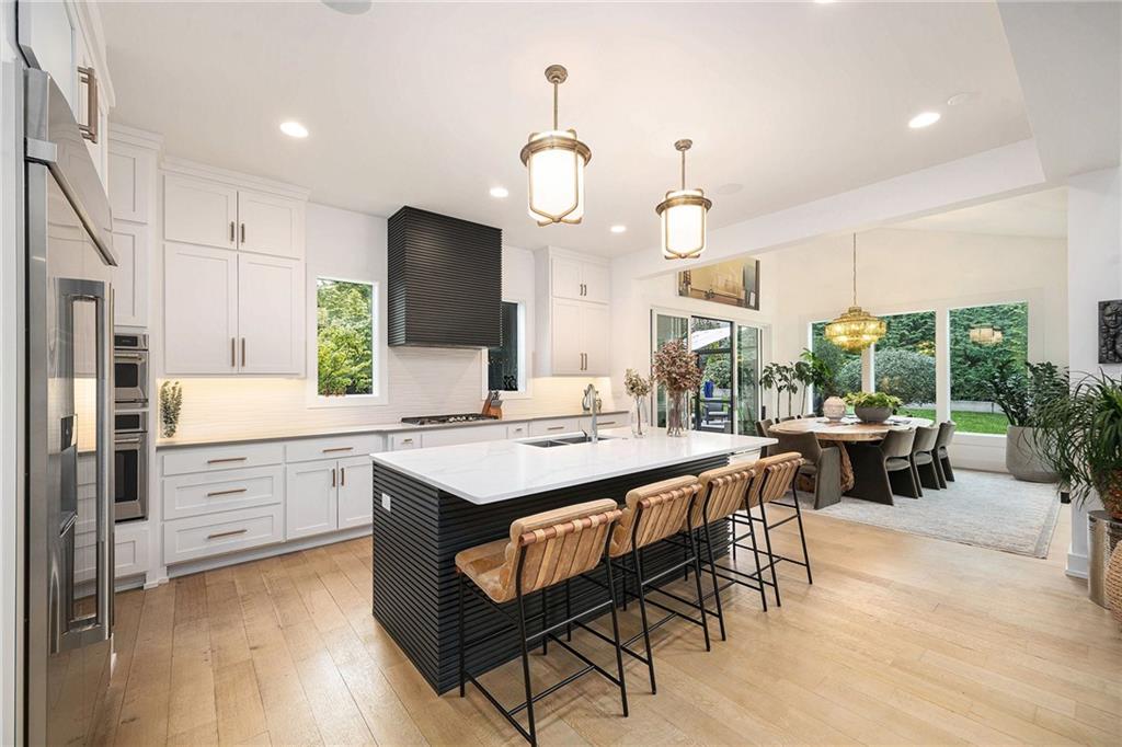 Experience the epitome of luxury living in this must-see, award-winning contemporary masterpiece meticulously crafted by Starr Builders. This extraordinary residence captivates with its striking architectural design, featuring rich IPE wood accents and elegant natural stacked stone that elevate its sophisticated curb appeal. Artfully landscaped front and back gardens create private, serene retreat environments, perfectly complementing the home's opulent exterior. Step into a breathtaking two-story entryway that welcomes you into an expansive great room flooded with natural light through soaring floor-to-ceiling windows, offering panoramic views of the meticulously designed surroundings. The great room is a true highlight, with a dramatic two-story modern gas fireplace adorned with exquisite white stacked stone, custom built-in shelving, and remote control shades. The gourmet kitchen is a culinary sanctuary, boasting top-of-the-line appliances, a state-of-the-art built-in refrigerator, and an expansive butler’s pantry complete with a wine chiller and ice machine. Double sliding doors lead to a screened porch, designed for seamless outdoor living, featuring a built-in gas grill, mini fridge, and a warming wood-burning fireplace. Primary suite is located on the main level featuring spa like bath and large custom closet. Step outside primary to a pergola that offers privacy for hot tub. Spacious dedicated office on main level, two ensuite bedrooms upstairs with generous walk-in closets, and a fully finished lower level with a media room, stylish bar with ice maker, mini fridge, dishwasher, and 4th bed and bath complete this masterpiece. Heated three-car garage with expansive windows. Located in the heart of Old Leawood, this residence is within walking distance of premier shops, grocery stores, upscale dining, and renowned schools—presenting an unrivaled opportunity to enjoy luxurious, effortless living in a highly coveted neighborhood. Endless upgrades!