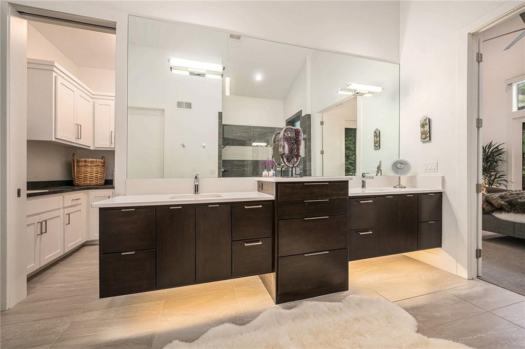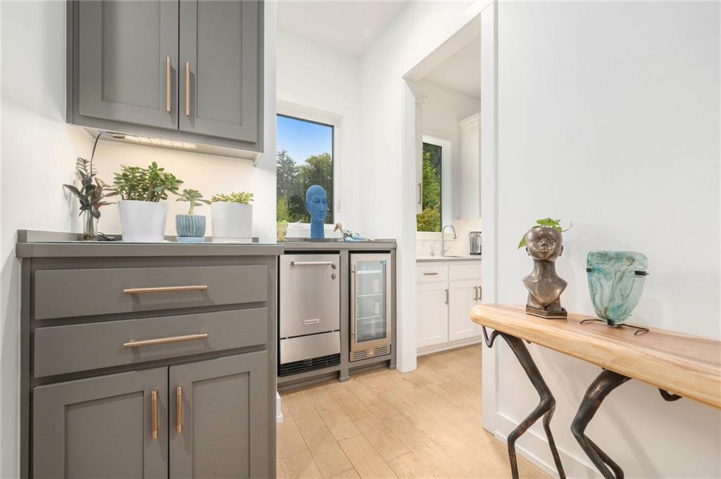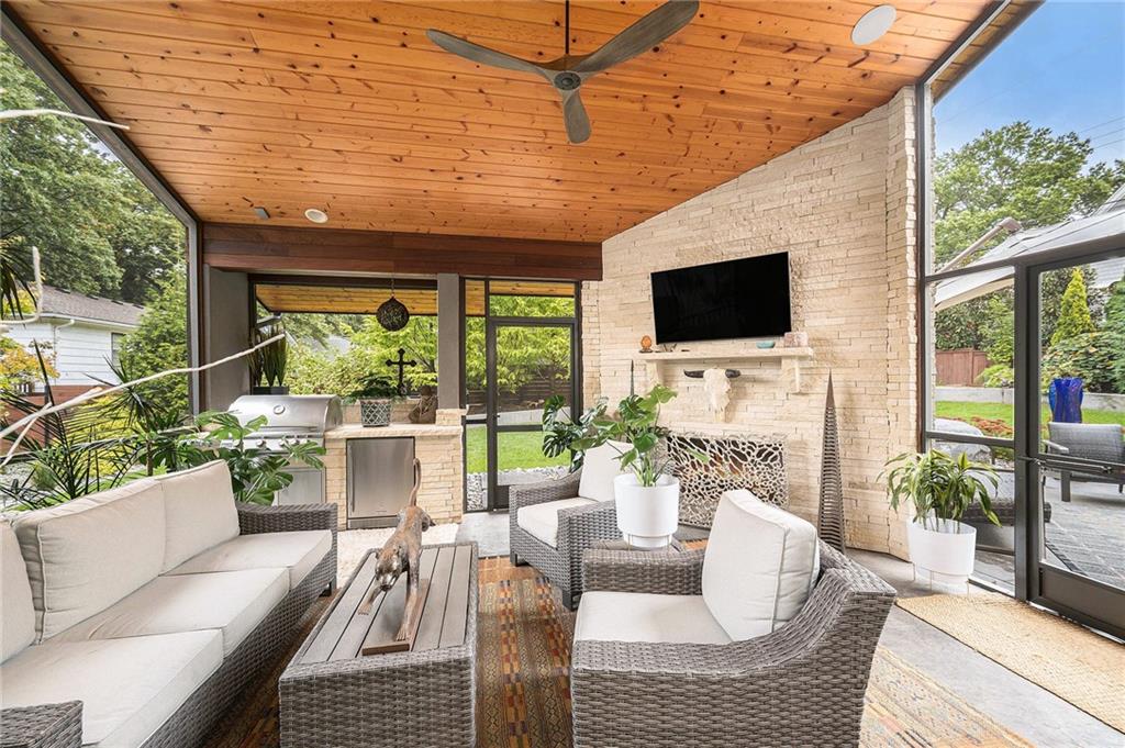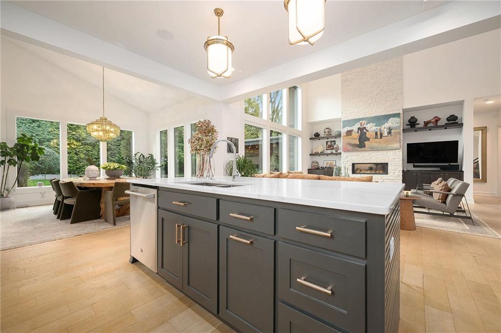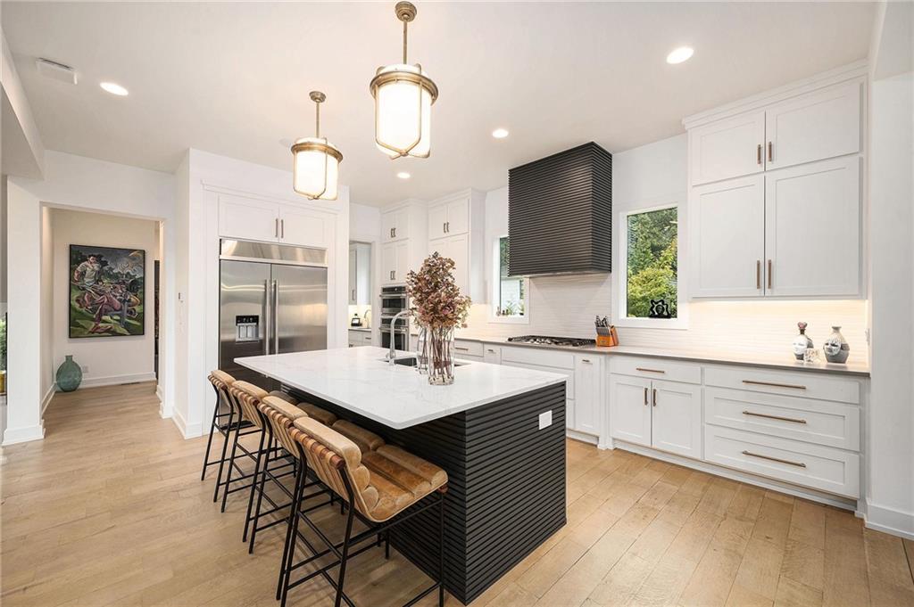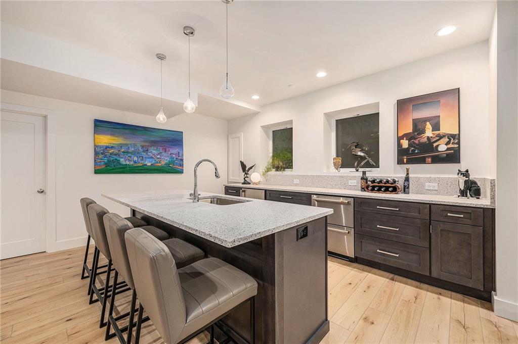 Experience the epitome of luxury living in this must-see, award-winning contemporary masterpiece meticulously crafted by Starr Builders. This extraordinary residence captivates with its striking architectural design, featuring rich IPE wood accents and elegant natural stacked stone that elevate its sophisticated curb appeal. Artfully landscaped front and back gardens create private, serene retreat environments, perfectly complementing the home's opulent exterior. Step into a breathtaking two-story entryway that welcomes you into an expansive great room flooded with natural light through soaring floor-to-ceiling windows, offering panoramic views of the meticulously designed surroundings. The great room is a true highlight, with a dramatic two-story modern gas fireplace adorned with exquisite white stacked stone, custom built-in shelving, and remote control shades. The gourmet kitchen is a culinary sanctuary, boasting top-of-the-line appliances, a state-of-the-art built-in refrigerator, and an expansive butler’s pantry complete with a wine chiller and ice machine. Double sliding doors lead to a screened porch, designed for seamless outdoor living, featuring a built-in gas grill, mini fridge, and a warming wood-burning fireplace. Primary suite is located on the main level featuring spa like bath and large custom closet. Step outside primary to a pergola that offers privacy for hot tub. Spacious dedicated office on main level, two ensuite bedrooms upstairs with generous walk-in closets, and a fully finished lower level with a media room, stylish bar with ice maker, mini fridge, dishwasher, and 4th bed and bath complete this masterpiece. Heated three-car garage with expansive windows. Located in the heart of Old Leawood, this residence is within walking distance of premier shops, grocery stores, upscale dining, and renowned schools—presenting an unrivaled opportunity to enjoy luxurious, effortless living in a highly coveted neighborhood. Endless upgrades!