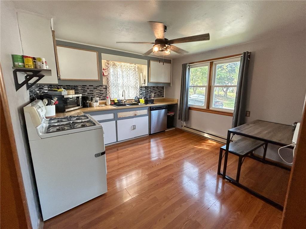 A cozy and affordable home in Trenton! This 1955 built home offers 2 bedrooms, 1 bathroom and 864 SQFT of living space. As you enter into the living room you will notice the large window, and open space. The kitchen offers a quaint area to sit a small table, or breakfast bar. Off the kitchen, there is a hallway with the washer and dryer. The layout of this home is efficient, with bedrooms being located on the east side of the home along with the full bath. Outside there is a private patio area, with covered walkway to the detached garage. There is also a second, larger garage with concrete floor. Convenient location just off NCMC campus! Come take a look today!