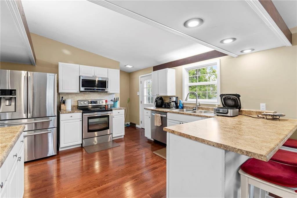 Charming ranch style home with great bones and key updates! This 1300 square foot floor plan offers 3 bedrooms, 1.5 baths, vaulted ceilings in the main living area with an exposed beam and a cozy gas fireplace. The kitchen is fitted with sleek white cabinets, stainless appliances, and beautiful wood flooring. Other updates and features include a newer metal roof, fresh exterior paint, dual pane insulated windows, and a high efficiency HVAC system. The 2-car garage is attached by way of a breezeway and the lot boasts nearly 1 acre of space. If all of this wasn't enough, this property is conveniently located across the street from the city park and just down the road from Carrollton Schools.