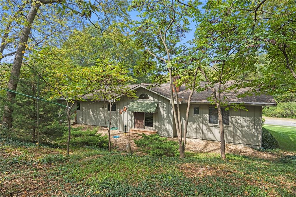 Welcome to this beautifully maintained one-owner ranch nestled in one of Lawrence’s most desirable neighborhoods. This thoughtfully cared-for 2-bedroom, 2-bath home offers easy one-level living surrounded by mature trees and peaceful, wooded views. Inside, you’ll find soaring ceilings and large picture windows that fill the home with natural light. The spacious living room features a brick fireplace with built-ins, while the adjoining dining area overlooks the private backyard. The kitchen retains its timeless wood cabinetry and offers a great layout with ample storage and counter space. Both bedrooms are generously sized, and the primary suite includes an en-suite bath and great closet space. Recent maintenance updates—including cleaned ductwork and attentive care—make this home move-in ready. Situated on a quiet street with a two-car garage and lush landscaping, this property perfectly balances comfort, convenience, and classic charm—all just minutes from KU, downtown Lawrence, and local parks.