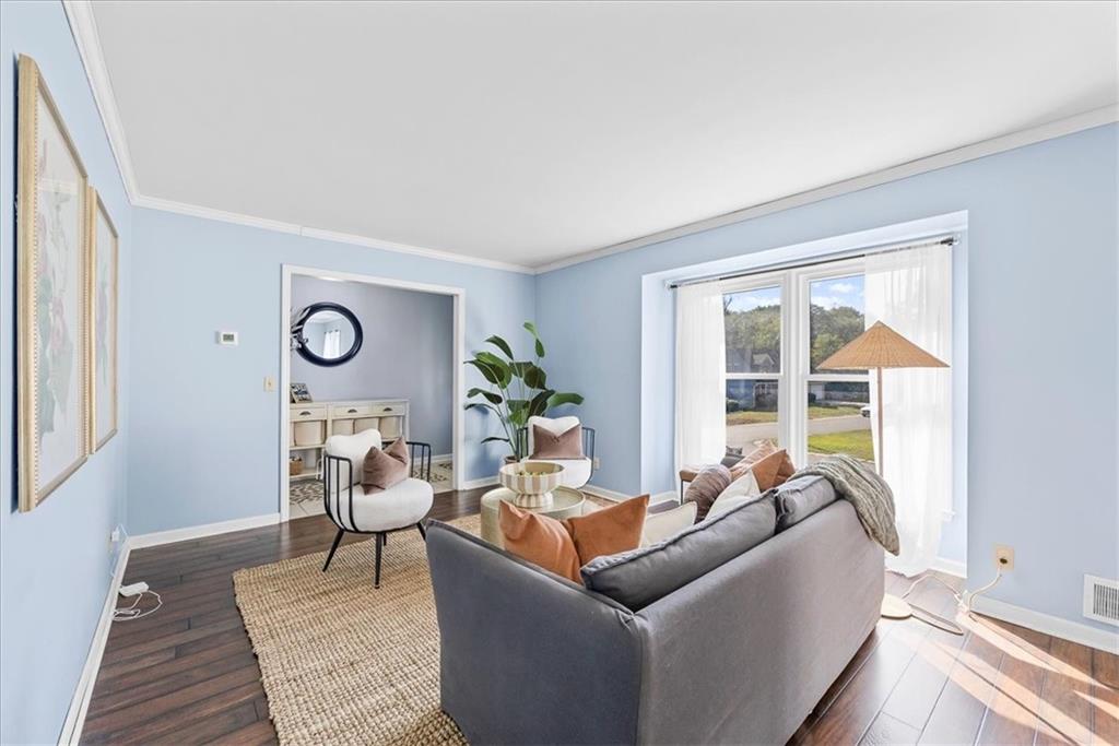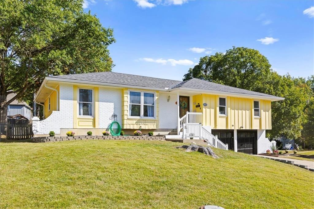 Perched on the corner of a quiet street, this raised ranch greets with fresh landscaping, new roof and low maintenance vinyl windows. Once inside, find a bright and airy formal living/dining area that are perfect for hosting those holiday gatherings. Speaking of gathering, the updated kitchen makes entertaining a breeze with open sight lines into the family room, updated cabinets, solid surface countertops and a gas stove for the home chef. The kitchen also offers a breakfast bar overlooking the large deck and fenced yard. The family room has a cozy hearth and hardwood floors add to the warmth. There are two sizable secondary bedrooms and an updated guest bath on the way back to the primary wing. Once inside the primary bedroom there is a small reading nook and access to a large main-level laundry room (a rare find in this area). A walk-in closet and updated en-suite add to the luxurious feel of the bedroom, and the wall of windows and vaulted ceilings truly make this an oasis. On the lower level there is partial finish with drywall and plenty of space for a rec room with cabinets in place and a half bath for guests. There is also a large storage room and access to the two car garage on this level. Nestled into quiet Red Bridge Meadows, this home offers a suburban feel with the ability to walk to neighborhood parks, grocery store and KC favorites like Barrio. Come experience life in one of south KC's most sought after areas!