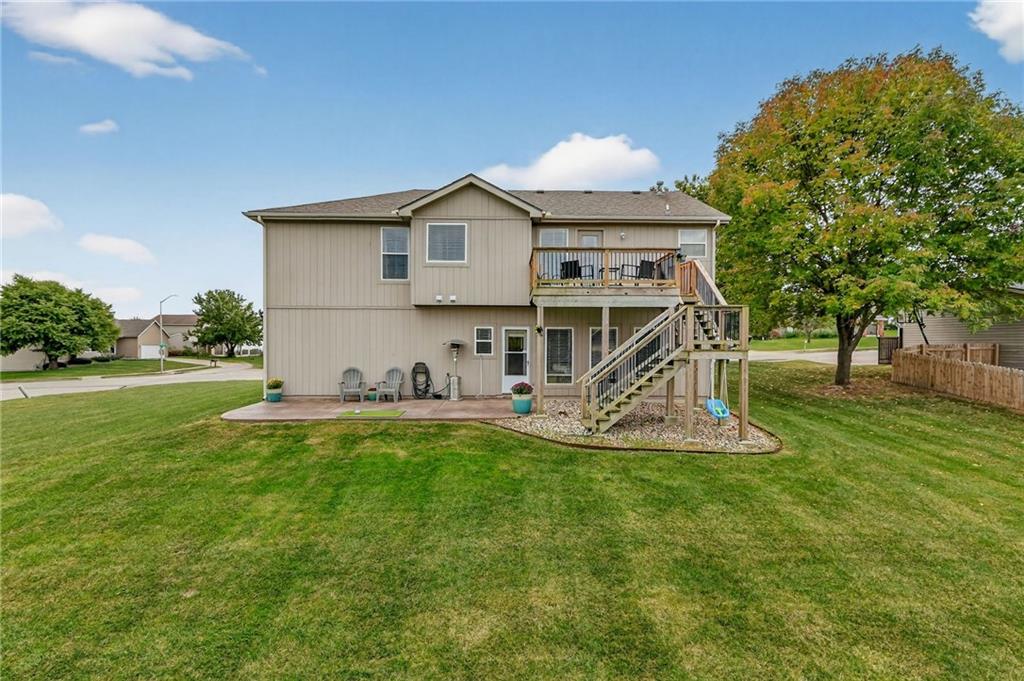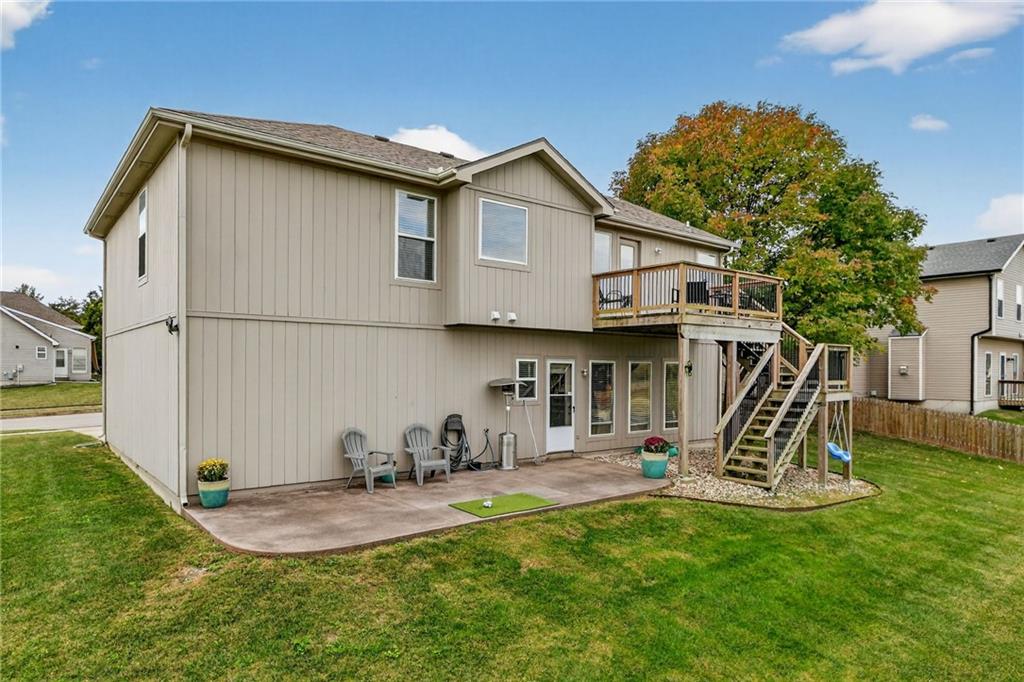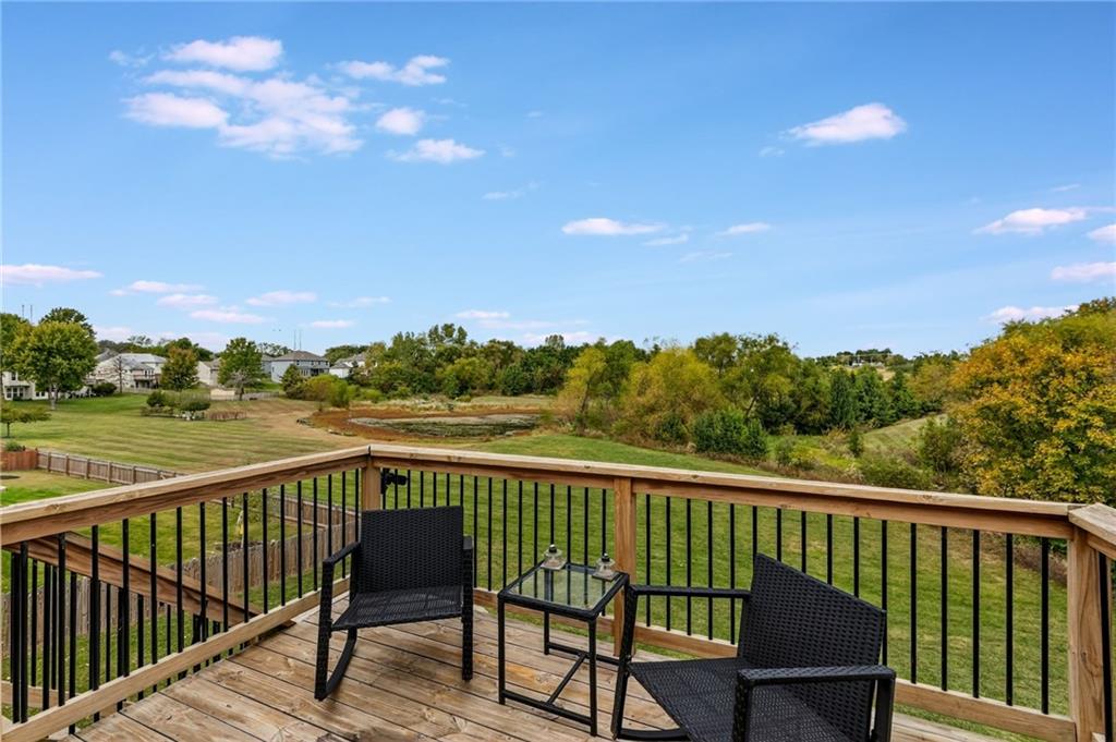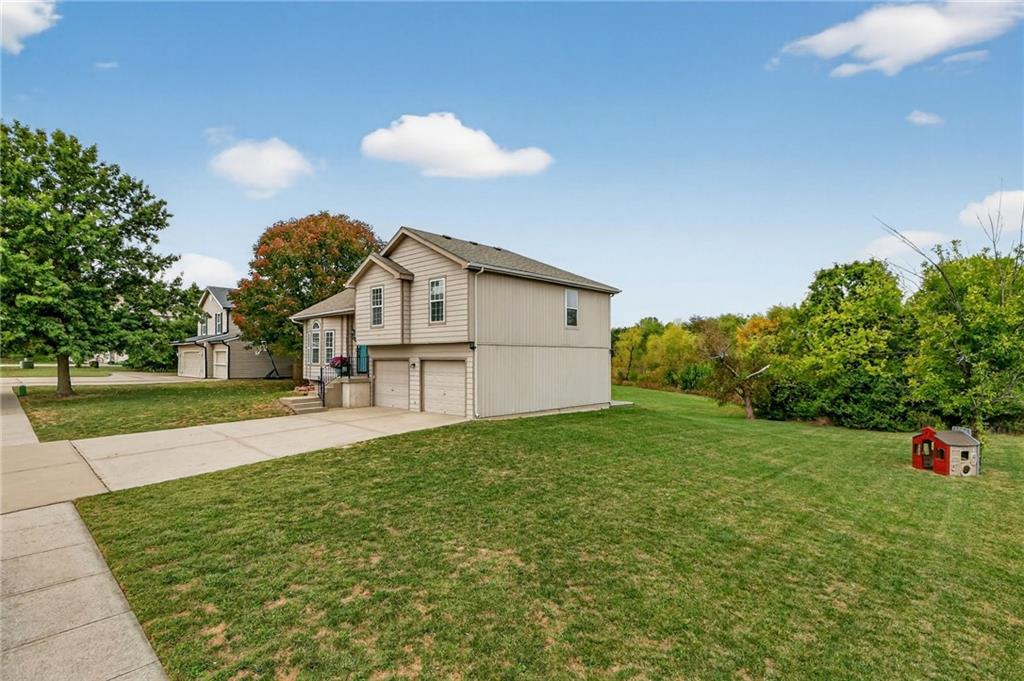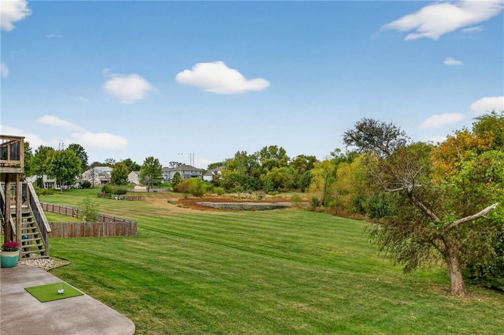 This stunning front-to-back split offers incredible space and comfort with two large living areas, vaulted ceilings, and an open-concept feel throughout. The updated kitchen features granite counter tops and flows seamlessly to the back deck—perfect for relaxing and enjoying the peaceful pond view! The primary suite is a true retreat with a spacious layout, two closets, and an en suite bath complete with duel sinks and a jetted tub. Laundry is conveniently located on the bedroom level, along with two additional bedrooms. The finished walk-out basement provides plenty of natural light and includes a half bath—ideal for entertaining or a second living area. Don’t miss the additional sub-basement, offering exceptional storage space. Car enthusiasts and hobbyists will love the 28-foot-deep oversized garage, perfect for a boat, project car, workshop, or extra storage. Located just minutes from highways 152, 435, and 169, this home offers easy access to everything!