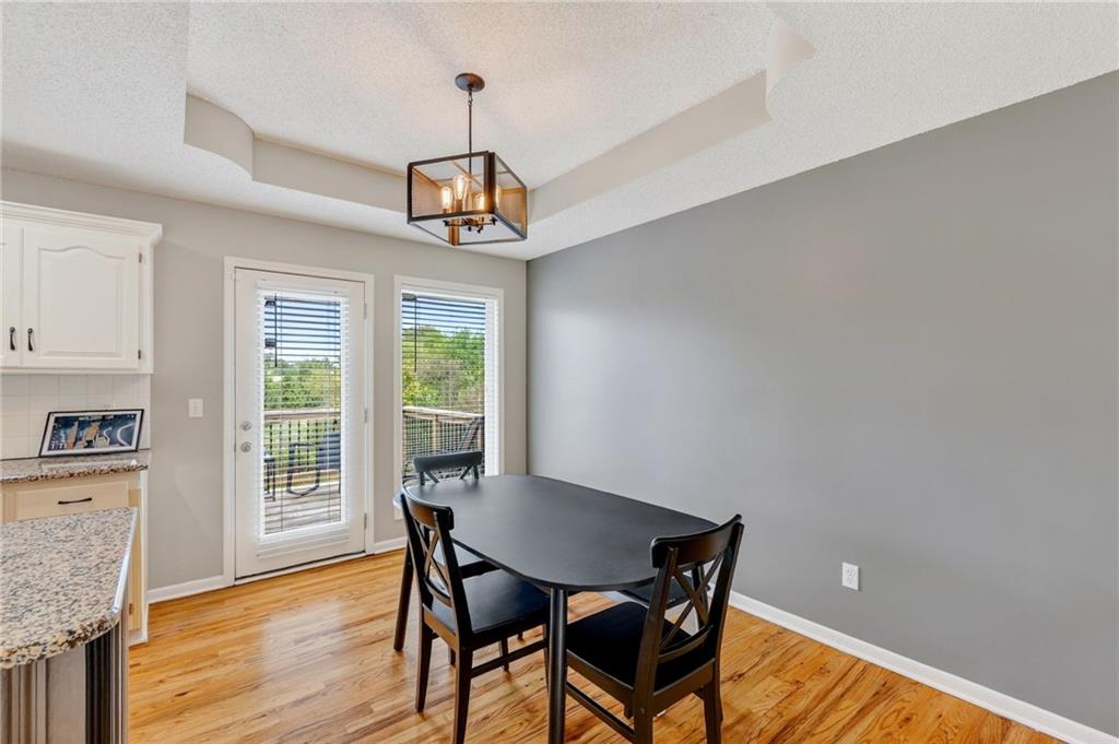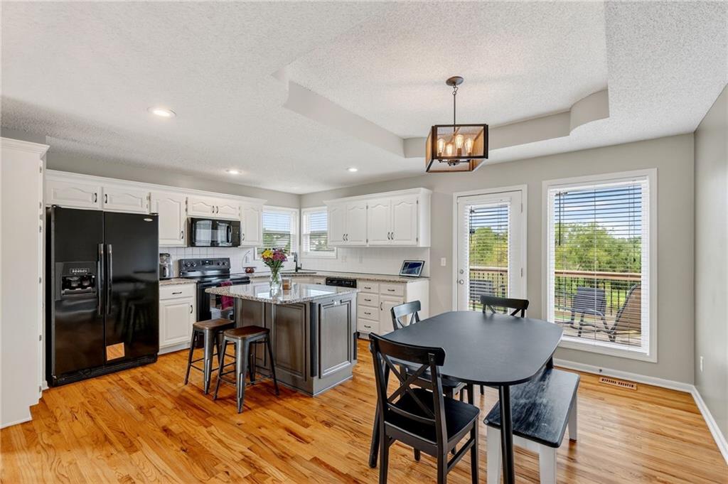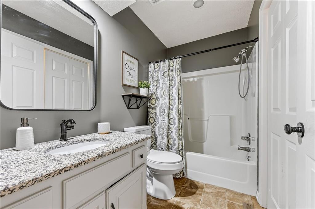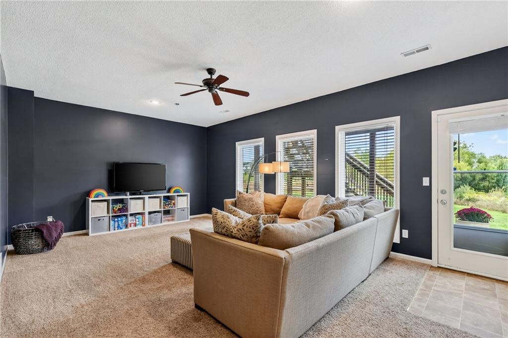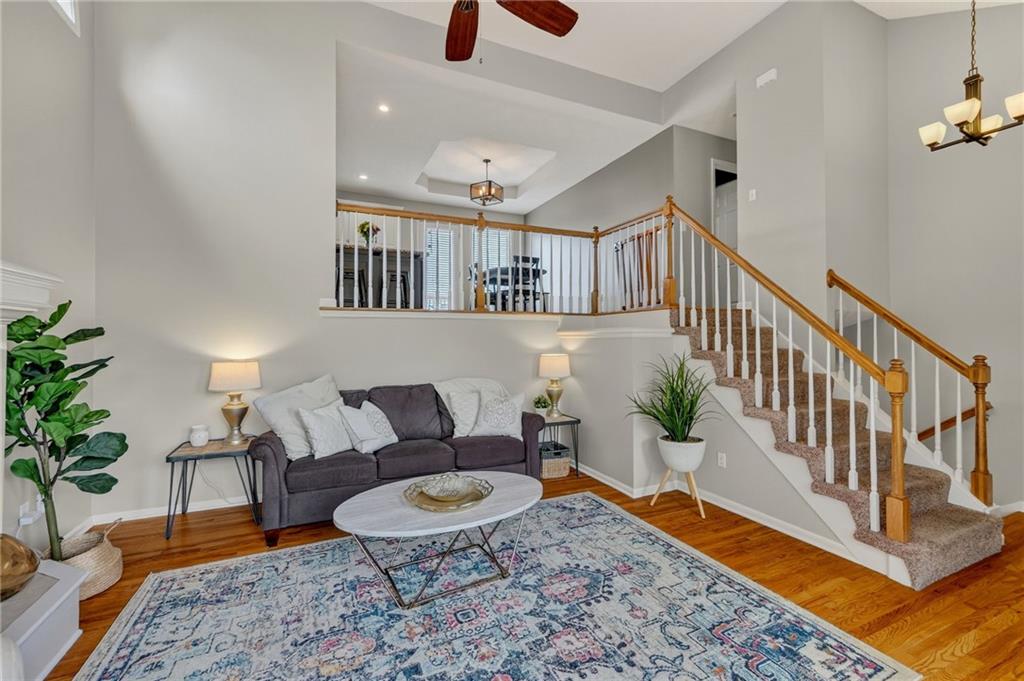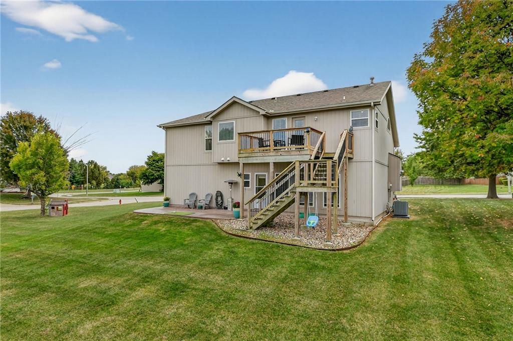 This stunning front-to-back split offers incredible space and comfort with two large living areas, vaulted ceilings, and an open-concept feel throughout. The updated kitchen features granite counter tops and flows seamlessly to the back deck—perfect for relaxing and enjoying the peaceful pond view! The primary suite is a true retreat with a spacious layout, two closets, and an en suite bath complete with duel sinks and a jetted tub. Laundry is conveniently located on the bedroom level, along with two additional bedrooms. The finished walk-out basement provides plenty of natural light and includes a half bath—ideal for entertaining or a second living area. Don’t miss the additional sub-basement, offering exceptional storage space. Car enthusiasts and hobbyists will love the 28-foot-deep oversized garage, perfect for a boat, project car, workshop, or extra storage. Located just minutes from highways 152, 435, and 169, this home offers easy access to everything!
