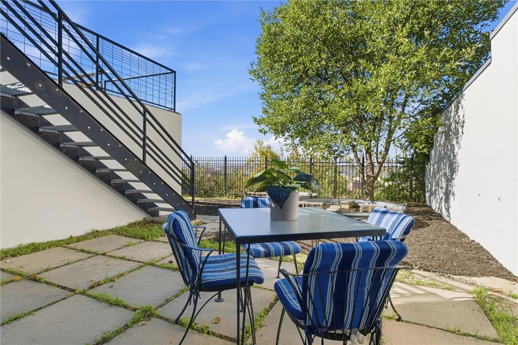 One of the most iconic Westside homes located on a cul-de-sac with amazing views. Cul de sac gives you plenty of privacy from local traffic and you have 3 city parks within 1/2 mile and no homes to the south. Situated on one of the highest points in Kansas City with amazing views. Enjoy sunsets on the back deck and early mornings under the pergola in the front. Exquisite custom ironwork from Austin Ironworks encase the outside perimeter of the property and you will find unique and amazing ironwork throughout the home. Heated radiant floors throughout the home and garage offer a level of comfort in the most severe winters. The garage has dual doors on the front and back which can open up to the outside area for an impressive entertainment area. Artistic design throughout the home includes a light fixture collaboration between Austin Ironworks and Dierk Van Keppel, a local glass artist. On the second floor you will find a steel and glass door designed by Austin Ironworks and Kathy Barnard, a local glass designer. Second floor family/game room with bar makes entertaining a breeze. Take the custom made spiral staircase to the "Eagles Nest" and exit to the roof for the best views of airshows, fireworks, sunsets, etc. This home has a custom designed garage AND a carport perfect for storing a camper or boat. Located conveniently to major highway access AND within walking distance to the eclectic shops and restaurants on the Westside AND the Kauffman Performing Arts Center.