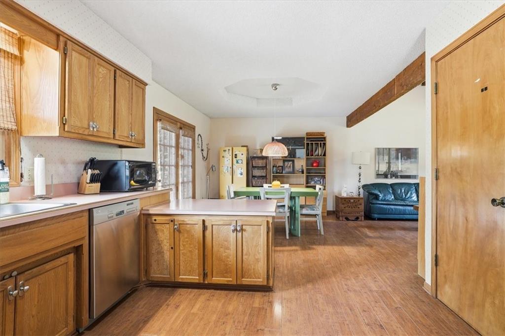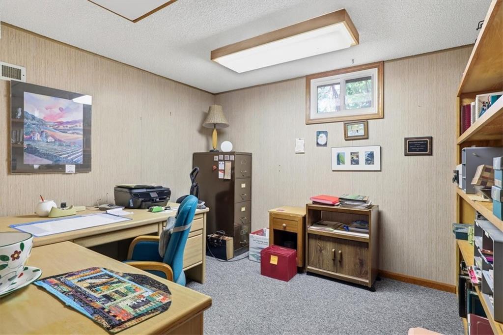 Custom-Built, One-of-a-Kind Home in Pleasant Valley, Missouri! Nestled quietly off the beaten path, this beautifully maintained 1986 custom-built home offers peaceful, tranquil living with all the convenience of town nearby. You may even do a double take—this hidden gem isn’t located on the main road! Look for the first sign… and then the second—then you’ll know you’ve arrived. Originally designed as a two-bedroom, this home was thoughtfully modified to feature a spacious primary suite upstairs, enhanced with updated windows throughout for added efficiency and natural light. The lower-level office could also serve as a non-conforming bedroom with access to the double car garage as egress. Front door and front porch face North.