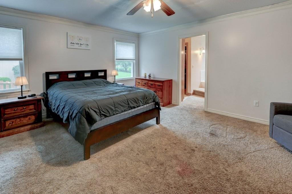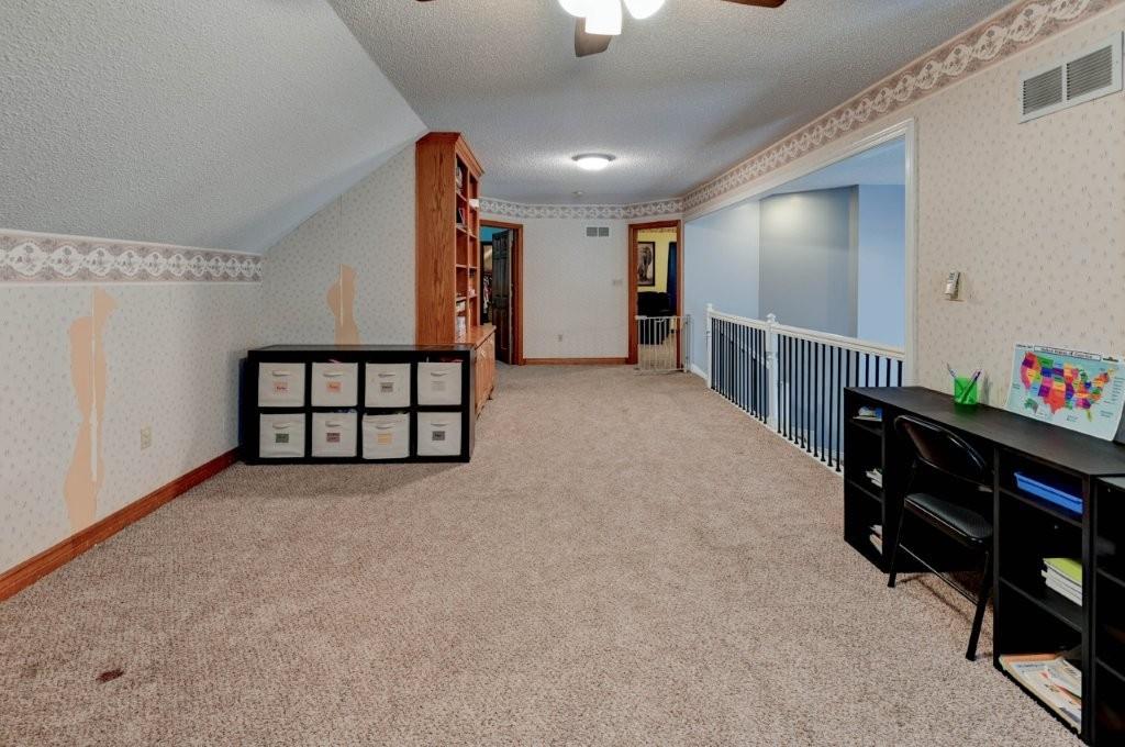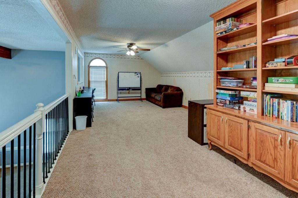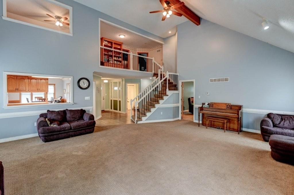 Lots of space for the money in this well-cared-for custom home. Main-level primary bedroom. Open and vaulted great room with space for formal dining near kitchen. Large eat-in kitchen with access to deck. Low-maintenance vinyl siding, covered front porch, and deck off great room. Finished walkout lower level includes an office, bar area, and a huge recreation room. Upstairs features a loft living area and two spacious bedrooms, each with large walk-in closets. Unfinished room in basement offers great storage or workshop potential. Convenient location near schools, shopping, I-70, and medical facilities.