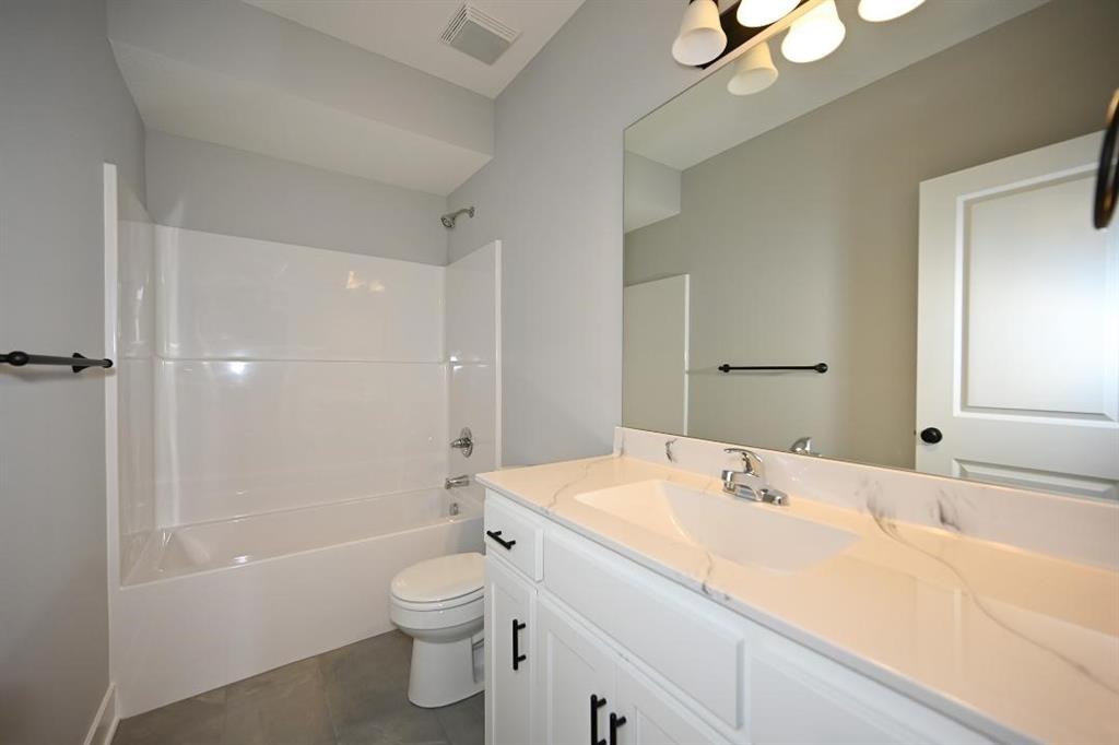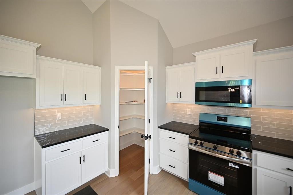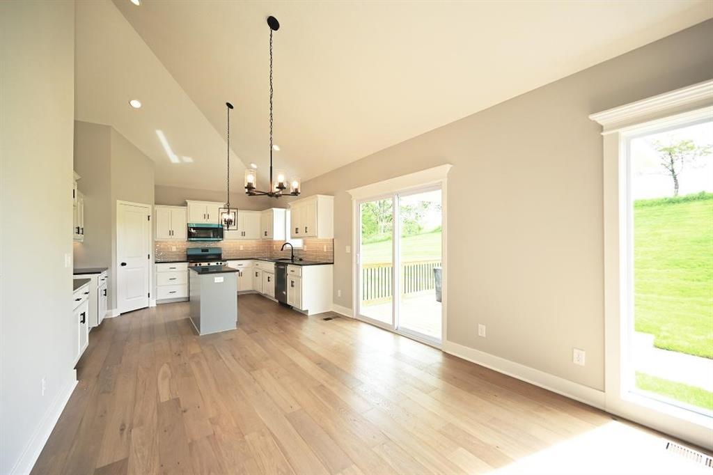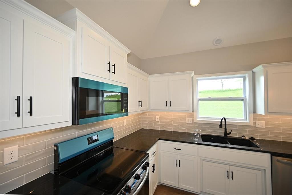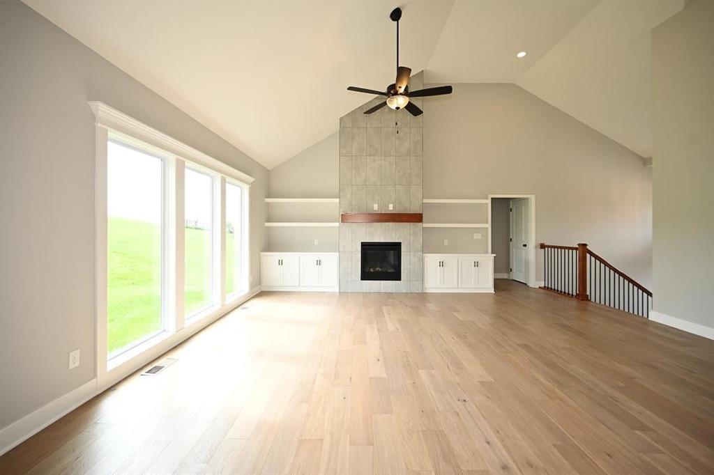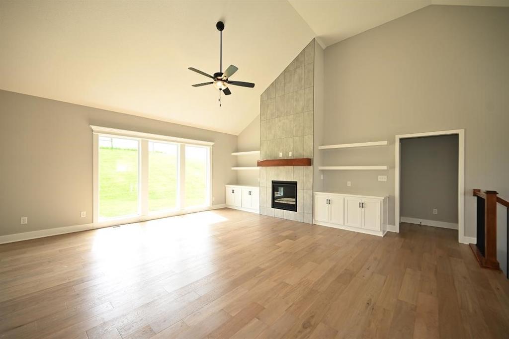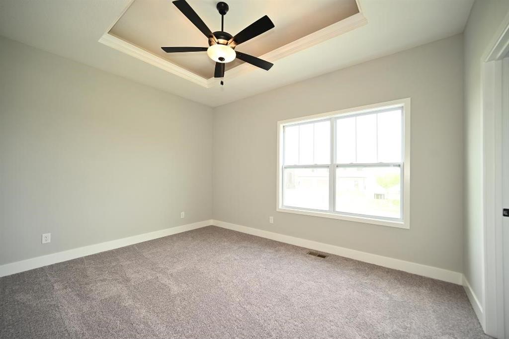 This beautiful home features a range of custom amenities that enhance both functionality and style. The heart of the home features a stunning kitchen with custom white cabinets, a spacious pantry, and an inviting island topped with gorgeous granite. Modern stainless steel appliances add both style and utility, while the covered deck, complete with a ceiling fan, provides a perfect outdoor stocked lake for fishing. The great room boasts LVP flooring throughout, complemented by a beautiful stone fireplace creating a cozy and elegant focal point. The laundry room is efficiently designed with tile flooring and custom cabinetry to keep things organized. The home includes two bedrooms with carpet, each featuring tray ceilings and ceiling fans for added comfort. The guest bathroom is stylishly designed with tile flooring and a tub, ensuring convenience for visitors. The master suite is a true retreat, featuring plush carpet and a spacious walk-in closet. The master bathroom boasts custom cabinets, a luxurious jetted tub, double vanity sinks with sleek black faucets, and a huge tile shower for a spa-like experience. The lower level includes an additional bedroom with carpet and a ceiling fan, along with a full bathroom featuring tile floors and a tub. The home is equipped with ample recessed (can) lighting throughout, showcasing its thoughtful design. Additional highlights include an oversized three-car garage and eye-catching stone accents on the front of the home, making it not only functional but also visually appealing. This property combines elegance, comfort, and practicality, making it a fantastic place to call home! PHOTOS ARE SIMULATED MORE TO COME, LAKE IS STOCKED.