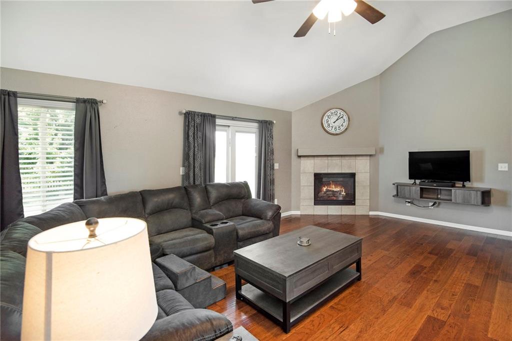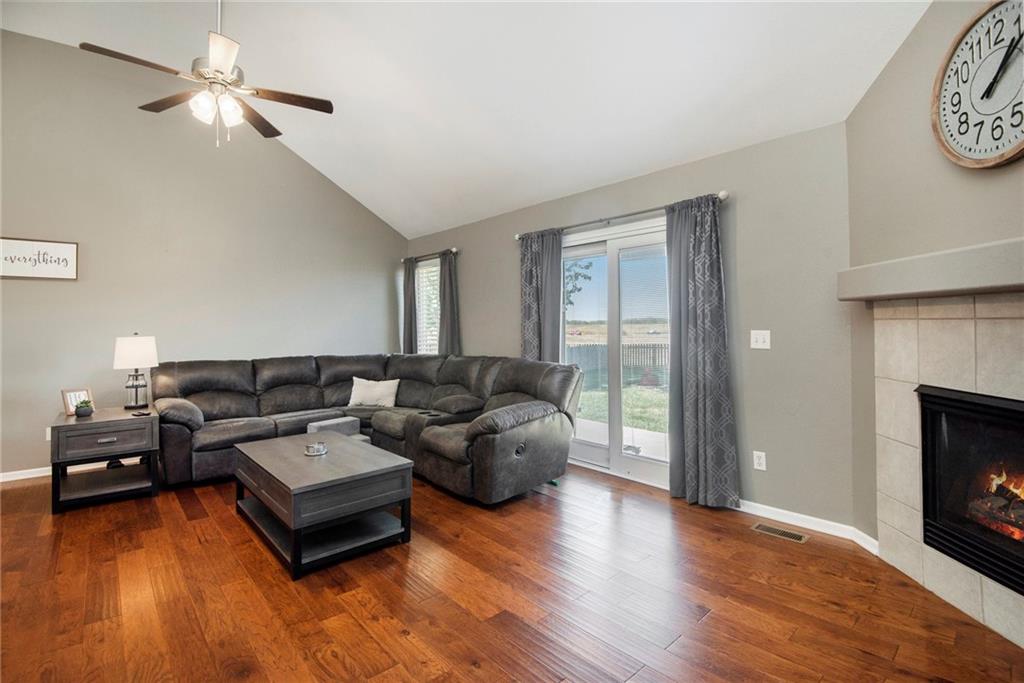 Stunning split-level home just minutes from Smithville Lake! Enjoy a large, fully fenced backyard and beautiful hardwood floors that flow through the living room and kitchen. The living area features a cozy corner fireplace, while the spacious kitchen offers painted cabinets, updated appliances, vaulted ceilings, and a bright daylight window over the sink. The primary suite includes a raised ceiling, walk-in closet, and private bath. Downstairs, you’ll find a finished basement with a family room and plenty of storage. Step outside to the large patio—perfect for grilling and entertaining. Don’t miss out on this one!