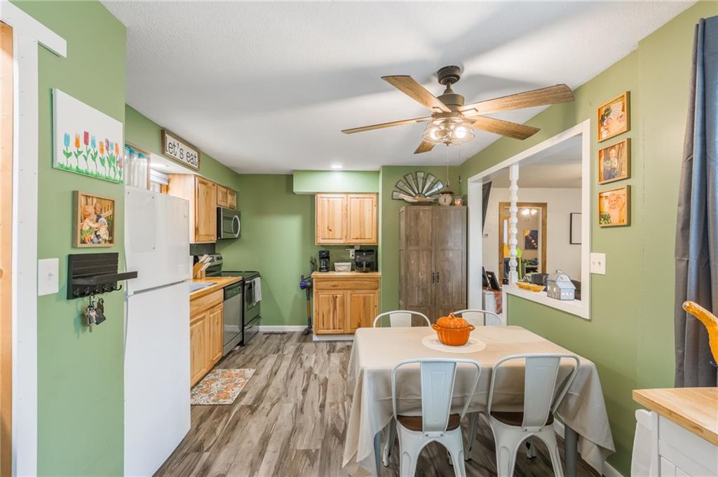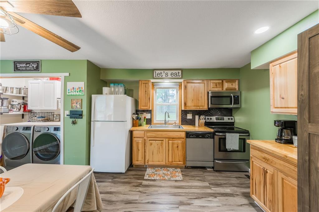 Charming 3-Bedroom Home with Modern Updates and Spacious Yard Welcome to this inviting 3-bedroom, 1.5-bath home that perfectly blends warmth, comfort, and modern updates. Step inside to a bright and cozy living room featuring a wood-burning fireplace with a brick surround—the perfect spot to unwind after a long day. The updated kitchen offers plenty of charm with natural wood cabinetry, updated appliances, and a cheerful, open layout with eat-in dining. The adjacent laundry area adds convenience and functionality to your daily routine. Enjoy the beautifully refreshed bathroom and comfortable bedrooms that make this home move-in ready. Outside, the property offers a detached garage/shop and a spacious backyard, ideal for outdoor gatherings, gardening, or simply relaxing. With thoughtful updates throughout and a welcoming atmosphere, this home is ready for you to make it your own.