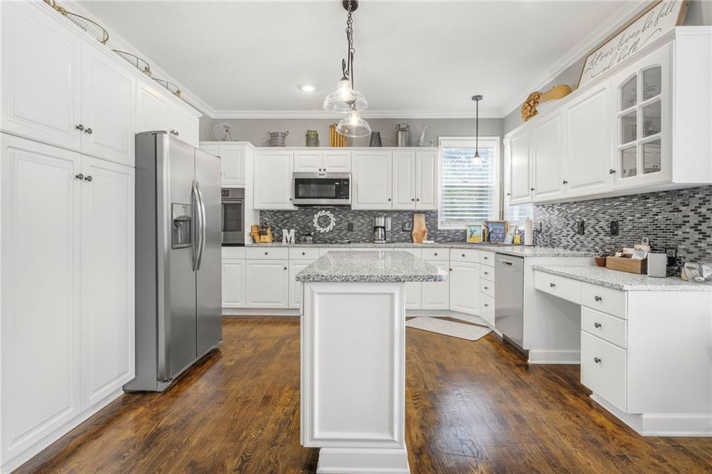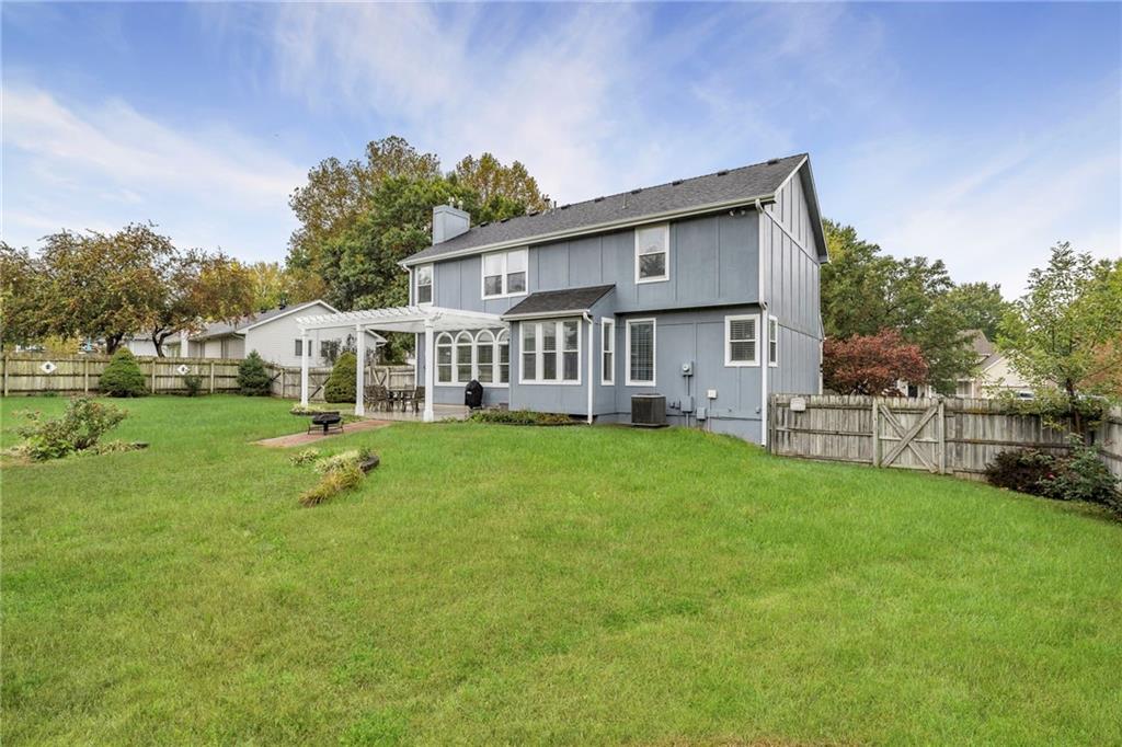 Shawnee Show-Stopper! This stunning home truly has it all — with updates and upgrades everywhere! Beautifully refinished dark-stained hardwood floors grace the main level, while newer carpet adds comfort upstairs. The thoughtful layout includes bedroom-level laundry and a finished daylight basement complete with a wet bar — perfect for game days or movie nights. Step outside to your private half-acre lot, designed for entertaining! Enjoy the pergola, patio and firepit area — plus a storage shed and privacy fence. The charming front porch is ideal for relaxing or greeting neighbors. An impact-resistant roof and new gutters were installed in spring 2024, providing added durability and peace of mind for years to come. Tucked away on a quiet cul-de-sac, yet just minutes from K-7, shopping, dining, grocery stores, services, the post office, and the library — this location can’t be beat.