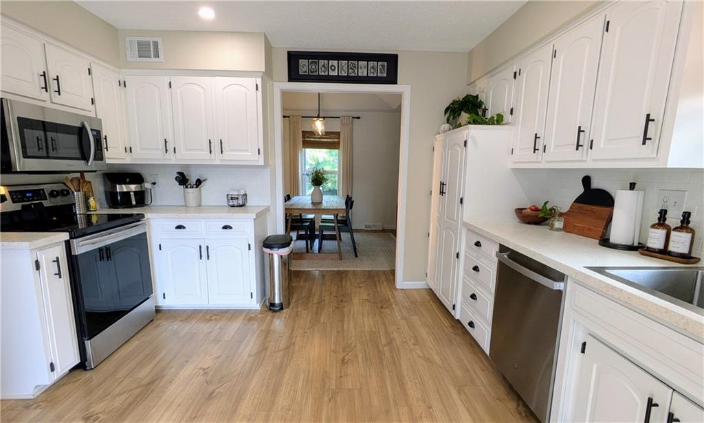 This Independence ranch, located in the Blue Springs School District, is tucked away in a quiet pocket neighborhood of two cul-de-sacs. Updated and well-maintained, it has a bright and flowing layout that features a vaulted ceiling and a huge kitchen with tons of natural light. The two primary bedrooms are spacious and each includes a full en suite bath. A third bedroom offers additional living space, or a perfect spot for an office, study or studio. The finished basement features a third full bath, a large family room, and a bonus room that could be used for many different purposes. A secluded back yard offers a lovely patio and lots of fenced space for relaxing, playing and gardening. This home is a great find for the price and should be on your list to check out!