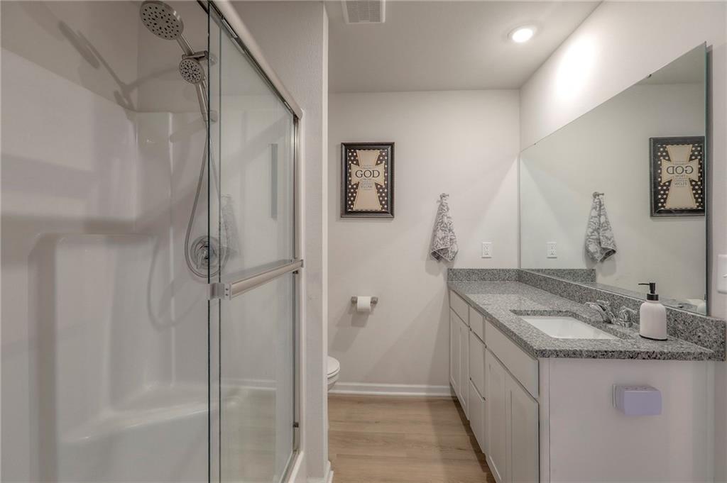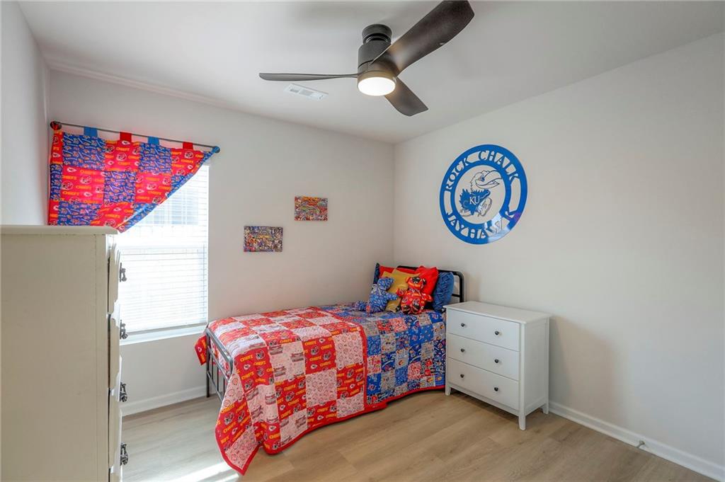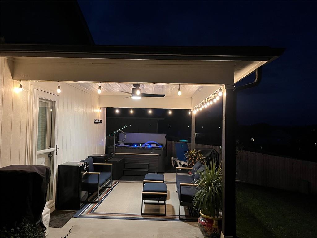 Deal of the year! The ultimate outdoor backyard oasis! **Located just 12 minutes from the Legends.**. Numerous improvements added after home was purchased and numerous upgrades added when built! **Covered back porch**. Incredible landscaping including all new front landscaping, rock path from driveway to side gate, and three raised beds, trees, and rose garden in the backyard. Six ft cedar fence with double-boarded interior finish on fence. **Five new ceiling fans operated with remote control.** Decorator blinds on all windows and upgraded storm doors (with glass and screen options) on both doors. Enjoy the ultimate outdoor backyard oasis under your covered patio surrounded by beautiful landscaping. **And don't forget, the builder warranty is in place until May 2026.**