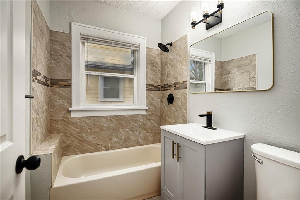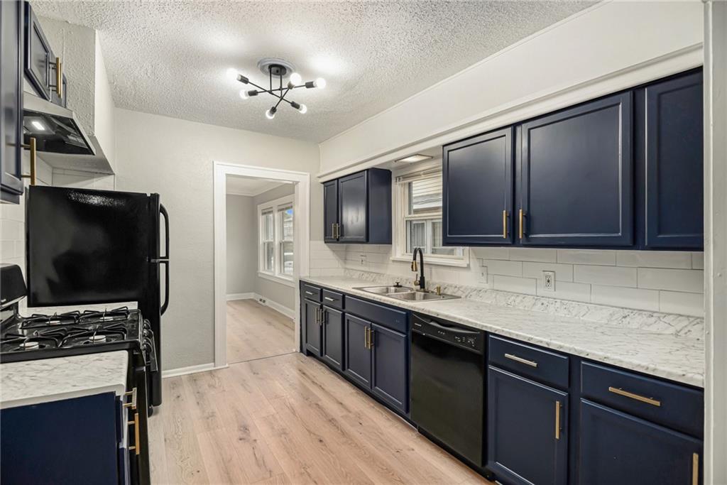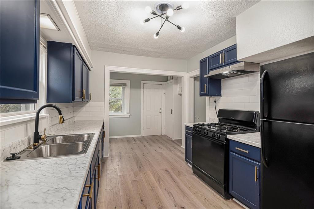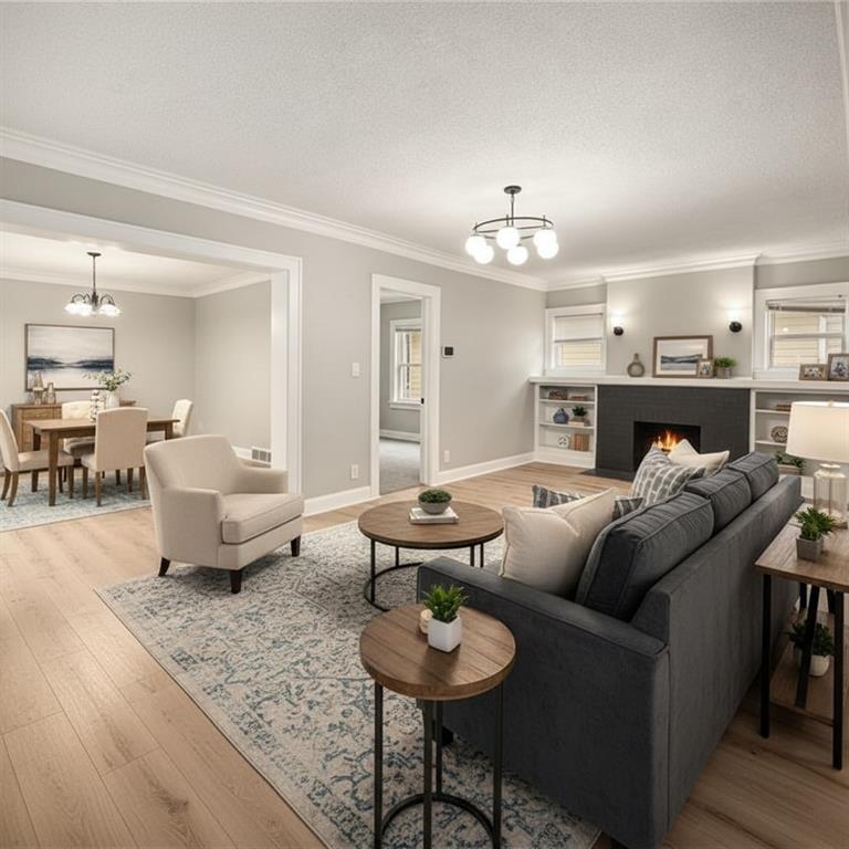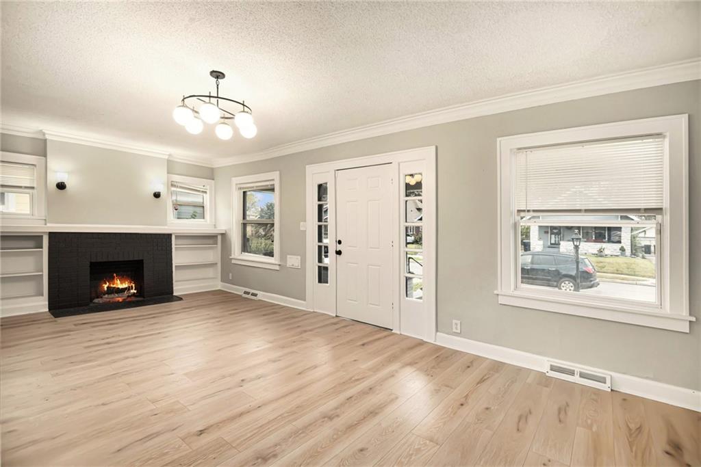 Super cute and full of character, this beautifully updated three bedroom, two bath bungalow offers the perfect blend of charm and modern style. Enjoy a welcoming covered front porch and a detached one car garage. Inside, you'll find stylish modern flooring throughout, a spacious family room featuring a cozy fireplace and built in shelving, and updated bathrooms with detailed tile work and contemporary vanities. The kitchen stands out with sleek countertops, accented cabinetry, and modern finishes. Abundant natural light pours through the many windows, enhancing the home's warm and inviting feel. The flat, level backyard provides plenty of space to relax or entertain. Conveniently located less than 15 minutes from the Country Club Plaza and downtown, this home is ideal for first time buyers or investors!