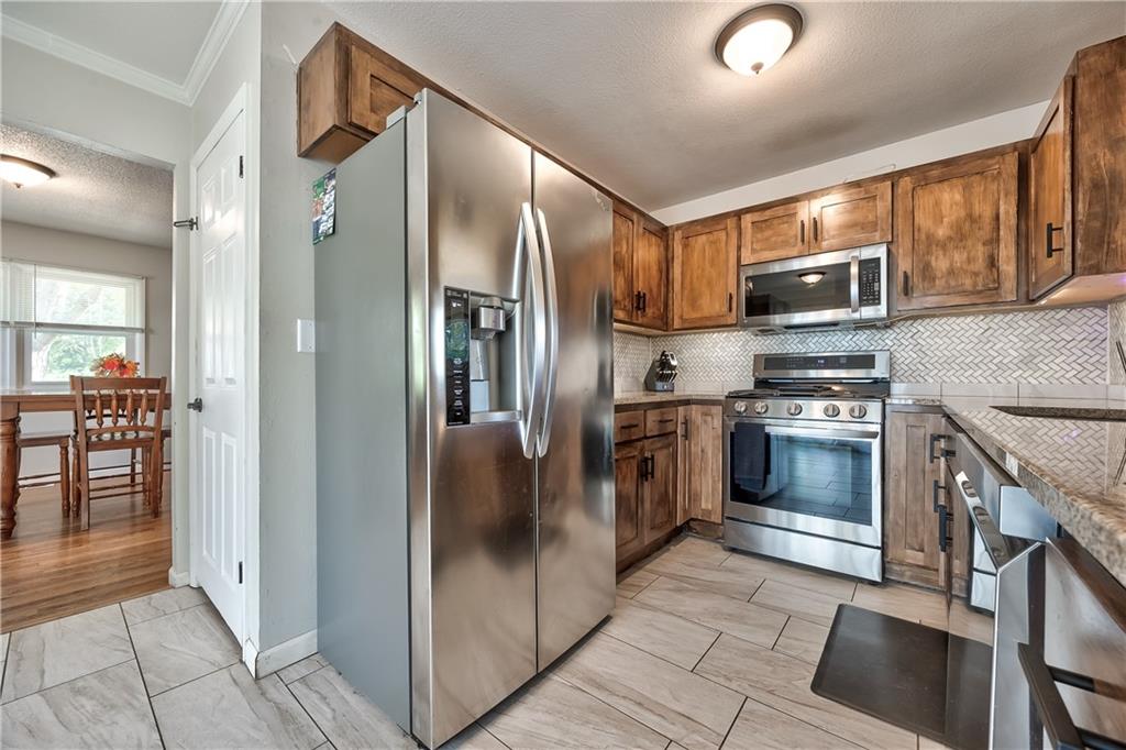 Welcome to this adorable, updated home in the heart of Bonner Springs! This fantastic 2 bedroom, 2 full bath home features an expansive garage that could be used as a 2 car tandem garage. There is so much space for cars, toys, storage and more! Don’t let the size of the front fool you either! This home has so much living space including a huge, vaulted family room with stone fireplace – perfect to cuddle up next to or read a book on a cool fall evening. The family room walks out to a covered deck great for all of those fall game day BBQ’s. There are endless possibilities with the formal dining room and/or living room just off the entry. The updated kitchen features recently stained cabinets, granite countertops, a modern tile backsplash and stainless steel appliances. Brand new finished lower level with recreation room/additional family room and full bathroom...all featuring new LVP flooring. Brand new exterior paint. Newer A/C, newer electric panel and thermal windows. Located just minutes from charming downtown Bonner Springs – close to schools, local dining, shopping and the vibrant Olde Mill District.
