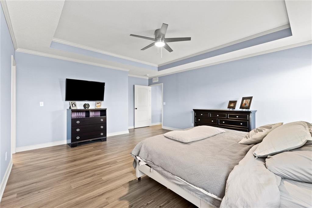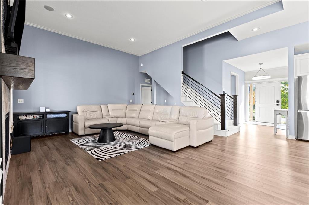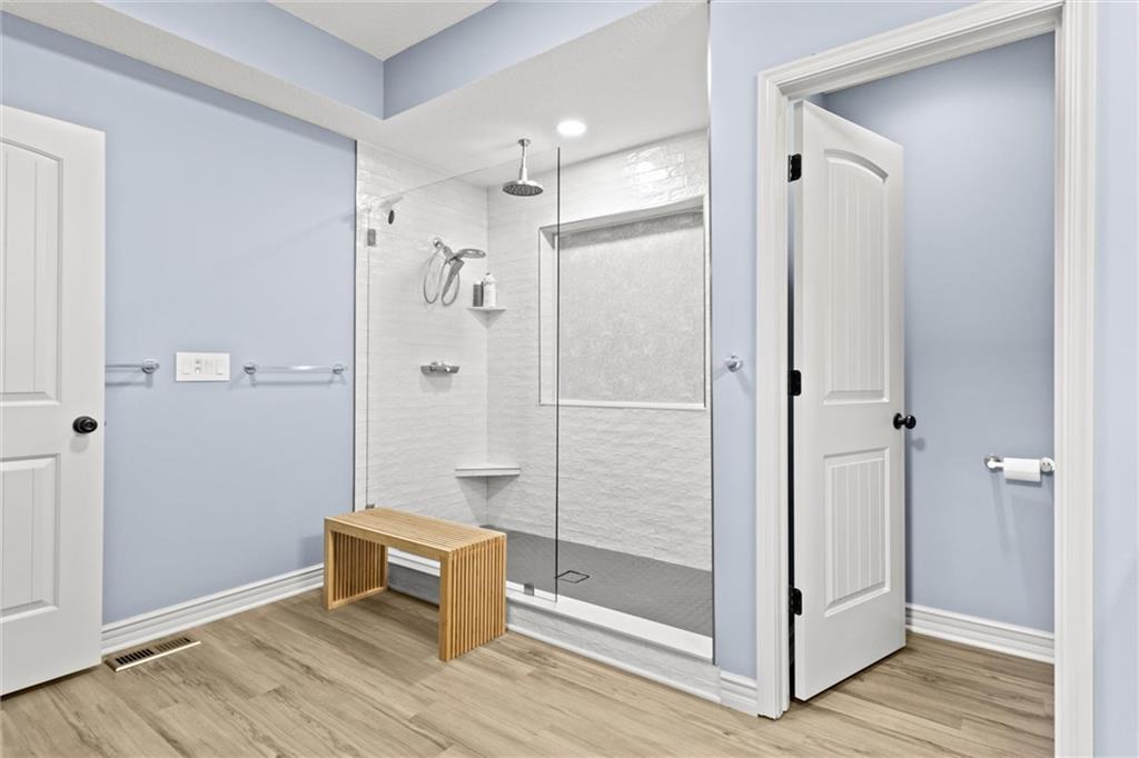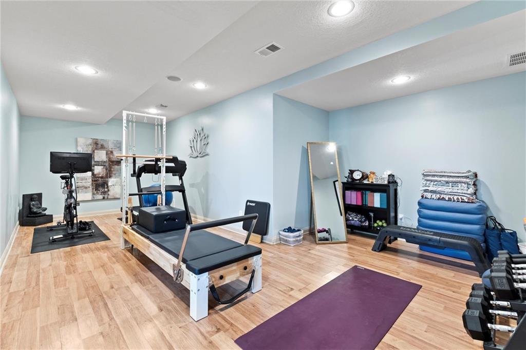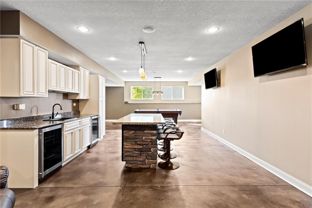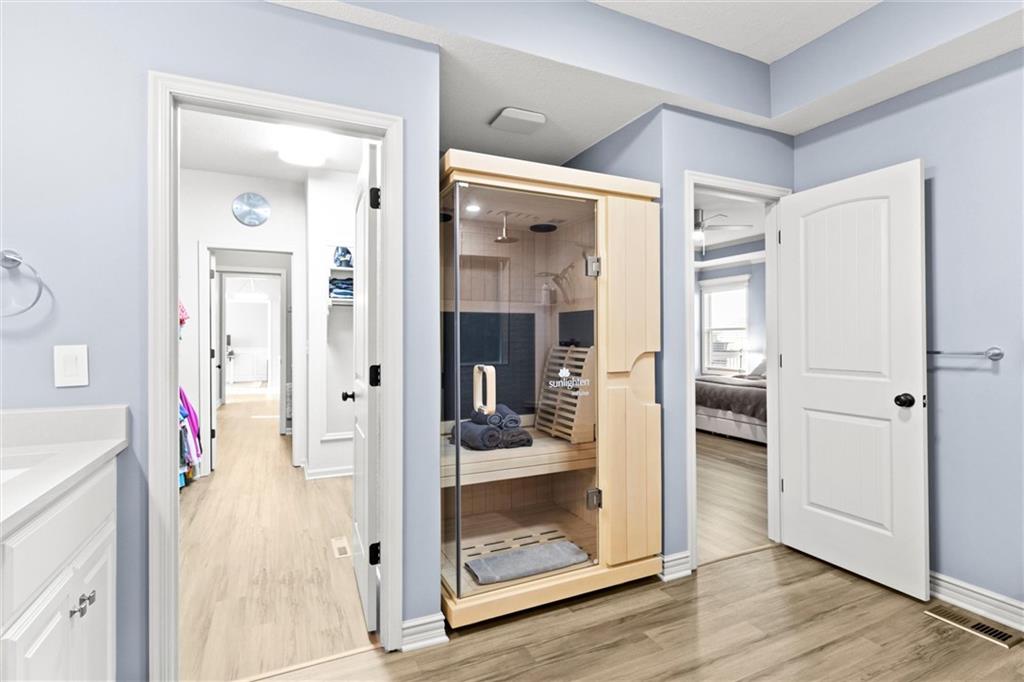Welcome to your private retreat in Raymore! This beautifully updated 1.5 story home sits on a quiet cul-de-sac street and offers the perfect blend of modern upgrades and resort-style living. Step inside to find new LVP flooring, fresh paint, stylish lighting and plumbing fixtures, and countless thoughtful touches throughout. The main level features a flex room that can serve as a home office or formal dining space. The kitchen and living areas have tall ceilings, large windows, and flow seamlessly, perfect for entertaining or everyday comfort. Also, the spacious primary suite has a luxurious new bathroom, includingh a double vanity with quartz counter, a custom tiled walk-in shower with rainhead, a premium bidet toilet, and walk-in closet that connects to the laundry room. Upstairs, you’ll find 3 generous secondary bedrooms, with 2 sharing a Jack & Jill bathroom and the 3 bedroom with en-suite bathroom. The finished daylight basement expands your living space with a large rec room, stained concrete floors, full bar, and a private gym. Step outside to your backyard oasis featuring a saltwater pool, hot tub, outdoor bar with a concrete countertop and space for a built-in kegerator and grill, a gas firepit, and Gemstone permanent lighting that brings the exterior to life at night year round. The large fenced yard backs to common area for extra privacy and space. This home truly has it all, modern updates, incredible outdoor living, and a quiet location close to everything Raymore has to offer.