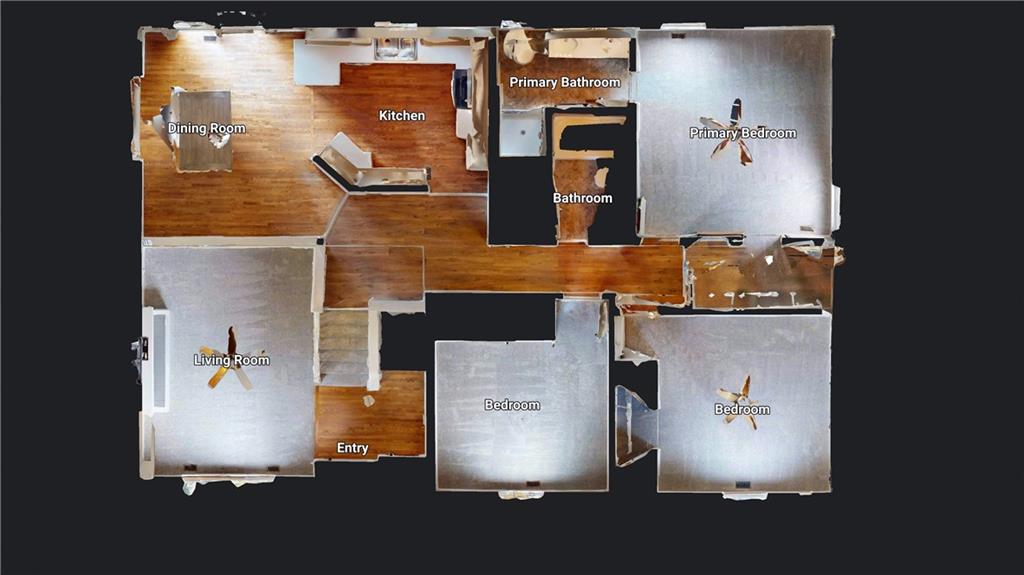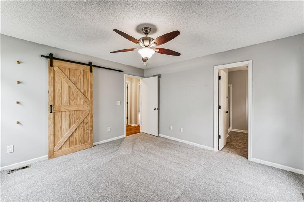 Move-in ready 3-bedroom home with no HOA on a treed, fenced lot in a quiet Olathe neighborhood! Major updates include new HVAC (2024), water heater (<1 yr), new carpet throughout (including stairs, closets, bedrooms, and living room), plus new flooring in the upstairs hallway, gym, and laundry areas. Fresh interior paint, new light fixtures in kitchen and office, and braced deck. The kitchen features Corian counters and freshly painted cabinetry, while the dining area opens to the deck for easy entertaining. The living room offers a wood-burning fireplace and hardwood entry. Upstairs, the primary suite features a ceiling fan, private bath with dual vanities and walk-in shower, and a new barn door on the closet. Bedrooms 2 & 3 include new carpet, built-ins, and ceiling fans. Lower level includes an office with LVP, half bath, and laundry. Unfinished sub-basement with shelving provides ample storage. New soundless garage door system, newer dishwasher, and improved landscaping out front. Exterior was repainted and wood rot replaced within the last 5 years. Fence replaced on three sides (2023). Other things to love: all of the nearby parks & trails, including the close proximity to Prairie Center Park, strong public schools, commuter friendly with fast I-35 access.