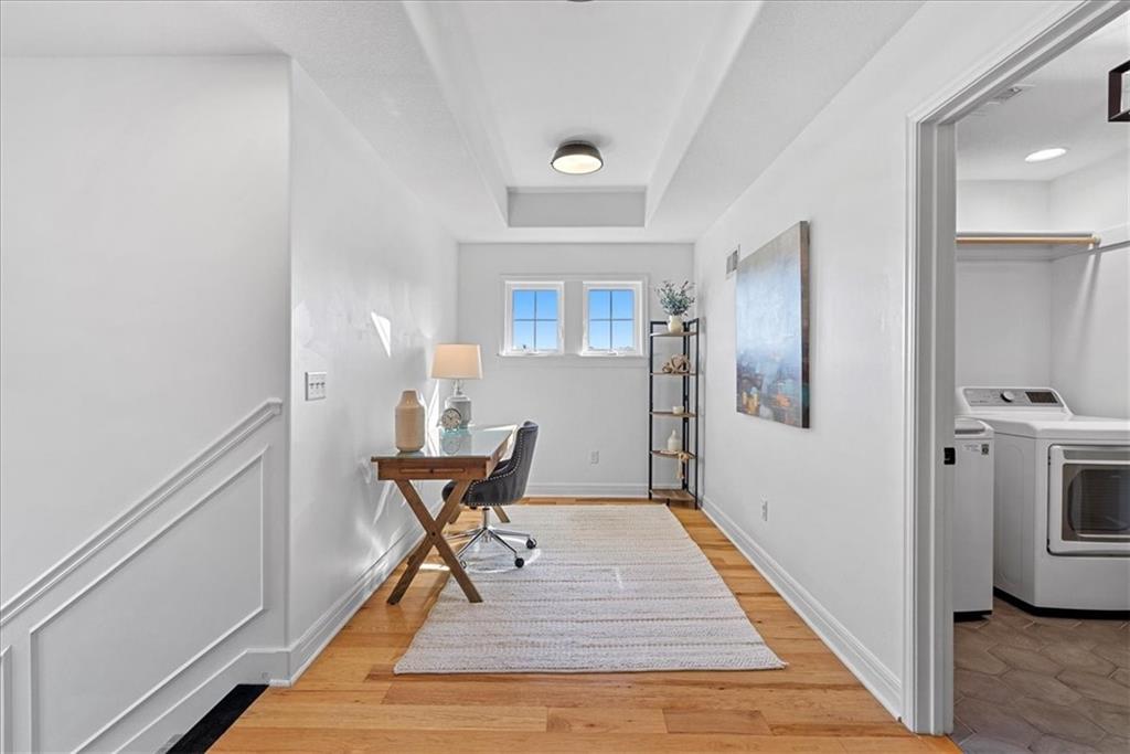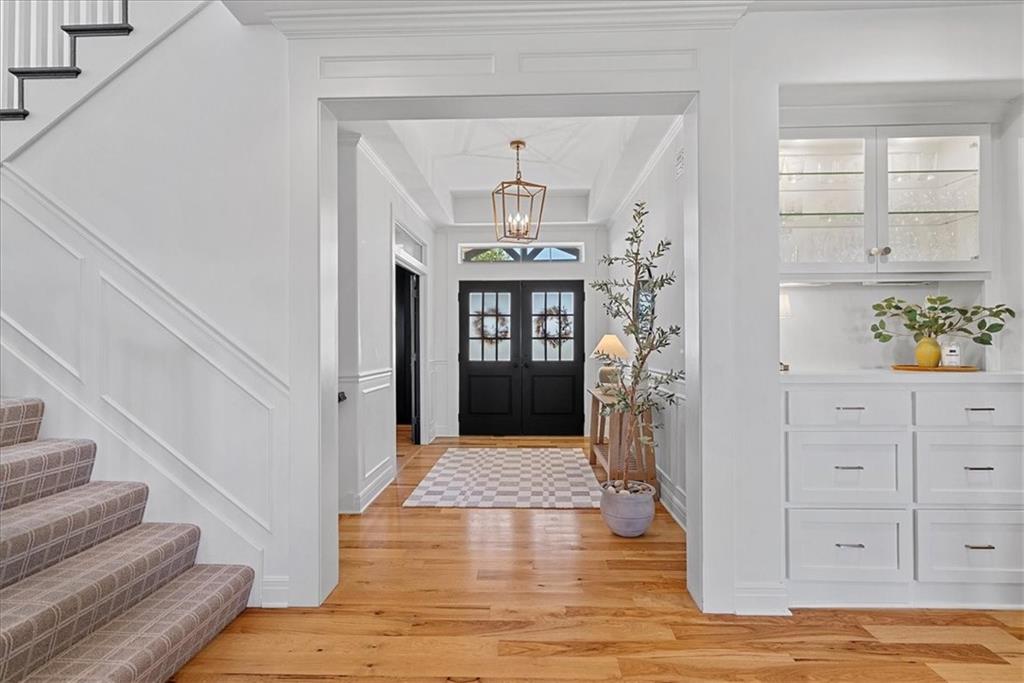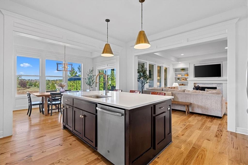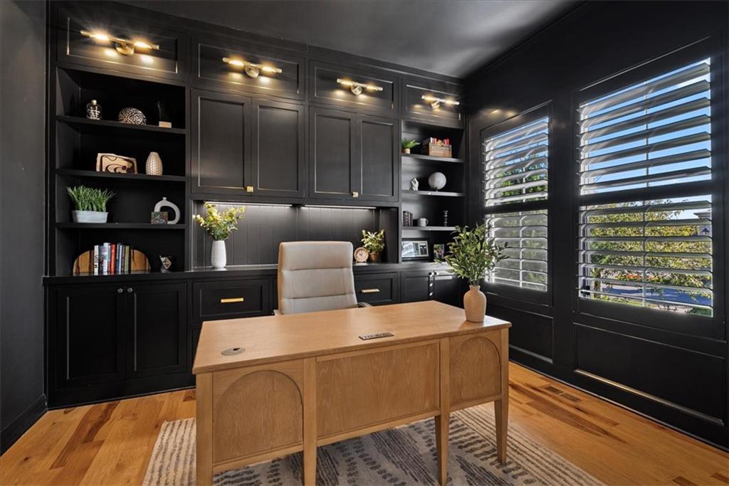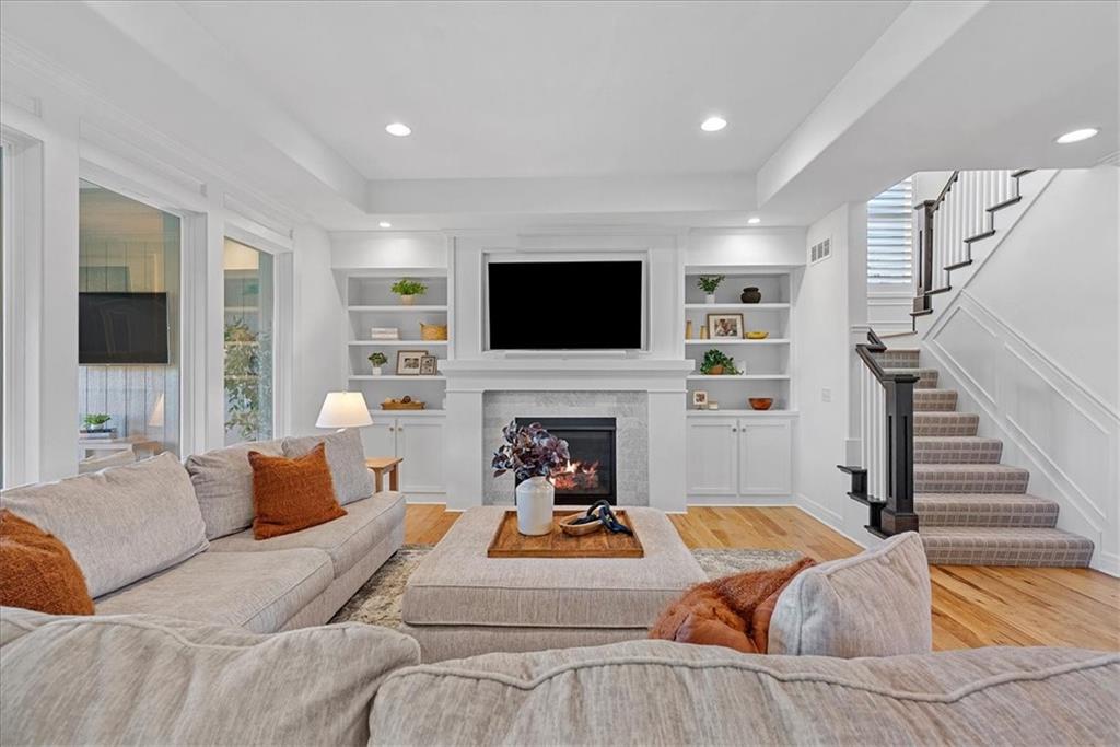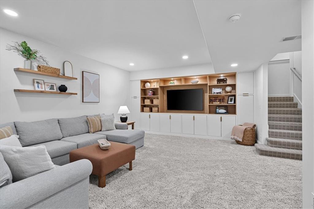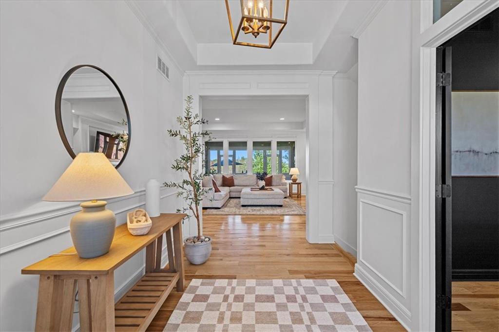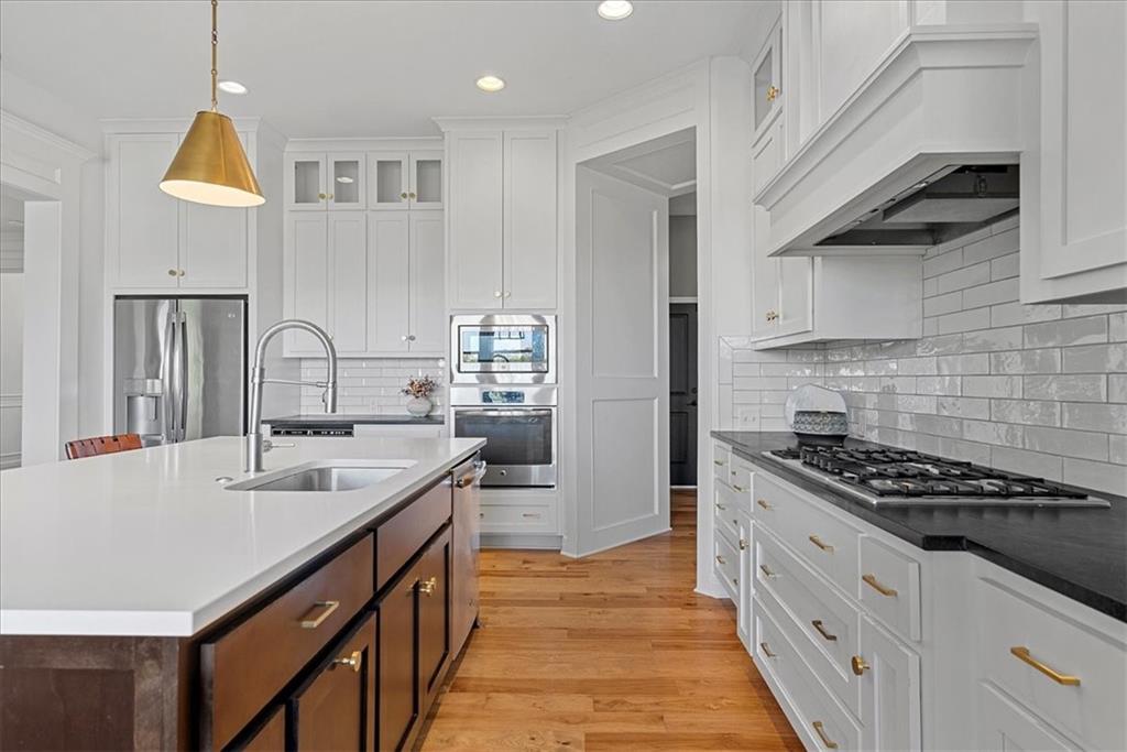 This stylish home looks and feels like new! It features natural hardwood floors throughout, designer touches, and an open main level with a cozy living room and built-ins. The kitchen includes stainless steel appliances, a gas cooktop, wall oven, large island with storage, walk-in pantry, and a mudroom. There’s also a great home office with built-ins. Upstairs you’ll find four bedrooms, including a spacious primary suite with a large bathroom and vanity, plus a versatile loft area. The finished lower level adds another bedroom, full bath, and rec room with custom built-ins. Enjoy the screened-in porch with a fire pit and fenced yard that backs to trees for privacy. Located in Wilshire Ridge with a pool, playground, and clubhouse, and close to Blue Valley Schools and Bluhawk Sports Complex!