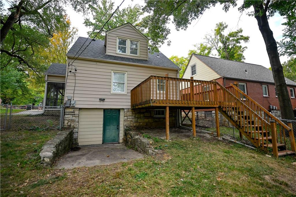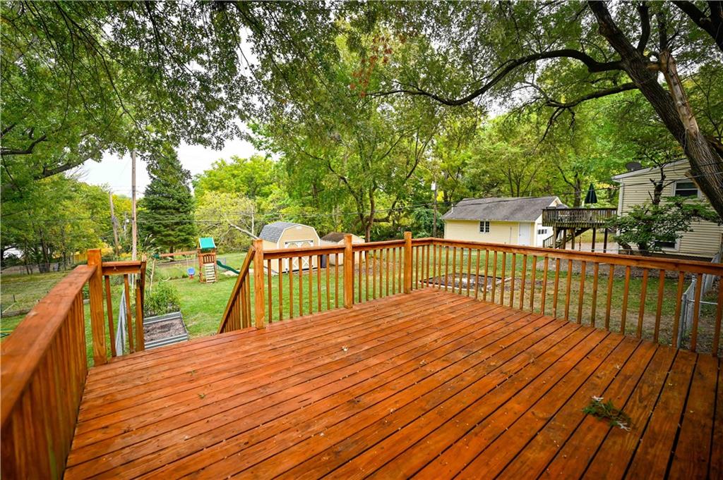 LOCATION LOCATION! LOCATION! just minutes from HWY 69. Hardwood floors throughout as well as a wonderful screened in room off the family room to add that extra living space. With a main floor primary bedroom everything is on the 1st floor with just 1 step up into this beautiful home. It has a large bedroom up stairs with an additional 3rd non conforming bedroom off of the 2nd bedroom that was used as a nursery. The back yard has a large deck, fenced yard and 2 sheds. NEWER HVAC!!