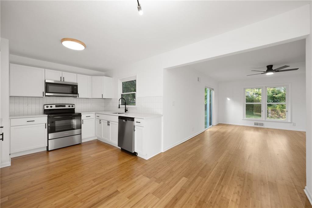 From the outside, this home may look modest, but step inside and you’ll be surprised by how much space it offers! Featuring 3 bedrooms plus a 4th non-conforming bedroom in the finished basement, this property has room for everyone — and even extra space in the basement for storage. Recently remodeled top to bottom, the home boasts beautiful hardwood floors, light, neutral wall colors that create a bright and clean palette, a brand-new kitchen, and top-of-the-line bathrooms. The family room in the back with its cozy fireplace provides a perfect gathering spot to enjoy time together any season. Outside, the large backyard is ideal for entertaining, hosting family gatherings, or giving pets space to play. The attached garage, extended driveway, and additional side driveway provide plenty of parking — perfect for families with multiple vehicles. Located in South Kansas City, this home is just minutes from major highways, giving you quick access to anywhere in the city while enjoying the peace of a well-established neighborhood. This home has the space, style, and convenience for a big family — don’t miss your chance to make it yours today!