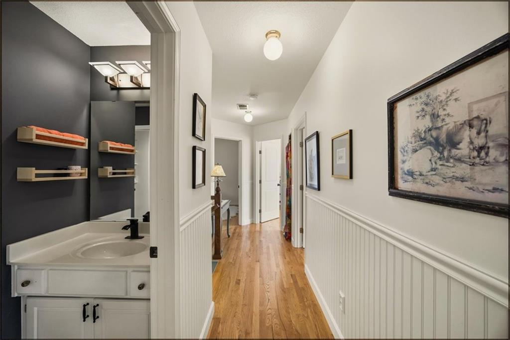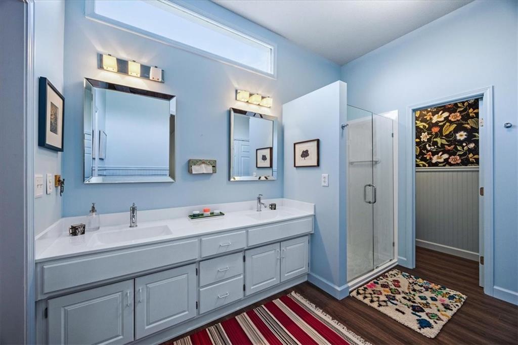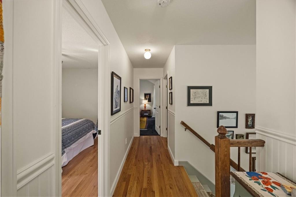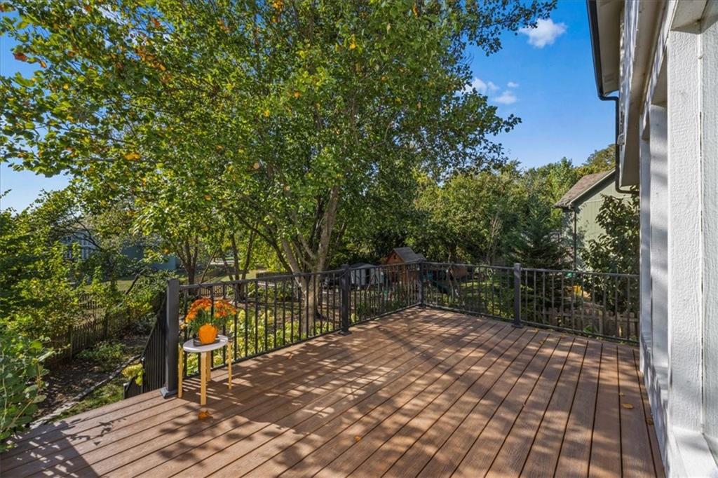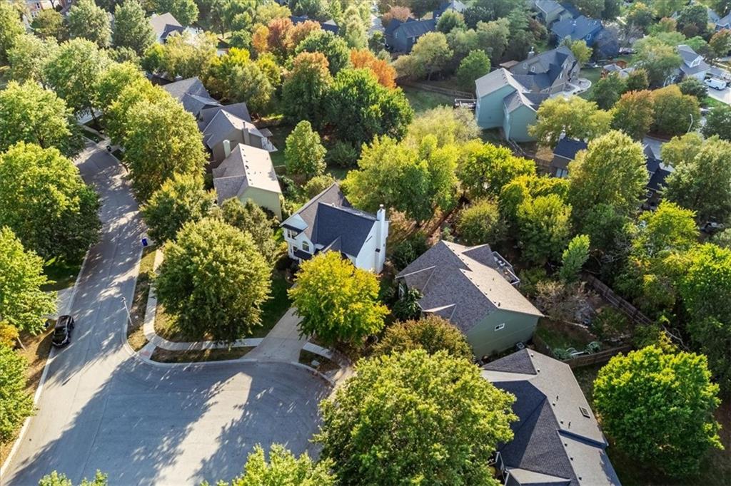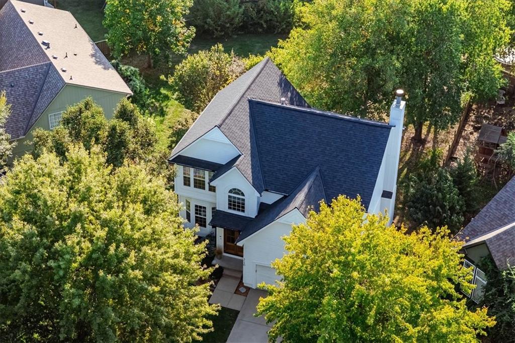Welcome to a meticulously maintained 4-bedroom, 2.5-bath home, nestled on a quiet cul-de-sac in the highly coveted Oakmont Subdivision. This exceptional home, cared for by the same dedicated owners for 23 years, is defined by its custom, high-quality features, beginning with a unique and welcoming entry space boasting solid mahogany doors with Flemish glass and a heated porcelain tile floor. Inside, the home offers an elegant layout where abundant natural light streams in illuminating every room highlighting the exquisite hardwood floors spanning the first and second levels. The cozy primary suite is a true retreat, featuring vaulted ceilings and a luxurious ensuite bath with a heated towel rack, solid brass faucets, a Toto toilet and bidet, and lifetime-guaranteed Onyx solid-surface shower walls and countertops. No detail has been overlooked, from the custom plantation shutters to the well-appointed kitchen, which features solid surface counters, ample cabinetry, and a range hood vented to the outside. Rest assured in your investment, knowing the home is fortified with a brand-new roof featuring Class 4 High Impact shingles, a new hot water tank, solid core interior doors and extra attic insulation. Bonus - The whole house is on water softener system with Reverse Osmosis is in the kitchen. Outside you can enjoy the tranquility of mature plants and trees that shade the easy-to-care-for composite deck. This highly sought-after location offers award-winning public schools, a neighborly atmosphere with well-maintained sidewalks, superb convenience and immediate access to Mill Valley High School. Just minutes from the Johnson County Library, the Mill Creek Streamway Trail, and easy access to 435, K7 and I35. With an unfinished basement adding potential for future value, the search for a home that seamlessly blends comfort, quality, and convenience is finally over.