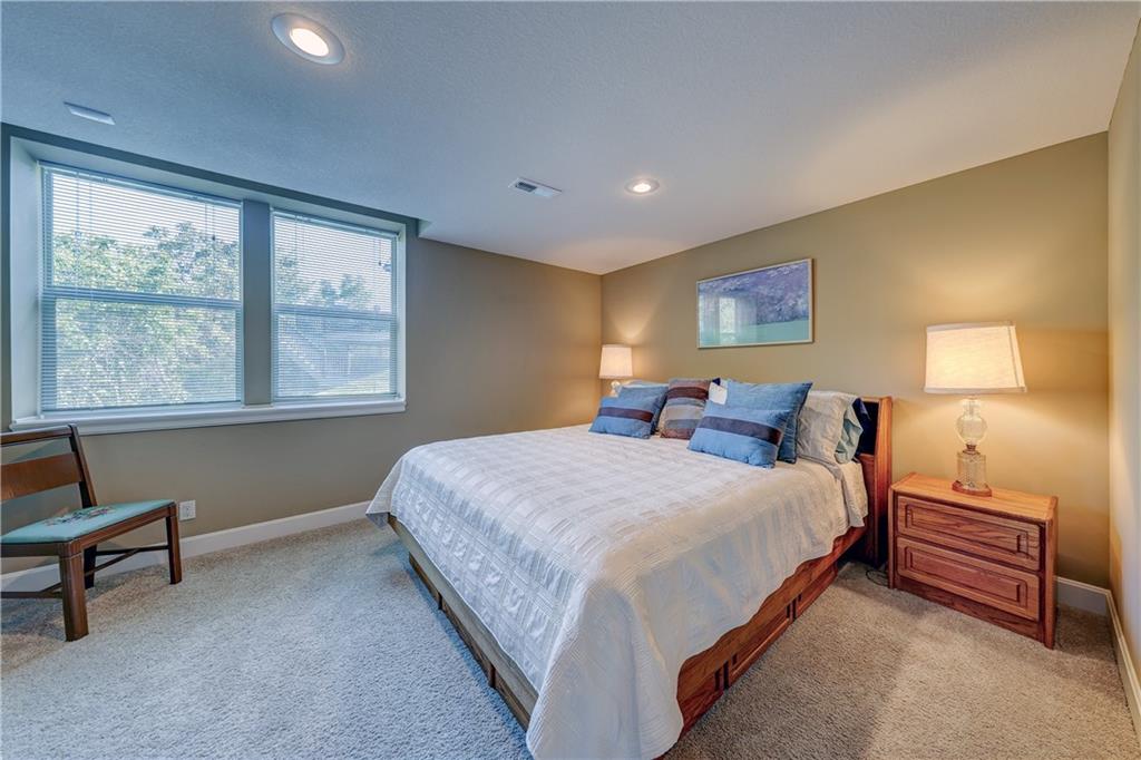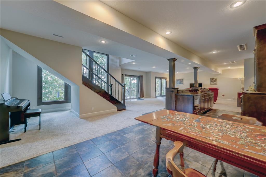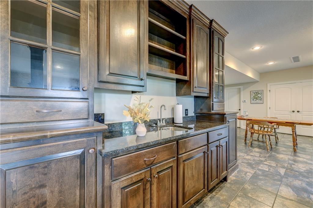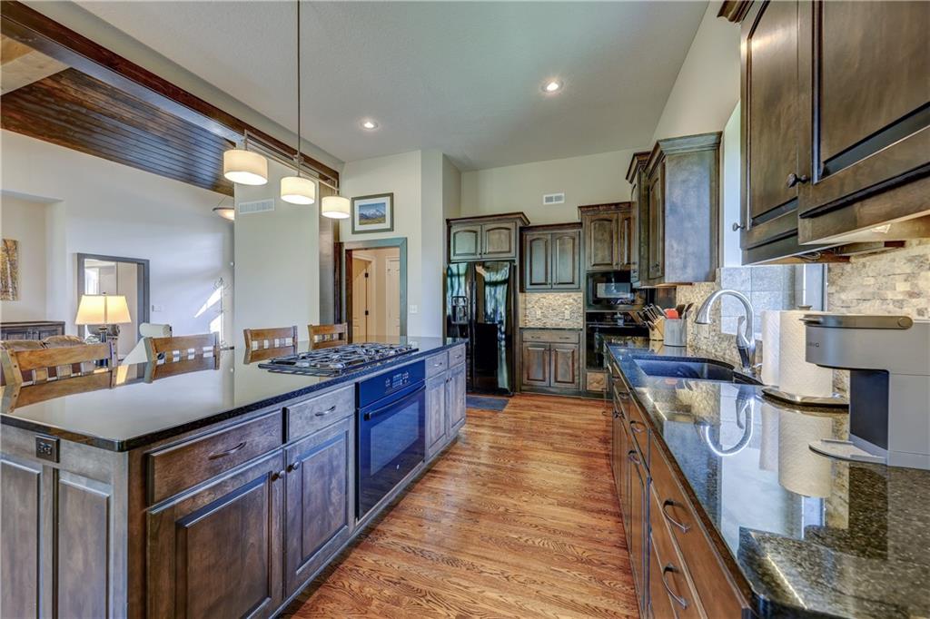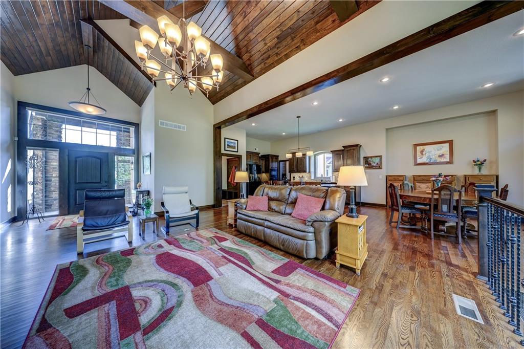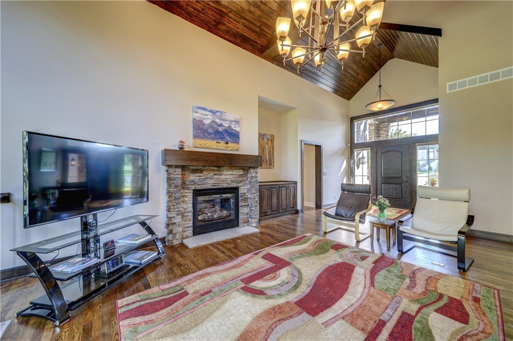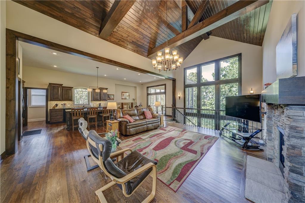 The Brookridge II by Don Julian Builders, nestled in the trees of Woodland Reserve. This stunning home is the perfect blend of luxary and comfort. Upon entry, you are welcomed by a soaring wood ceiling, striking fireplace and a wall of windows over looking green space. Kitchen with a walk in pantry and beautiful stained custom cabnets. The primary suite with walk-in closet and laudry room is so relaxing with the treed view. The main floor also has 2 more bedrooms ideal for guests or flex rooms. The deck off the back is covered and screened in, enjoy the outdoors year around. The walk-out lower level is designed for entertaining, with large windoes, a custom stained bar, 2 private bedrooms, and generous space for recreation, media, or game area. 3 car garage and tile roof! plus Pet free. This well maintained home is a must see! All this just minutes from the new Lenexa City Center.