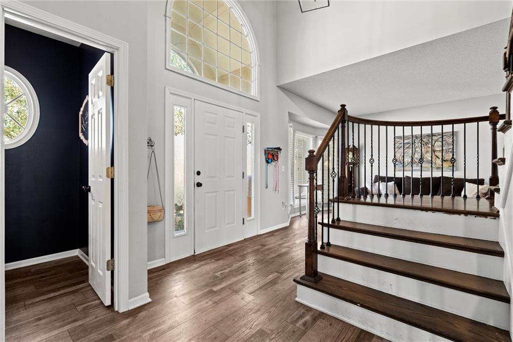 Welcome to the coveted Crimson Ridge Subdivision! This beautiful 2-story home with a finished walkout basement offers an open, light-filled layout perfect for today’s lifestyle. The spacious kitchen features updated counters, stainless steel appliances, and opens to the great room with a striking stone fireplace and a wall of windows that fill the space with natural light. The refrigerator, washer, and dryer are all included, making this home truly move-in ready! Upstairs, the generous primary suite features a gorgeous bath with a whirlpool tub and a huge walk-in closet. Designer touches include crown molding, built-in shelving, and hardwood floors in all bedrooms. The finished walkout basement offers fantastic bonus space with a bar for entertaining, full bath, and an office or non-conforming 5th bedroom (add a closet for a true 5th BR). Enjoy outdoor living on the large deck overlooking mature trees and a private 1/3-acre lot at the end of a quiet cul-de-sac adjoining green space. Additional highlights include an in-ground sprinkler system, brand-new HVAC (installed May 2025), and a roof only 1 year old. Frig & washer/dryer stay. Located near the neighborhood pool and Garrett Park with easy interstate access.