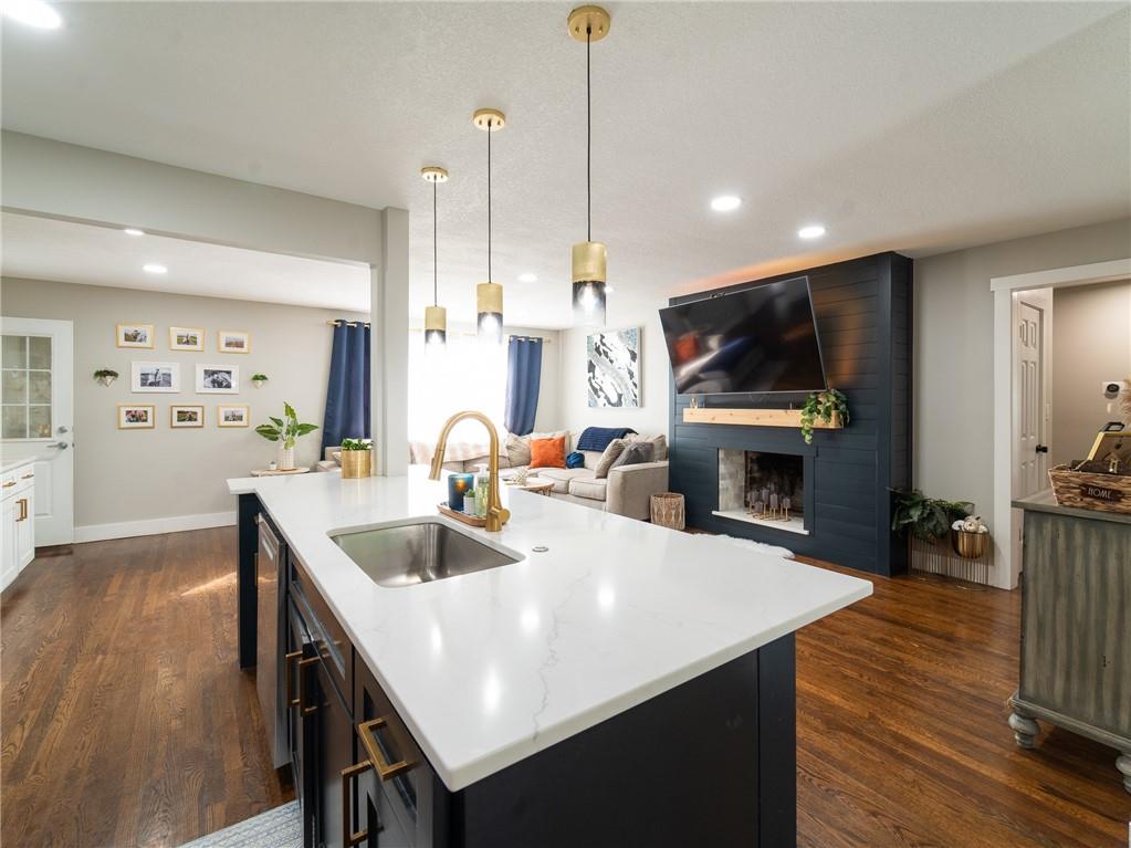 AGGRESSIVELY PRICED WITH QUICK POSSESSION AVAILABLE! Completely remodeled in 2023, this 3-bedroom, 2-bath home combines modern design with comfortable living. The open layout features hardwood floors, a custom fireplace, and a beautiful kitchen with new cabinets, upgraded appliances, and a wet bar with a wine cooler, beverage fridge, and extra storage. The remodeled sunroom offers a bright, inviting space for entertaining or relaxing. Outside, a large textured concrete patio with bistro lights and a privacy fence sets the scene for evenings spent with friends or quiet mornings with coffee. The unfinished basement adds potential for expansion and value-add in the future. Protected by a newly installed security system, every detail has been carefully updated to create a home that feels fresh, stylish, and modern.